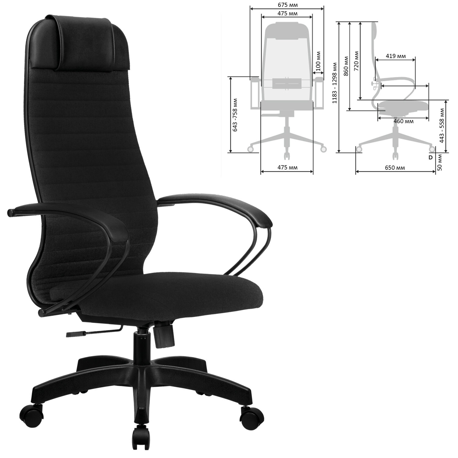 Кресло офисное МЕТТА "К-27" пластик, ткань, сиденье и спинка мягкие, черное Код товара: 532458 15 930,64 ₽ Купить Производитель:МЕТТА Современное технологичное кресло на сверхпрочном стальном каркасе. Отличительной особенностью кресел МЕТТА является узнаваемый дизайн, абсолютная эргономика, соответствующая анатомической форме человека и набор индивидуальных регулировок для каждого. Сверхпрочный стальной каркас. Спинка мягкая высокая, эргономичной формы с ярко выраженной поясничной поддержкой. Эргогиб, как у кресел SAMURAI. Спинка имеет стальной регулируемый поясничный подпор. Спинка снабжена мягким комфортным подголовником. Сиденье мягкое, объемное на столярном каркасе. Уникальная форма передней части сиденья исключает сдавливание сосудов ног, сохраняя ощущение легкости в ногах. Регулировка глубины сиденья за счет перемещения места крепления сидения (450-480 мм). Обивка спинки и сиденья – обивочная ткань с тонкой прошивкой. Подлокотники стальные классические, с мягкими накладками из экокожи. Прочное пластиковое пятилучие. Модель оснащена механизмом качания "Top-Gun" с регулировкой под вес и возможностью фиксации в рабочем положении. Современный дизайн и максимальный комфорт по доступной цене.Производство: РоссияМатериал обивки: ткань/кожа рециклированнаяМаксимальная нагрузка: до 120 кгЦвет обивки: черныйТип механизма кресла: "Топ-ган" - качание с регулировкой под вес и фиксацией в 1 положенииКрестовина (пятилучие): пластикПодлокотники: металл с накладкамиМинимальная высота кресла: 1183 ммМаксимальная высота кресла: 1298 ммШирина кресла: 675 ммМинимальная высота до сиденья: 443 ммМаксимальная высота до сиденья: 558 ммСиденье ширина: 475 ммСиденье глубина: 480 ммСпинка ширина: 475 ммСпинка высота: 860 ммСерия: К-27Соответствует требованиям ГОСТа: ГОСТ 19917-93Поставляется в разобранном виде: даВес: 17,01 кгРазмер упаковки: 91 × 67.5 × 25 смОбъём: 0.1536 м3Промежуточная упаковка: 1 штТранспортная упаковка: 1 штШтрих-код: 4665316514458 Файлы Приложение-1.pdf Сертификат-1.jpg Сертификат-2.jpg Сертификат-3.jpg Сертификат-4.jpg Сертификат-5.jpg Сертификат-6.jpg