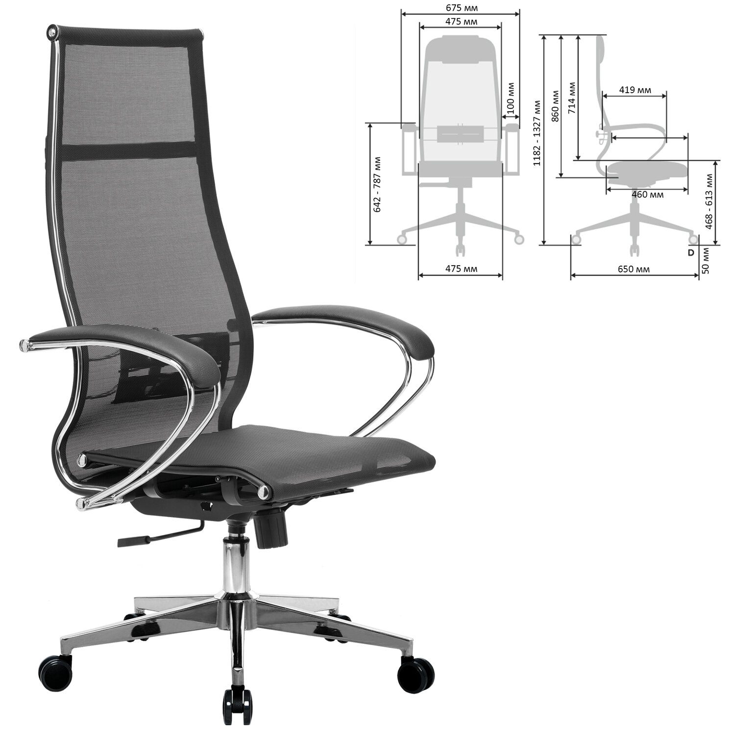 Кресло офисное МЕТТА "К-7" хром, прочная сетка, сиденье и спинка регулируемые, черное Код товара: 532461 21 859,48 ₽ Купить Производитель:МЕТТА Современное технологичное кресло утонченного дизайна для ценителей легкости в интерьере. Сочетает в себе надежность стального каркаса, абсолютную эргономику, соответствующую анатомической форме человека, и набор индивидуальных регулировок для каждого. Сверхпрочный стальной каркас. Спинка высокая, эргономичной формы с ярко выраженной поясничной поддержкой. Эргогиб, как у кресел SAMURAI. Спинка имеет стальной регулируемый поясничный подпор. Уникальная форма передней части сиденья исключает сдавливание сосудов ног, сохраняя ощущение легкости в ногах. Двухзонная регулировка жесткости сиденья позволяет достичь максимального удобства, а также при необходимости настроить угол наклона сиденья за счет разного натяжения передней и задней зоны. Регулировка глубины сиденья за счет перемещения места крепления сидения (450-480 мм). Обивка из прочной износоустойчивой "дышащей" сетчатой ткани. Подлокотники стальные классические покрытые зеркальным хромом, с мягкими накладками из экокожи. Пятилучие - современного дизайна, металлическое хромированное. Колеса-ролики имеют полиуретановое покрытие, обеспечивающее бесшумный ход и защиту пола от повреждений. Модель оснащена механизмом качания "Top-Gun" с регулировкой под вес и возможностью фиксации в рабочем положении. Современный дизайн и максимальный комфорт по доступной цене.Производство: РоссияМатериал обивки: сеткаМаксимальная нагрузка: до 150 кгЦвет обивки: черныйТип механизма кресла: "Топ-ган" - качание с регулировкой под вес и фиксацией в 1 положенииСетчатая спинка: даКрестовина (пятилучие): металл/хромированный металлПодлокотники: хром с накладкамиМинимальная высота кресла: 1182 ммМаксимальная высота кресла: 1327 ммШирина кресла: 675 ммМинимальная высота до сиденья: 468 ммМаксимальная высота до сиденья: 613 ммСиденье ширина: 475 ммСиденье глубина: 480 ммСпинка ширина: 475 ммСпинка высота: 860 ммСерия: К-7Соответствует требованиям ГОСТа: ГОСТ 19917-93Поставляется в разобранном виде: даВес: 19,57 кгРазмер упаковки: 91 × 67.5 × 26 смОбъём: 0.1597 м3Промежуточная упаковка: 1 штТранспортная упаковка: 1 штШтрих-код: 4665316515776 Файлы Приложение-1.pdf Сертификат-1.jpg Сертификат-2.jpg Сертификат-3.jpg Сертификат-4.jpg Сертификат-5.jpg Сертификат-6.jpg
