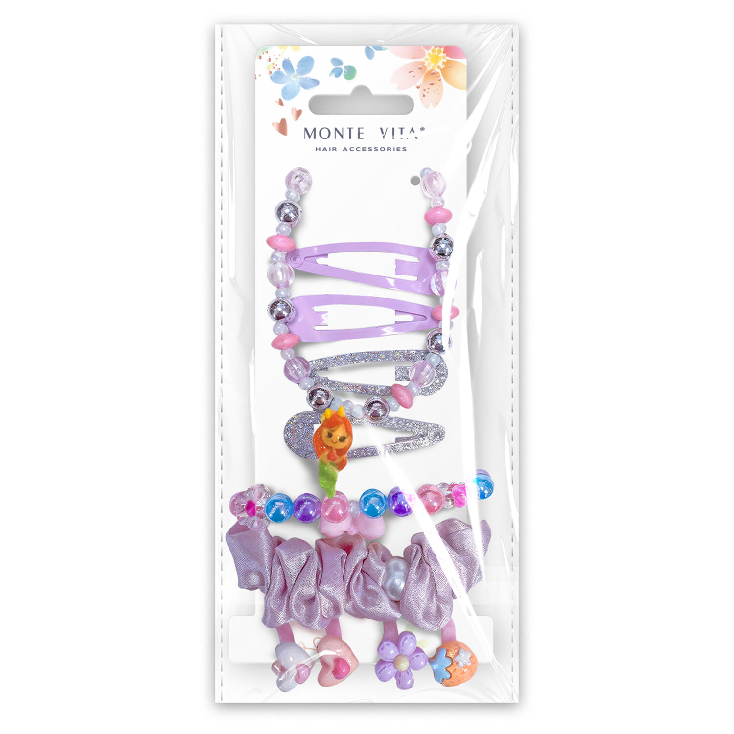Резинка для волос (скранч) с заколками, ожерельем, колечками и браслетом, НАБОР, MONTE VITA Код товара: 458861 320,54 ₽ Купить Производитель:MONTE VITA Набор аксессуаров для волос — элегантный набор заколок, резинок, крабов и ободков для безупречного образа. Это больше, чем аксессуары: шанс раскрыть индивидуальность и подчеркнуть стиль для любого повода — от будней до праздников. Нежный набор аксессуаров (резинка скранч 1 шт, колечки 4 шт, заколки 4 шт, ожерелье 1 шт, браслет 1 шт) - это идеальный набор для стильных и практичных образов как для повседневного ношения, так и для создания сказочного вечернего образа. Мягкая резинка скранч с декором в виде жемчуга - универсальный аксессуар для создания объемных пучков и свободных хвостов, который не травмирует волосы. Заколки клик-клак позволят надежно зафиксировать непослушные локоны и создавать экспериментировать с прическами каждый день. Браслет, ожерелье и колечки с разным декором служат милым дополнением к образу.Производство: КитайТип товара: набор аксессуаров для волосКоличество в наборе: 11 шт.Цвет: разноцветныйМатериал: ABS-пластик/металл/полиэстерКомплектация: браслет 1 шт., заколка 4 шт., кольцо 4 шт., ожерелье 1 шт., резинка 1 шт.Упаковка: картонная карточка в пакете с европодвесомВес: 171 грРазмер упаковки: 2 × 6.5 × 17 смОбъём: 0.0007 м3Промежуточная упаковка: 6 штТранспортная упаковка: 72 штШтрих-код: 4606224541747 Файлы