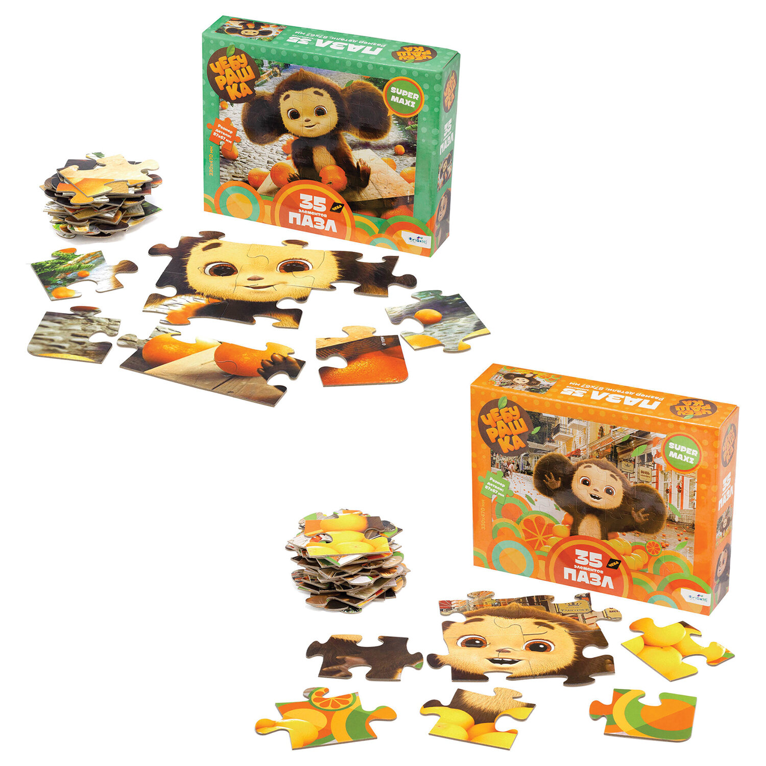 Пазл картонный 35 элементов АССОРТИ "Чебурашка", 2 вида, 330х470 мм, OR Код товара: 665498 285,02 ₽ Купить Производитель:ORIGAMI Большой пазл 35 элементов с легендарным Чебурашкой понравится любому ребенку, а сборка яркой картинки принесет радость не только малышам, но и их родителям. Соберите всю коллекцию новых пазлов! Товар поставляется без возможности выбора дизайна.Производство: РоссияКоличество элементов: 35 шт.Форма: фигурнаяОриентация: нетШирина: 87 ммДлина: 67 ммПредназначение: универсальныйСерия: чебурашкаМатериал: картонУпаковка: подарочная коробкаВес: 294 грРазмер упаковки: 5.5 × 22.8 × 18.1 смОбъём: 0.0025 м3Промежуточная упаковка: 10 штТранспортная упаковка: 10 штШтрих-код: 4680293081809 Файлы Сертификат-1.jpg Сертификат-2.jpg Сертификат-3.jpg