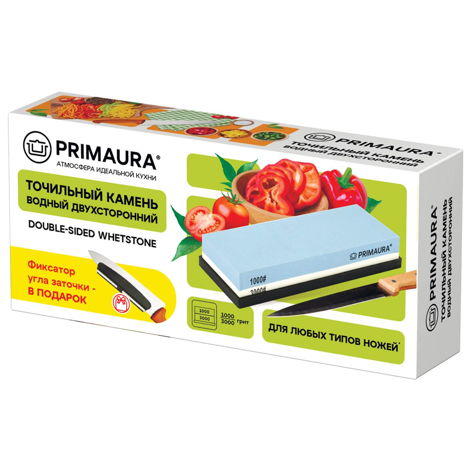 Точильный камень водный, 1000/3000 грит, с фиксатором угла заточки, PRIMAURA (ПРИМАУРА) Код товара: 701627 361,39 ₽ Купить Производитель:PRIMAURA Точильный камень водный PRIMAURA – профессиональная заточка у вас дома! Восстанавливает и доводит до идеальной остроты различные типы ножей и инструментов. Просто, аккуратно, без пыли. Замочил, заточил, промыл – готово! Точильный камень водный предназначен для заточки ножей, стамесок и других режущих инструментов. Он широко используется как в профессиональной сфере, так и в быту. Водный камень требует предварительного замачивания в воде перед использованием. Погрузите камень в воду на 15-20 минут или до тех пор, пока не перестанут выделяться пузырьки. Достаньте камень и зафиксируйте его на противоскользящей подставке. За счет влаги появляется суспензия из воды и абразивных частиц, которые эффективно удаляют металл, обеспечивая высококачественную заточку. Заточка лезвия начинается со стороны с меньшей гритностью. Соблюдая угол заточки, проводите лезвием ножа по поверхности камня в течение 5-7 минут плавными движениями от себя. Периодически смачивайте камень водой. Когда заусенец перестал образовываться, переверните камень и повторите процесс заточки на стороне с большей гритностью. Завершив использования, промойте камень и высушите. Комплектация товара включает в себя: 1) Водный точильный камень из белого корунда, двухсторонний, с разной зернистостью у сторон — 1000 и 3000 грит. Эта комбинация зернистости наиболее универсальная и позволяет эффективно выполнить последовательно сразу две задачи: первичную обработку лезвия (удаление микродефектов и следов эксплуатации с клинка) и финишную чистовую (доведение лезвия и режущей кромки до безупречного состояния). 2) Резиновая подставка – надежно фиксирует камень и не скользит по поверхности. 3) Специализированный пластиковый фиксатор угла заточки – надевается на обух ножа, обеспечивая безопасность процесса и фиксируя угол заточки. 4) Подробная инструкция по применению. Точильный камень водный PRIMAURA вернёт остроту ножам и инструментам, а также продлит срок их службы. Отлично подходит для профессионального и бытового использования.Производство: КитайТип товара: точильный каменьТип заточки: грубая заточка ножа, заточка топора, чистовая заточка ножаОсобенности: регулируемый угол заточкиКоличество в комплекте: 1 шт.Материал: корундЦвет: белый/голубойУпаковка: красочная картонная коробкаВес: 742 грРазмер упаковки: 4.1 × 19.8 × 8.7 смОбъём: 0.0009 м3Промежуточная упаковка: 16 штТранспортная упаковка: 16 штШтрих-код: 4606224511740 Файлы Сертификат-1.jpg Сертификат-2.jpg