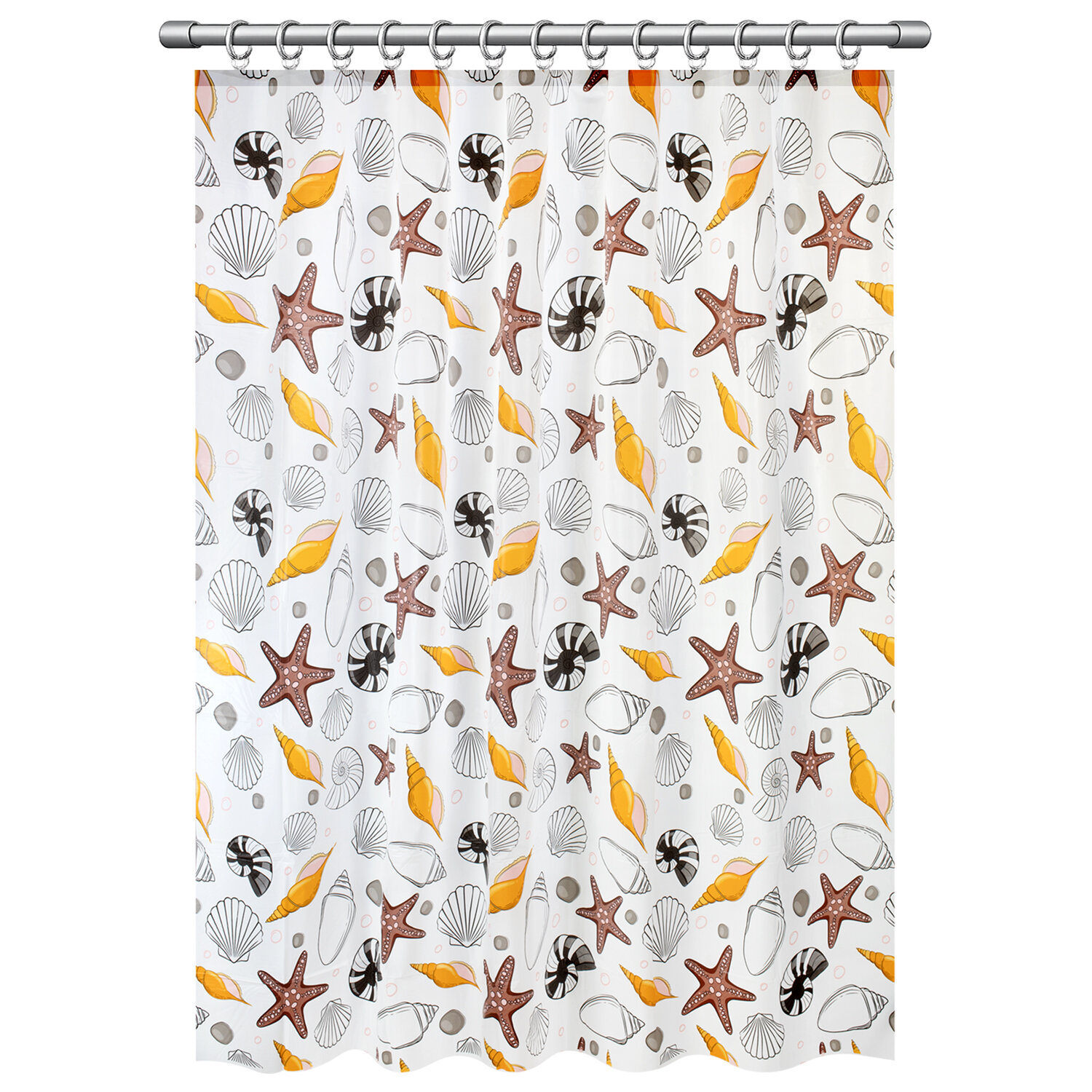 Шторка для ванной PEVA, 180х180 см, кольца в комплекте, дизайн ассорти, МОРЕ, PRIMILA (ПРИМИЛА) Код товара: 700074 150,22 ₽ Купить Производитель:PRIMILA Шторка для ванной комнаты PRIMILA – залог чистоты и уюта ванной комнаты. Используется для защиты пола, стен, мебели и зеркала от брызг. Эта шторка идеально впишется в любой интерьер. Шторка для ванной PRIMILA изготовлена из качественного, практичного, износостойкого, гипоаллергенного PEVA-материала, гарантирующего отсутствие заломов и водонепроницаемость. Быстро сохнет, не шуршит, без запаха и приятная на ощупь. В комплекте с шторкой идут 12 прочных полипропиленовых колец, которые подойдут под любой тип карниза. • Основные характеристики: - Размер: 180х180 см. - Рисунок: ассорти (морские рисунки). - Материал: PEVA. - Плотность шторки: 45 г/м2. • Основные преимущества: - Идеально подходит для семей с детьми. - Легко вписывается в любой интерьер. - Не требует сложного ухода. - Долговечна и практична в использовании. - Безопасна для здоровья.Производство: КитайРазмер (ДхШ): 180х180 смНаличие колец в комплекте: даВид принта: рисунокДизайн: МорскойВодонепроницаемая: даВодоотталкивающая: даОсобенности: Нет данныхПлотность материала: 45 г/м2Материал: PEVAЦвет: ассортиВес: 229 грРазмер упаковки: 1.8 × 29.9 × 23.5 смОбъём: 0.0011 м3Промежуточная упаковка: 12 штТранспортная упаковка: 96 штШтрих-код: 4606224466842 Файлы Сертификат-1.jpg Сертификат-2.jpg Сертификат-3.jpg