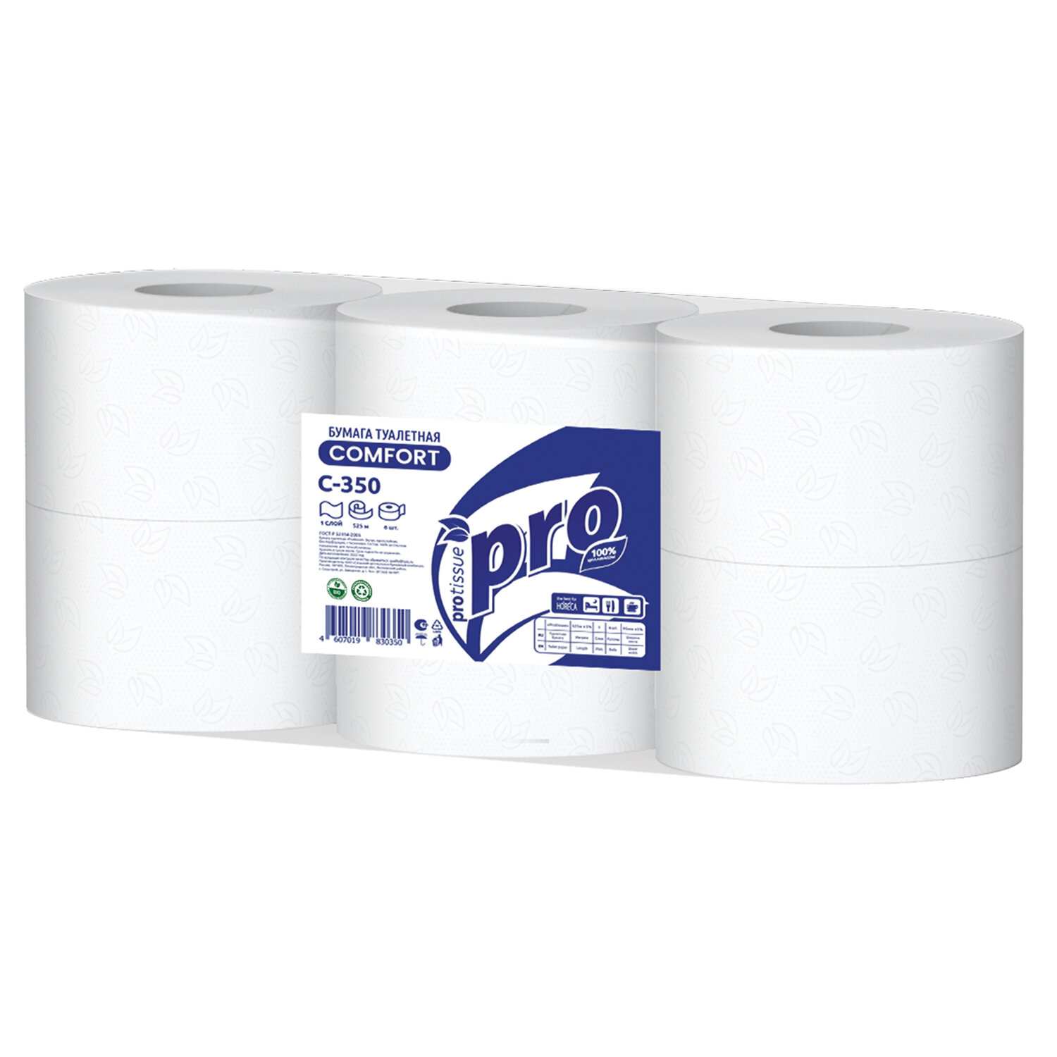 Бумага туалетная 525 метров, PROtissue (T1) COMFORT, 1-слойная, белая, КОМПЛЕКТ 6 рулонов Код товара: 118807 1 945,18 ₽ Купить Производитель:PROtissue Однослойная туалетная бумага PROtissue в больших рулонах подойдет для использования в общественных туалетных зонах с высокой и средней проходимостью. Бумага для системы Т2. Длина намотки – 525 м. Комплект – 6 рулонов. Безопасность бумажной продукции подтверждена сертификатом соответствия требованиям биологической безопасности.Производство: РоссияДиспенсерная система: Т1Тип: рулонныеСырье: 100% целлюлозаКоличество слоев: 1Тиснение: даПерфорация: нетДоля вторичного сырья: 0 %Спайка/комплект: 6 штДлина намотки: 525 мДиаметр рулона: 24 ммВнутренний диаметр втулки: 6 ммЦвет: белыйСочетается с оборудованием других производителей: даСерия: ComfortВес: 6,42 кгРазмер упаковки: 19.1 × 70.2 × 24.3 смОбъём: 0.0326 м3Промежуточная упаковка: 1 штТранспортная упаковка: 1 штШтрих-код: 4607019830350 Файлы Приложение-1.pdf Сертификат-1.jpg Сертификат-2.jpg