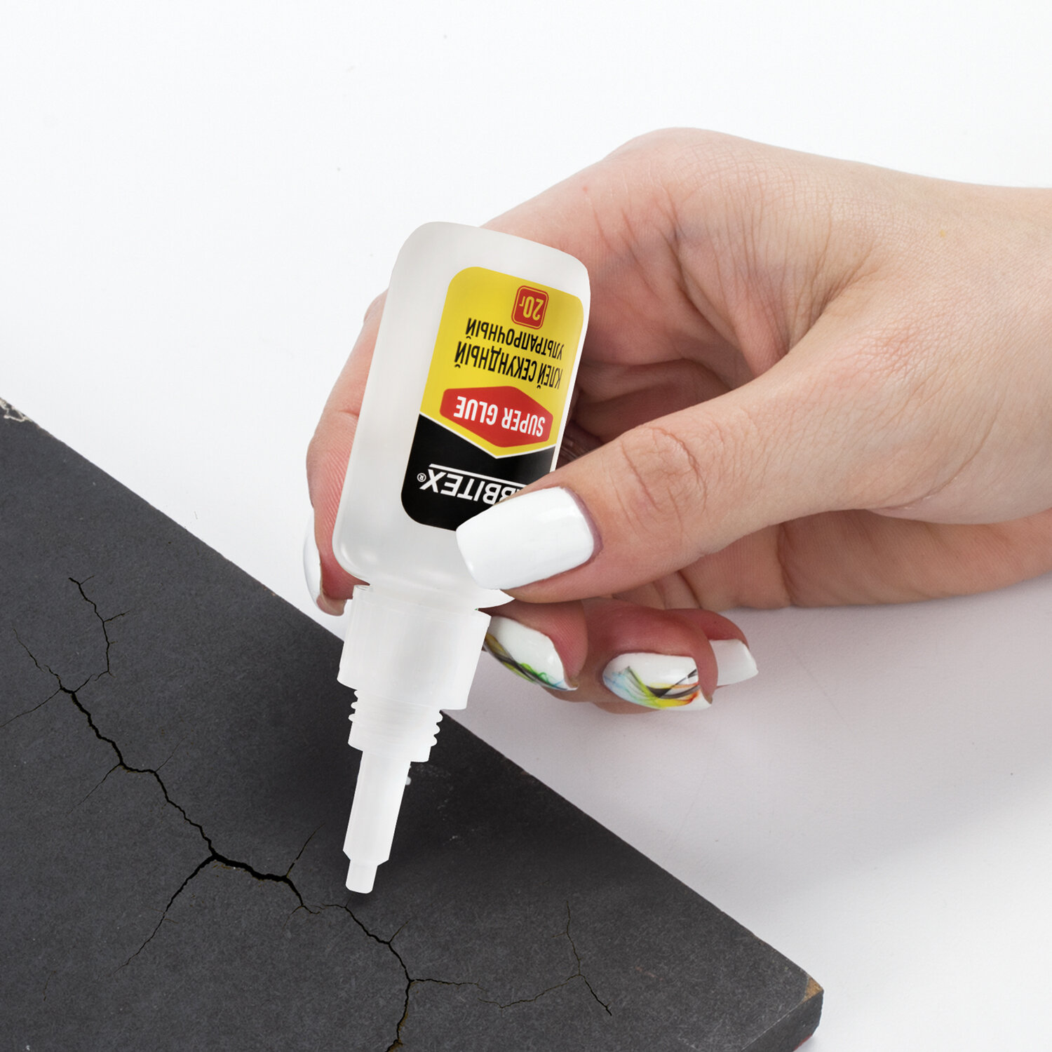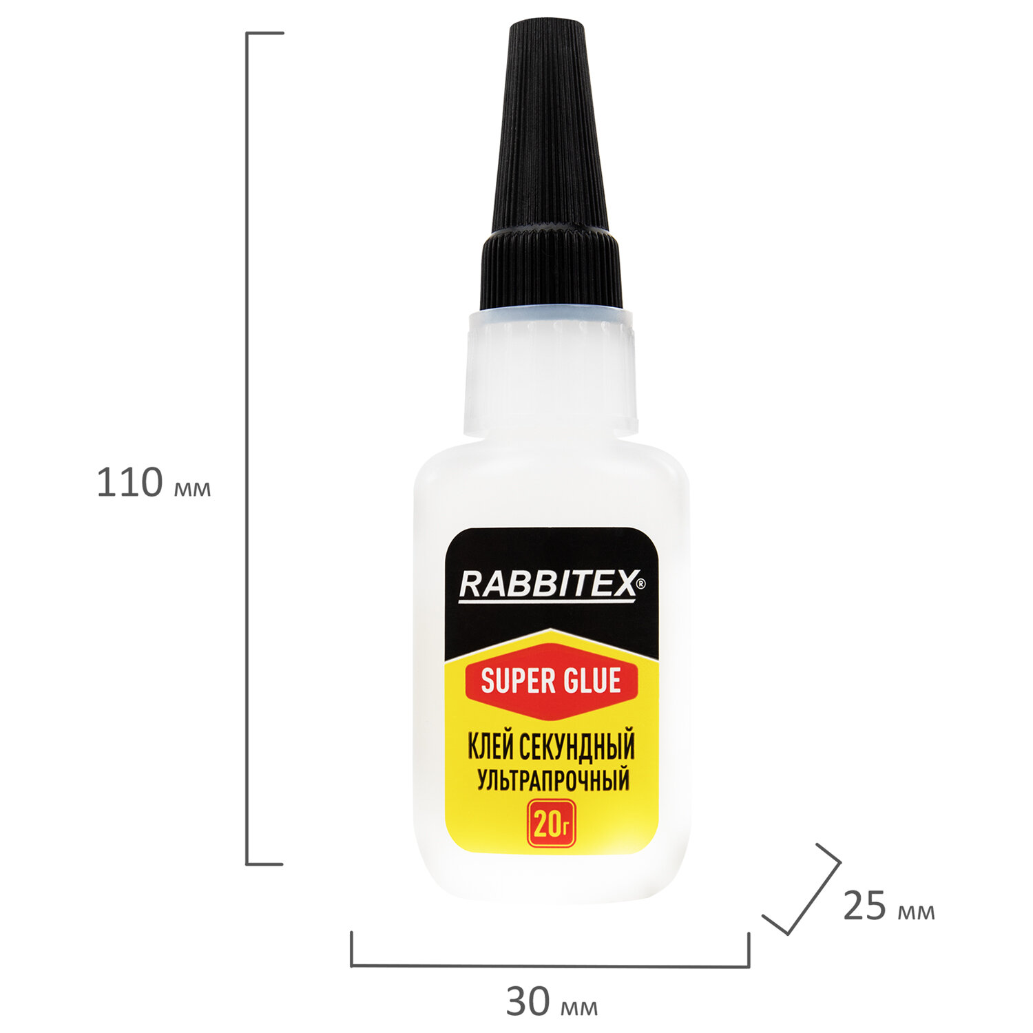 Клей секундный суперклей УЛЬТРАПРОЧНЫЙ, МАКСИМАЛЬНЫЙ ОБЪЕМ, 20 грамм, RABBITEX (РАББИТЕКС) Код товара: 609803 78,9 ₽ Купить Производитель:RABBITEX Секундный суперклей RABBITEX – надёжное решение для быстрого и прочного склеивания в доме, на даче, в мастерской или офисе. Клей секундный RABBITEX – это мгновенная прочность, качество и долговечность. Идеально подходит для ремонта пластика, керамики, дерева, металла, кожи и других материалов. Не применяется для посуды, контактирующей с пищей! Состав на основе высококачественного этилцианоакрилата обеспечивает молниеносное схватывание всего за 5-10 секунд. После высыхания образует прочное, прозрачное и влагостойкое соединение, устойчивое к механическим нагрузкам и температурным перепадам. Пластиковый флакон оснащен длинным и тонким носиком, который позволяет наносить клей без подтеков, излишков или склеенных пальцев – работа получается чистой и точной. Преимущества: - прозрачность, - влагостойкость, - термостойкость, - мгновенная фиксация, - широкий спектр применения, - ультрапрочность. Время схватывания: 5-10 секунд. Температурный диапазон эксплуатации: -30 до +80 °С. Вес нетто: 20 грамм.Производство: КитайНазначение: универсальныйВид: суперклейФорма выпуска: клейВремя схватывания: 0.08 минутВес/объем: 20 г/млМногоразовое применение: даВодостойкий: даСклеивает: войлок, дерево, картон, керамика, кожа, металл, оргстекло, пластик, резина, стекло, фарфор, фибергласСпециальный колпачок позволяет использовать клей многократно: даЦвет клея: прозрачныйУпаковка: флакон с дозаторомСрок годности: 48 месВес: 38 грРазмер упаковки: 11 × 3.6 × 2.4 смОбъём: 0.0001 м3Промежуточная упаковка: 12 штТранспортная упаковка: 288 штШтрих-код: 4606224458106 Файлы Сертификат-1.jpg Сертификат-2.jpg Сертификат-3.jpg Сертификат-4.jpg Сертификат-5.jpg Сертификат-6.jpg Сертификат-7.jpg Сертификат-8.jpg Сертификат-9.jpg Сертификат-10.jpg Сертификат-11.jpg Сертификат-12.jpg Сертификат-13.jpg Сертификат-14.jpg Сертификат-15.jpg Сертификат-16.jpg Сертификат-17.jpg Сертификат-18.jpg Сертификат-19.jpg Сертификат-20.jpg Сертификат-21.jpg Сертификат-22.jpg Сертификат-23.jpg Сертификат-24.jpg Сертификат-25.jpg Сертификат-26.jpg Сертификат-27.jpg