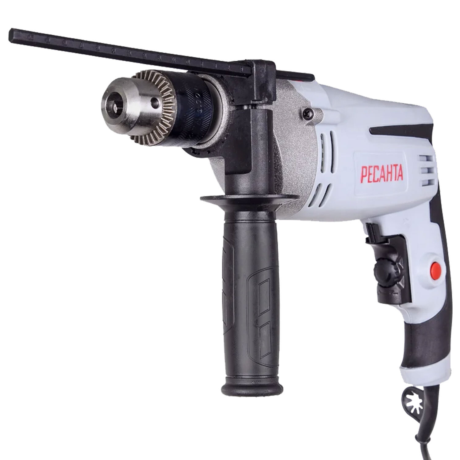 Дрель сетевая ударная, 950 Вт, 3000 об/мин, РЕСАНТА ДУ-15/950М Код товара: 671619 4 281,51 ₽ Купить Производитель:РЕСАНТА Ударная дрель Ресанта ДУ-15/950М (75/8/4) — незаменимый помощник для ремонта и строительства. Сверлит дерево, металл, бетон. Мощность 950 Вт, регулировка оборотов, реверс, ключевой патрон. Идеальна для монтажа мебели, проводки, крепления конструкций. Ударная дрель Ресанта ДУ-15/950М (75/8/4) — универсальный электроинструмент для сверления отверстий в разных материалах. Сочетает вращательное движение с ударным действием, что позволяет работать с бетоном, кирпичом, металлом и деревом. Ключевые характеристики: мощность: 950 Вт; максимальная частота вращения: 3000 об/мин; максимальная частота ударов: 5000 уд/мин; тип патрона: ключевой (1,5–13 мм); максимальный диаметр сверления: - дерево — 25 мм; - металл — 13 мм; - кирпич — 13 мм; - бетон — 15 мм; функции: регулировка частоты вращения, реверс, защита от перегрузок; дополнительная рукоятка в комплекте; ограничитель глубины сверления; длина кабеля: 1,5 м; вес: 2,1 кг; габариты (без упаковки): 580? 315? 265 мм. Преимущества: металлический редуктор — долговечность; ключевой патрон — надёжная фиксация оснастки; регулировка оборотов — адаптация под разные материалы; реверс — облегчает извлечение застрявшего сверла; боковая рукоятка с мягкой накладкой — комфорт при работе. Вся информация на сайте о товарах носит справочный характер и не является публичной офертой в соответствии с пунктом 2 статьи 437 ГК РФ. Производитель оставляет за собой право изменять характеристики товара, его внешний вид и комплектность без предварительного уведомления продавца.Производство: КитайТип: ударнаяМощность: 950 ВтКоличество ударов в минуту: 30000 уд./мин.Диаметр патрона: 13 ммКоличество скоростей: 1Скорость холостого хода 1: 3000 об/минМакс. диаметр сверления (дерево): 25 ммМакс. диаметр сверления (металл): 13 ммРеверс: даТип упаковки: коробкаДлина: 295 ммШирина: 73 ммГлубина: 245 ммВес нетто: 2.1 гСерия: ДУВес: 2,4 кгРазмер упаковки: 7.3 × 24.5 × 29.5 смОбъём: 0.0074 м3Промежуточная упаковка: 6 штТранспортная упаковка: 6 штШтрих-код: 4606059028994 Файлы