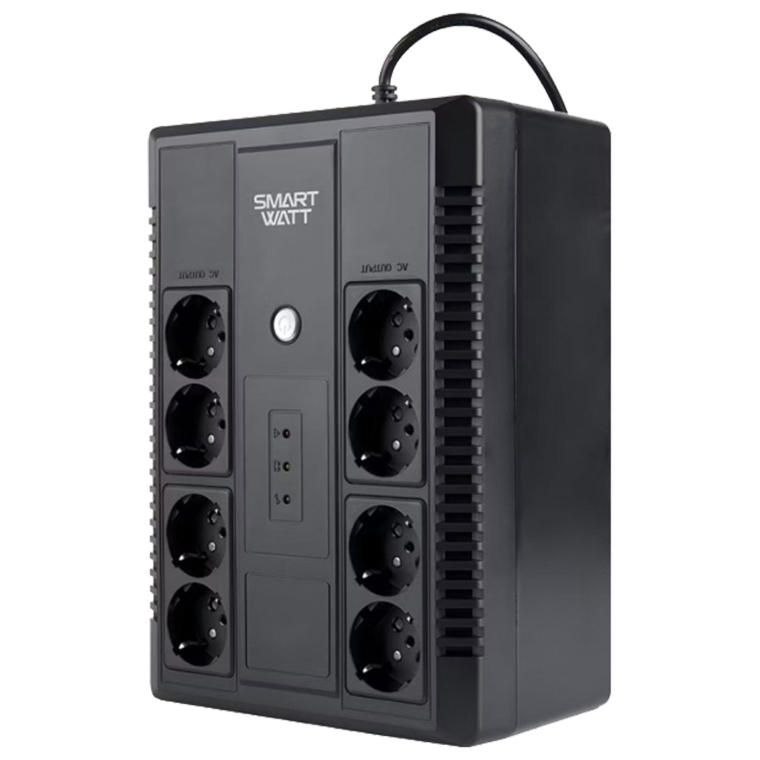 Источник бесперебойного питания SMARTWATT UPS SAFE PRO 650, 650 ВА (390 Вт), 8 розеток Код товара: 355137 5 297,95 ₽ Купить Производитель:SMARTWATT Линейно-интерактивные ИБП SMARTWATT UPS SAFE PRO для офисного и мультимедийного оборудования позволяет резервировать до 8 устройств одновременно. Встроенный стабилизатор защищает от перепадов напряжения в электросети. Компактные размеры, LED-индикация и возможность размещения на стене делают источники бесперебойного питания SMARTWATT UPS SAFE PRO одним из самых удобных решений для офисного пространства. Каждая модель этой серии оснащена 8 евророзетками и USB-портом для подключения к ПК. Преимущества - Аппроксимированный синус, - 4 розетки Schuko для резервирования, - 4 розетки Schuko для стабилизации, - Возможность настенной установки, - Широкий модельный ряд, - Запуск при восстановлении питания, - Автоопределение частоты, - Заряд АКБ в выключенном состоянии, - LED-индикация. Вся информация на сайте о товарах носит справочный характер и не является публичной офертой в соответствии с пунктом 2 статьи 437 ГК РФ. Производитель оставляет за собой право изменять характеристики товара, его внешний вид и комплектность без предварительного уведомления продавца.Производство: КитайТип выходных разъемов питания: евророзетка (CEE 7/4)Максимальная выходная мощность: 650 ВАМаксимальная выходная мощность: 390 ВтВходное напряжение: 140-300 ВВремя работы от батарей при полной нагрузке: 0 минКоличество розеток для защиты от всплесков напряжения: 4 шт.Количество розеток для батарейного резервного питания: 4 шт.Макс. время переключения на батареи: 6 мсФункции: защита от перегрузки, защита телефонной линии (RJ-11)Индикатор состояния входного напряжения: даСреднее время зарядки при полном разряде батареи: 0 чЦвет корпуса: черныйВысота: 117 ммШирина: 195 ммГлубина: 285 ммВес: 4 кгСерия: UPS SAFE PROРазмер упаковки: 11.7 × 19.5 × 28.5 смОбъём: 0.0065 м3Промежуточная упаковка: 1 штТранспортная упаковка: 1 штШтрих-код: 4620356950796 Файлы Приложение-1.pdf