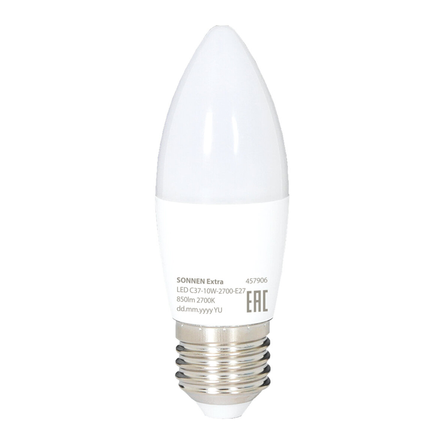 Лампа светодиодная SONNEN EXTRA, 10 (85) Вт, Е27, свеча, теплый белый, 30000 ч, LED C37-10W-2700-Е27 Код товара: 457906 70,1 ₽ Купить Производитель:SONNEN Светодиодная лампа SONNEN EXTRA компактного размера. Срок службы лампы составляет не менее 30000 часов, что примерно в 30 раз больше, чем у обычной лампы накаливания. Оснащена цоколем типа Е27 и излучает теплый белый cвет. Отличается длительным сроком службы. Имеет форму колбы "свеча" и сделана из белого матового пластика. Мощность лампы составляет 10 Вт. Представленная модель дает световой поток 850 Лм, а цветовая температура равна 2700 K. Диаметр лампы составляет 37 мм. Производитель сохраняет за собой право на внесение изменений в технические характеристики, комплектацию и конструкцию данной модели для улучшения эксплуатационных свойств без предварительного уведомления.Производство: Китай Тип цоколя : E27Количество в комплекте: 1 шт.Оттенок света: теплый белыйМощность: 10 ВтТип лампы: светодиоднаяТип колбы: свечаВид колбы: матоваяМинимальное рабочее напряжение: 175 ВМаксимальное рабочее напряжение: 265 ВМощность эквивалентной по световому потоку лампы накаливания: 85 ВтСветовой поток: 850 ЛмЦветовая температура: 2700 КИндекс цветопередачи: 80 %Срок службы: 30000 ч.Высота (длина) лампы: 112 ммДиаметр лампы: 37 ммСерия: EXTRAВес: 32 грРазмер упаковки: 4 × 11.6 × 3.8 смОбъём: 0.0002 м3Промежуточная упаковка: 10 штТранспортная упаковка: 100 штШтрих-код: 4606224501659 Файлы Сертификат-1.jpg Сертификат-2.jpg