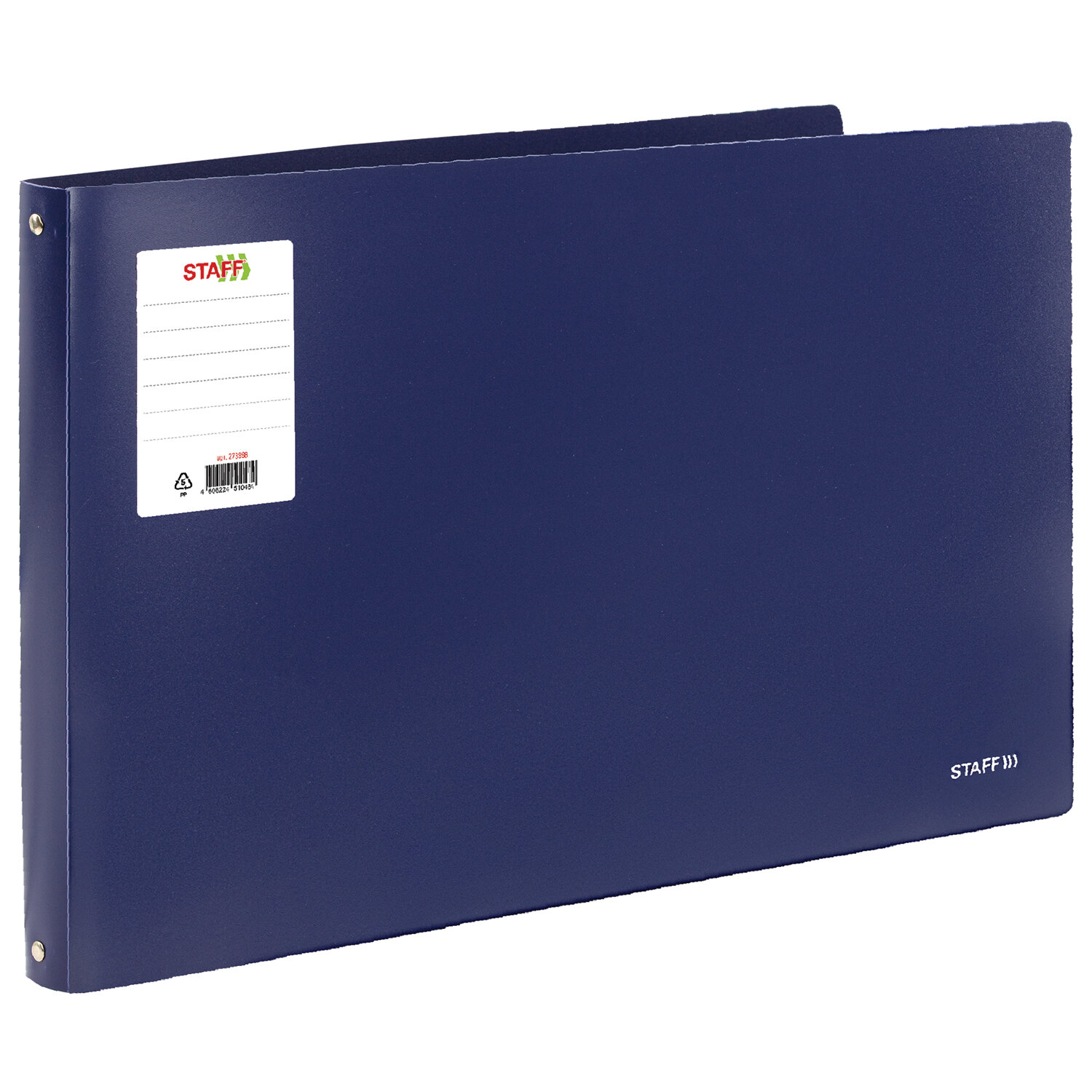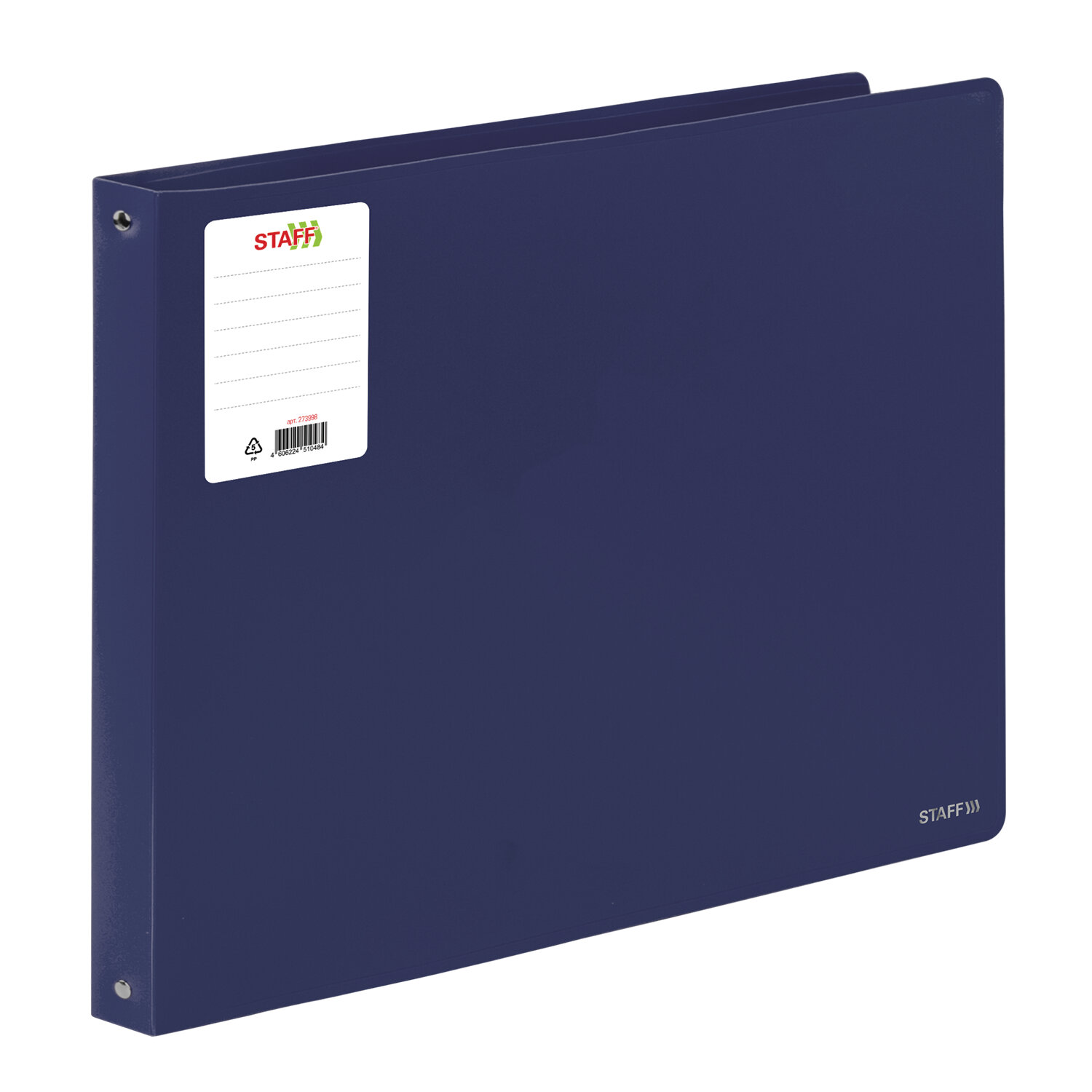 Папка на 4 кольцах БОЛЬШОГО ФОРМАТА А3, ГОРИЗОНТАЛЬНАЯ, 30 мм, до 250 листов, синяя, 0,8 мм, STAFF Код товара: 273998 581,79 ₽ Купить Производитель:STAFF Папка на кольцах STAFF предназначена для временного или длительного хранения, систематизации, архивирования документов. Такие папки используются в работе офисными сотрудниками различных специальностей, направлений, должностей. Папка формата А3 вмещает до 250 листов. Изготовлена из высококачественного пластика толщиной 0,8 мм со стандартной фактурой "песок". Допускается влажная обработка поверхности. Для идентификации имеется бумажная наклейка. Ширина корешка составляет 30 мм. Папка оснащена четырьмя кольцами, которые обеспечивают надежное хранение документов. В неё можно вставить файлы или проколотые дыроколом листы и, при необходимости, заменить их на другие.Производство: РоссияКоличество колец: 4Формат: А3Положение папки: горизонтальноеВместимость: 250 листовШирина корешка: 30 ммСерия: Profit_А3Диаметр колец: 25 ммДопустима влажная обработка: даМатериал: пластикТолщина материала: 0.8 ммФактура: песокЦвет: синийИндивидуальная упаковка: даВес: 326 грРазмер упаковки: 3.9 × 46.3 × 31 смОбъём: 0.0033 м3Промежуточная упаковка: 16 штТранспортная упаковка: 16 штШтрих-код: 4606224510484 Файлы