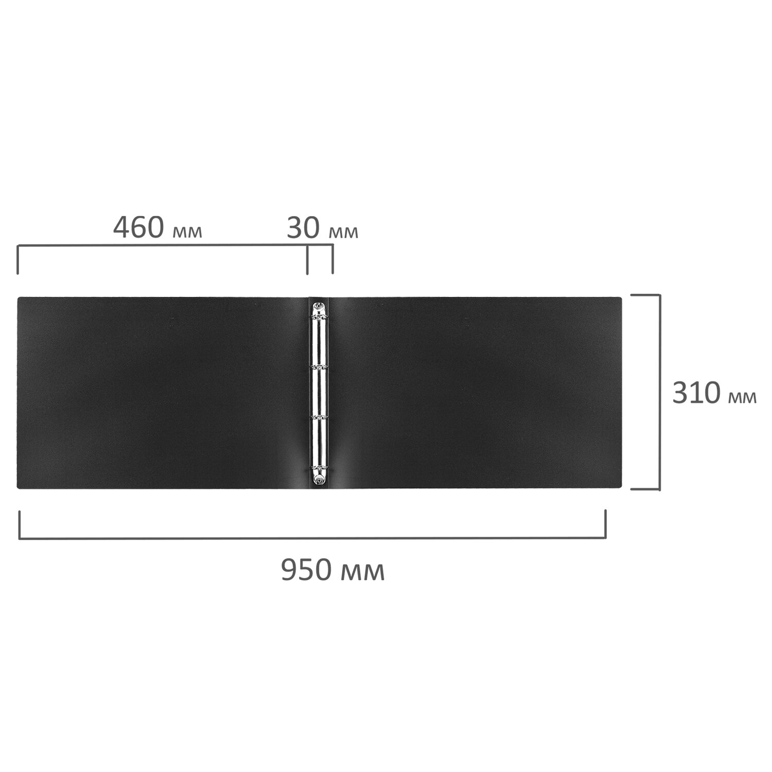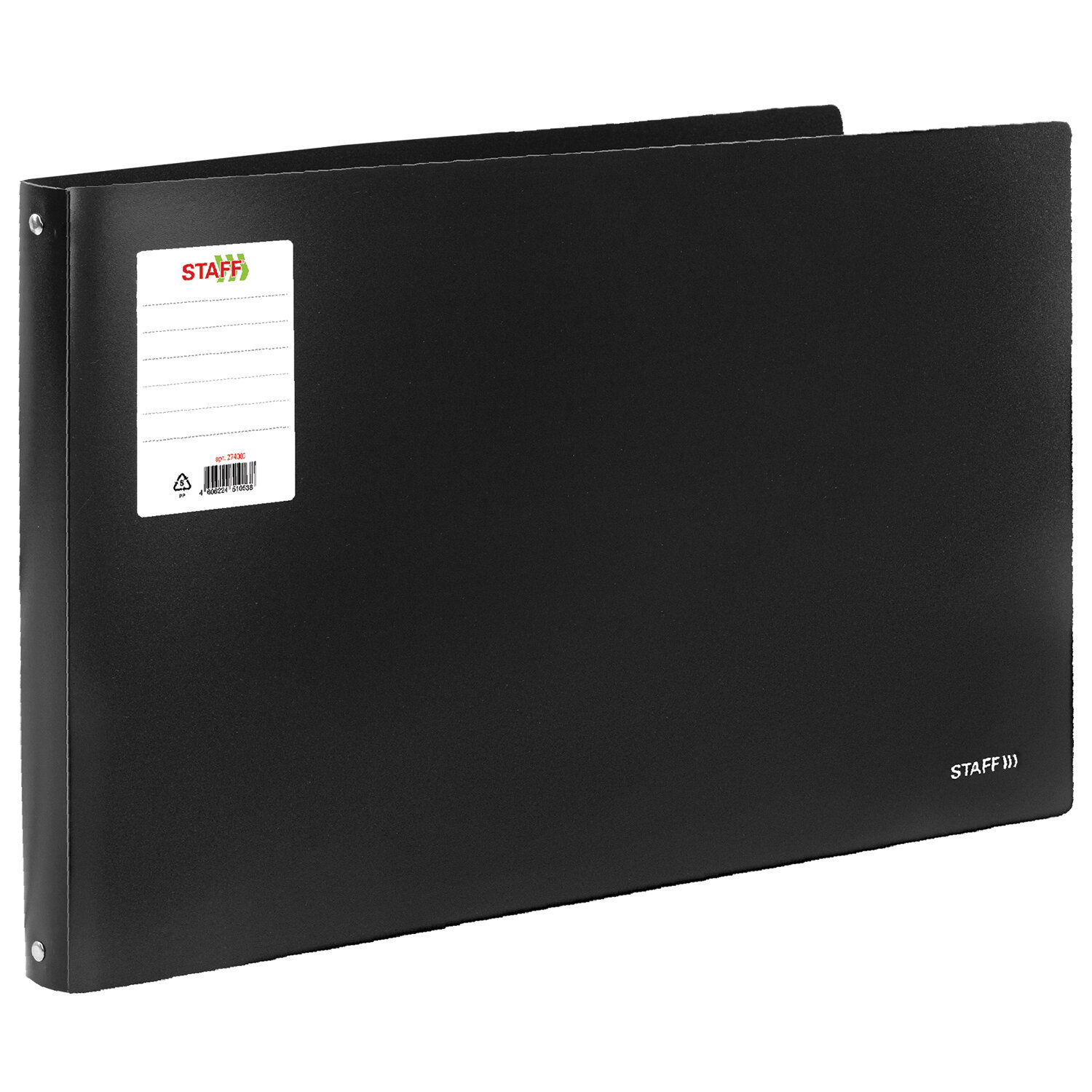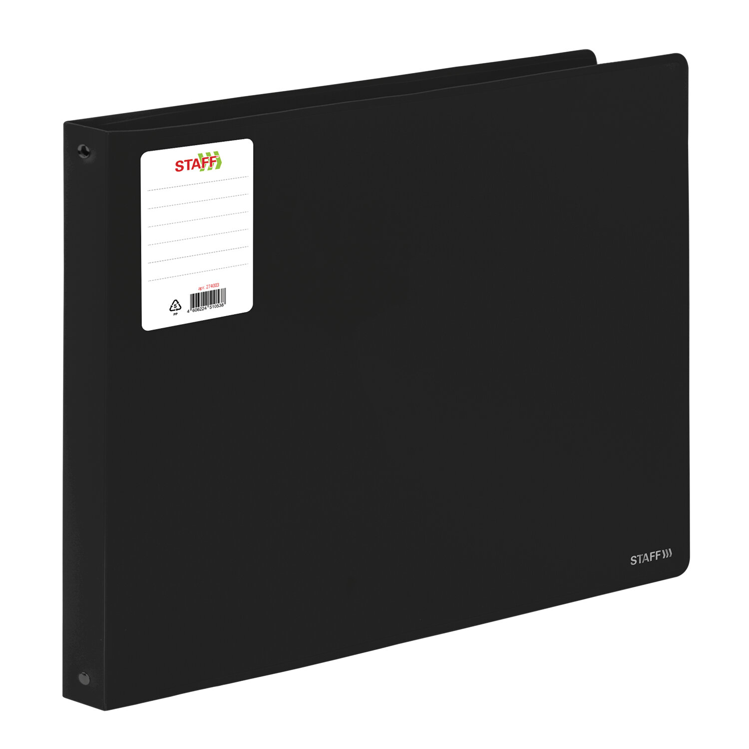 Папка на 4 кольцах БОЛЬШОГО ФОРМАТА А3, ГОРИЗОНТАЛЬНАЯ, 30 мм, до 250 листов, черная, 0,8 мм, STAFF Код товара: 274003 581,79 ₽ Купить Производитель:STAFF Папка на кольцах STAFF предназначена для временного или длительного хранения, систематизации, архивирования документов. Такие папки используются в работе офисными сотрудниками различных специальностей, направлений, должностей. Папка формата А3 вмещает до 250 листов. Изготовлена из высококачественного пластика толщиной 0,8 мм со стандартной фактурой "песок". Допускается влажная обработка поверхности. Для идентификации имеется бумажная наклейка. Ширина корешка составляет 30 мм. Папка оснащена четырьмя кольцами, которые обеспечивают надежное хранение документов. В неё можно вставить файлы или проколотые дыроколом листы и, при необходимости, заменить их на другие.Производство: РоссияКоличество колец: 4Формат: А3Положение папки: горизонтальноеВместимость: 250 листовШирина корешка: 30 ммСерия: Profit_А3Диаметр колец: 25 ммДопустима влажная обработка: даМатериал: пластикТолщина материала: 0.8 ммФактура: песокЦвет: черныйИндивидуальная упаковка: даВес: 325 грРазмер упаковки: 4 × 46 × 31.1 смОбъём: 0.0033 м3Промежуточная упаковка: 16 штТранспортная упаковка: 16 штШтрих-код: 4606224510538 Файлы