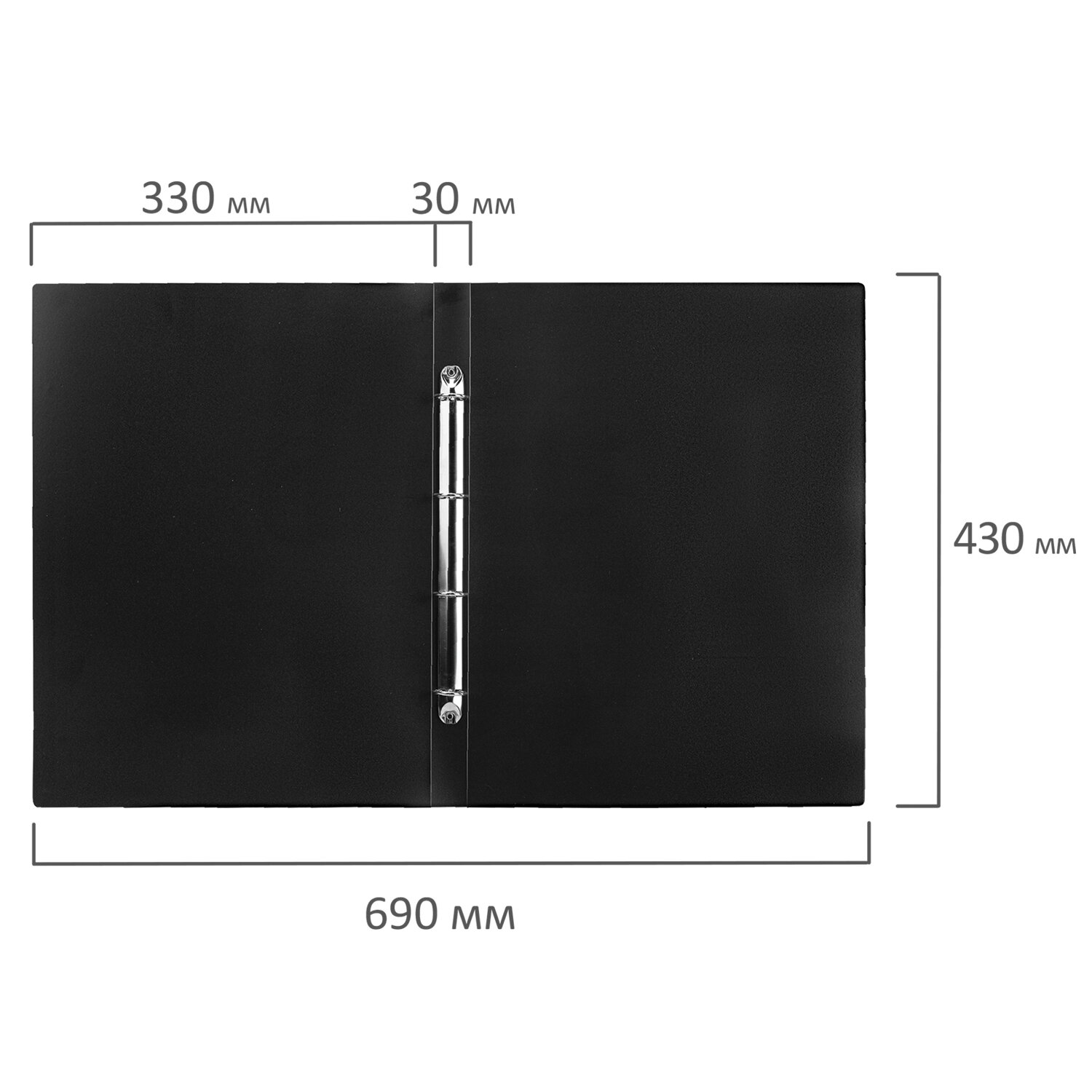 Папка на 4 кольцах БОЛЬШОГО ФОРМАТА А3, ВЕРТИКАЛЬНАЯ, 30 мм, до 250 листов, черная, 0,8 мм, STAFF Код товара: 274004 539,04 ₽ Купить Производитель:STAFF Папка на кольцах STAFF предназначена для временного или длительного хранения, систематизации, архивирования документов. Такие папки используются в работе офисными сотрудниками различных специальностей, направлений, должностей. Папка формата А3 вмещает до 250 листов. Изготовлена из высококачественного пластика толщиной 0,8 мм со стандартной фактурой "песок". Допускается влажная обработка поверхности. Для идентификации имеется бумажная наклейка. Ширина корешка составляет 30 мм. Папка оснащена четырьмя кольцами, которые обеспечивают надежное хранение документов. В неё можно вставить файлы или проколотые дыроколом листы и, при необходимости, заменить их на другие.Производство: РоссияКоличество колец: 4Формат: А3Положение папки: вертикальноеВместимость: 250 листовШирина корешка: 30 ммСерия: Profit_А3Диаметр колец: 25 ммДопустима влажная обработка: даМатериал: пластикТолщина материала: 0.8 ммФактура: песокЦвет: черныйИндивидуальная упаковка: даВес: 328 грРазмер упаковки: 4.3 × 43.1 × 33.2 смОбъём: 0.0034 м3Промежуточная упаковка: 16 штТранспортная упаковка: 16 штШтрих-код: 4606224510545 Файлы