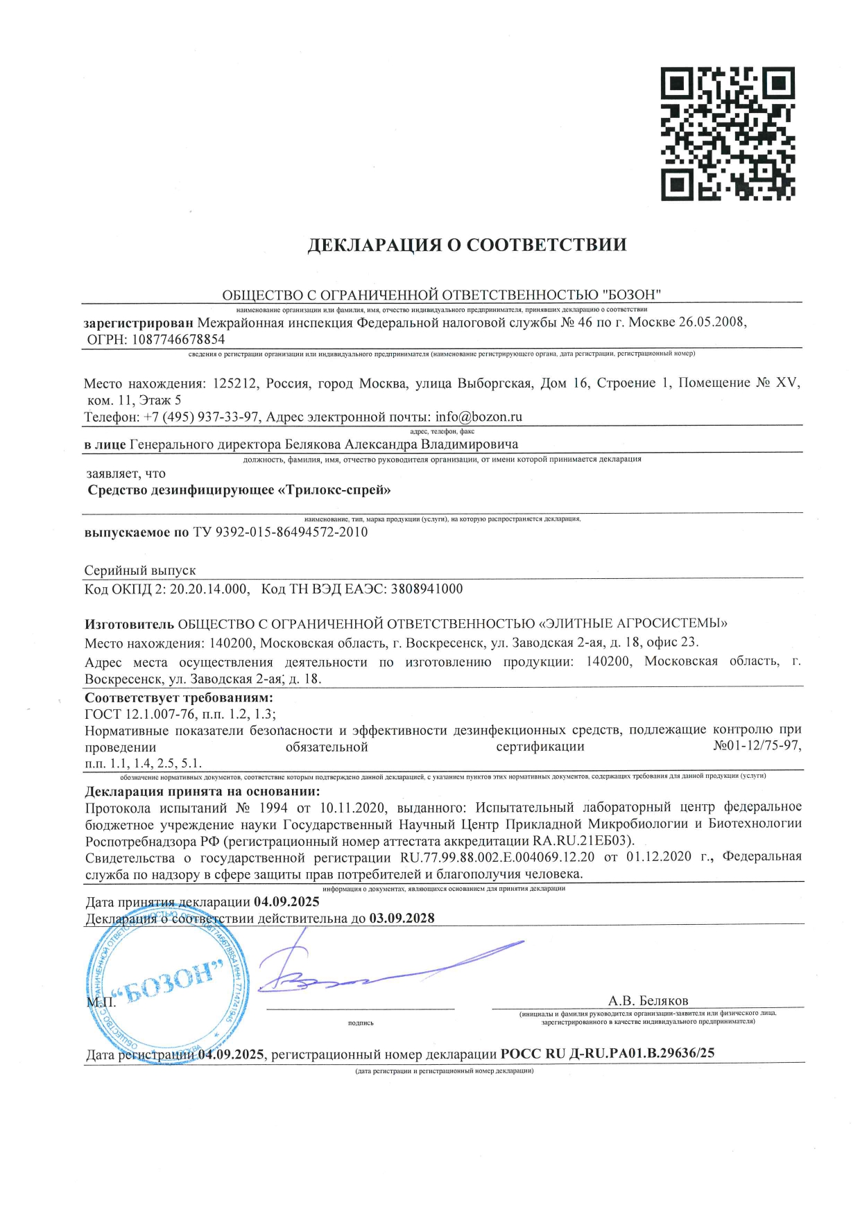 - Соответствует требованиям ГОСТа: ГОСТ 12.1.007-76 п.1.2, 1.3, ГОСТ Р 56990-2016, ГОСТ Р 58151.1-2018