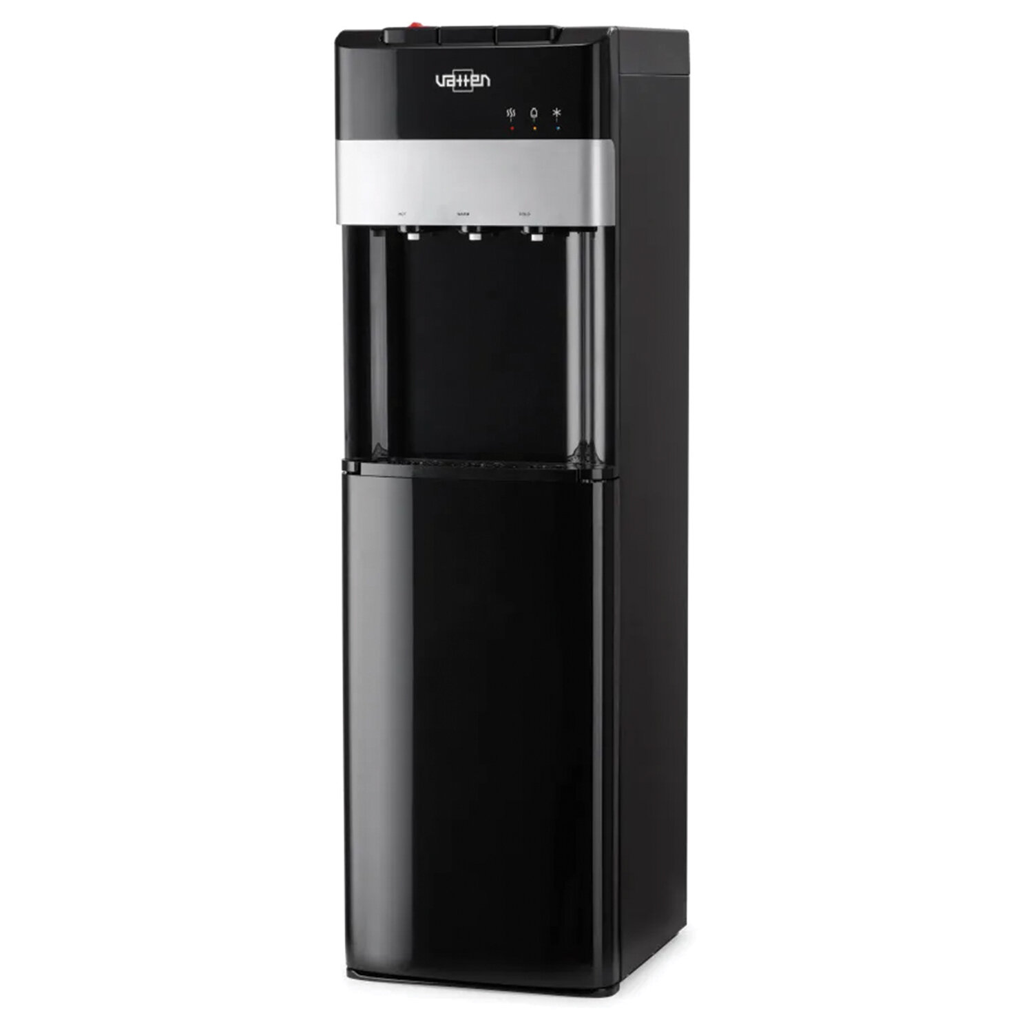 Кулер для воды VATTEN L03NKV, напольный, НАГРЕВ/ОХЛАЖДЕНИЕ КОМПРЕССОРНОЕ, бутыль снизу, УФ-очистка, 3 крана, черный Код товара: 458045 19 989,31 ₽ Купить Производитель:VATTEN Кулер VATTEN L03NKV с нижней загрузкой бутыли и с технологией ультрафиолетового обеззараживания воды. Кулер VATTEN L03NKV – это диспенсер, который обладает тремя режимами подачи воды: холодная, горячая и комнатная. Жидкость обеззараживается за счет встроенной ультрафиолетовой лампы. Компактная модель занимает минимум места и выглядит эстетично за счет нижней установки бутыли – емкость скрывается в специальном шкафчике с дверцей. Для сбора падающих капель предусмотрен лоток, который легко снимается для опустошения и очистки. Корпус, выполненный в современном дизайне, гармонично сочетается с любым типом интерьера. Кулер охлаждает воду до 9 °С компрессорным способом со скоростью 2 л/час. Тэн мощностью 800 Вт обеспечивает нагрев жидкости до 95 °С, производительность – 8,5 л/час. Устройство управляется с помощью трех клавиш-помп, каждая из которых отвечают за отдельный краник. Панель со светодиодными индикаторами позволяет контролировать процесс работы. Прибор относится к B-классу энергоэффективности, так как экономично потребляет электричество. Материал баков для кипятка и холодной воды – прочная нержавеющая сталь, устойчивая к механическим воздействиям, коррозии, температурным перепадам и деформации, за счет чего кулер отличается долговечностью. Устройство подходит для домашнего, офисного и общественного использования. Модель устанавливается напольным способом. Кнопка подачи горячей воды блокируется для защиты от детей и случайного нажатия. Производитель оставляет за собой право без предварительного уведомления вносить изменения в технические характеристики, комплектацию и конструкцию, не ухудшающие эксплуатационные характеристики изделия.Производство: КитайТип установки: напольныйТип охлаждения: компрессорныйПодача воды с нагревом: даПодача воды с охлаждением: даПодача воды комнатной температуры: даКоличество кранов подачи воды: 3 шт. Серия: L03NKVРекомендуемое количество пользователей: 20Крепление стаканодержателя: крепление винтами, крепление магнитомРазмещение бутыли с водой: нижнее размещениеТип крана: клавишиМощность нагрева: 800 ВтМощность охлаждения: 85 ВтПроизводительность нагрева: 8.5 л/часПроизводительность охлаждения: 2 л/часТемпература нагревания воды: 95 градусТемпература охлаждения воды: 9 градусЕмкость бака для горячей воды: 1 лЕмкость бака для холодной воды: 3 лТип нагревательного элемента: Нет данныхЗащита от детей: даОбъем холодильника: 0 лОбъем шкафчика: 0 лНапряжение: 0 ВМатериал корпуса: пластикЦвет корпуса: черныйДлина шнура: 0 мВысота: 1045 ммШирина: 310 ммГлубина: 350 ммВес (без упаковки): 14 кгВес: 15,33 кгРазмер упаковки: 112 × 36 × 39.2 смОбъём: 0.1581 м3Промежуточная упаковка: 1 штТранспортная упаковка: 1 штШтрих-код: 4630014933856 Файлы Приложение-1.pdf