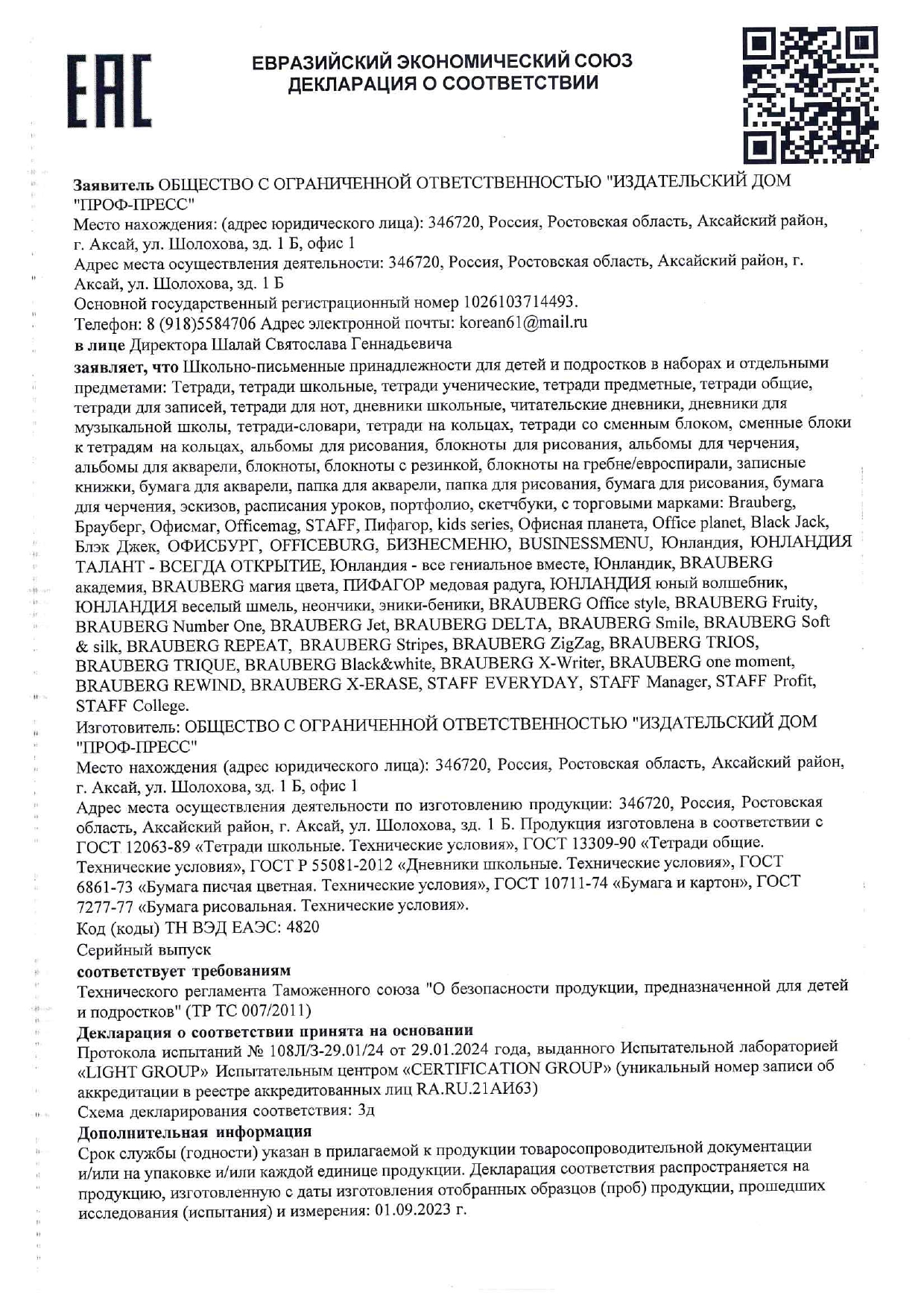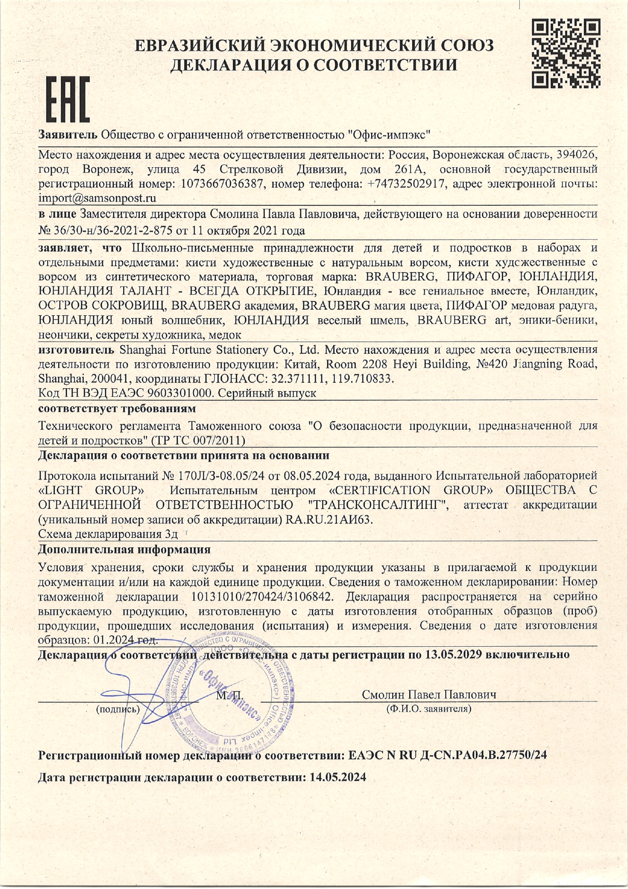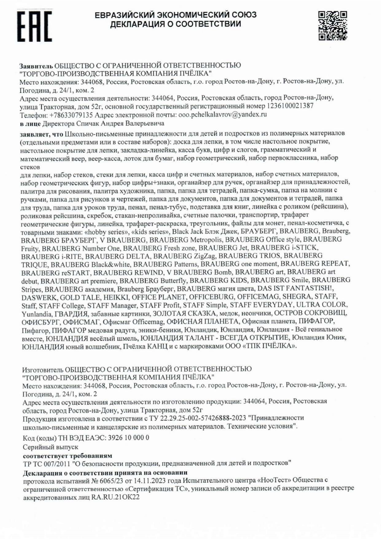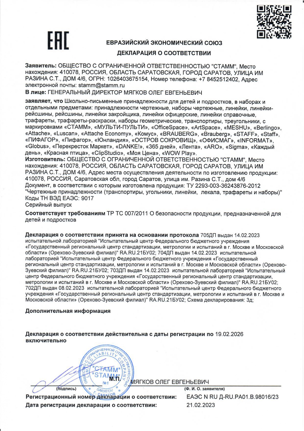 Набор школьных принадлежностей в подарочной коробке ЮНЛАНДИЯ "НАБОР ПЕРВОКЛАССНИКА", 42 предмета Код товара: 880118 1 351,46 ₽ Купить Производитель:ЮНЛАНДИЯ Набор канцелярских принадлежностей ЮНЛАНДИЯ "ПЕРВОКЛАССНИК" для выпускников детского сада и первоклассников в красочной упаковке. Скомплектован на основе рекомендаций учителей начальных классов. Все самые необходимые школьные принадлежности упакованы в удобный чемоданчик с ручкой. Состав набора: - краски акварельные 12 цветов – 1 шт.; - гуашь – 1 шт.; - бумага для рисования 10 л., А4 – 1 шт.; - набор цветного картона и бумаги 8+8 цветов – 1 шт.; - доска для лепки – 1 шт.; - карандаши чернографитные – 2 шт.; - карандаши цветные 12 цветов – 1 шт.; - клей-карандаш – 1 шт.; - ластик – 2 шт.; - линейка 15 см – 1 шт.; - ножницы – 1 шт.; - пластилин 12 цветов – 1 шт.; - ручки шариковые синие – 2 шт.; - тетрадь в клетку 12 л. – 5 шт.; - тетрадь в косую линию 12 л. – 5 шт.; - точилка – 1 шт.; - фломастеры 6 цветов – 1 шт.; - набор кистей из 3 шт. – 1 шт.; - стакан-непроливайка – 1 шт.; - обложки для тетрадей и дневников – 10 шт.; - папка-конверт с кнопкой А4 – 1 шт.; - расписание уроков – 1 шт; - короб подарочный – 1 шт. Набор представляет собой подарочную коробку-чемоданчик из плотного картона с красочным дизайном и наполнением. Короб дополнительно упакован в термоусадку. Состав набора разработан на основе рекомендаций учителей и пожеланий родителей таким образом, чтобы обеспечить юного ученика всем необходимым. В состав набора входят только высококачественные сертифицированные отечественные и импортные школьные принадлежности, соответствующие требованиям безопасности детских товаров законодательства РФ.Производство: РоссияТип товара: набор первоклассникаКоличество предметов: 42 шт.Пол ребенка: универсальныйДлина: 33.7 смШирина: 25.7 смГлубина: 7.9 смМатериал упаковки: микрогофрокартонПодарочная упаковка: даСрок годности: 36 месВес: 2,23 кгРазмер упаковки: 10.2 × 34.7 × 29 смОбъём: 0.0121 м3Промежуточная упаковка: 4 штТранспортная упаковка: 4 штШтрих-код: 4606224320472 Файлы Сертификат-1.jpg Сертификат-2.jpg Сертификат-3.jpg Сертификат-4.jpg Сертификат-5.jpg Сертификат-6.jpg Сертификат-7.jpg Сертификат-8.jpg Сертификат-9.jpg Сертификат-10.jpg Сертификат-11.jpg Сертификат-12.jpg Сертификат-13.jpg Сертификат-14.jpg Сертификат-15.jpg Сертификат-16.jpg Сертификат-17.jpg Сертификат-18.jpg Сертификат-19.jpg Сертификат-20.jpg Сертификат-21.jpg Сертификат-22.jpg Сертификат-23.jpg Сертификат-24.jpg Сертификат-25.jpg Сертификат-26.jpg Сертификат-27.jpg Сертификат-28.jpg Сертификат-29.jpg Сертификат-30.jpg Сертификат-31.jpg Сертификат-32.jpg Сертификат-33.jpg Сертификат-34.jpg Сертификат-35.jpg Сертификат-36.jpg Сертификат-37.jpg