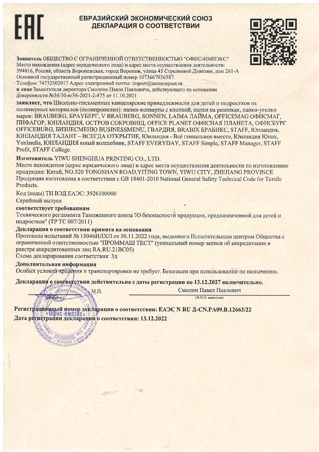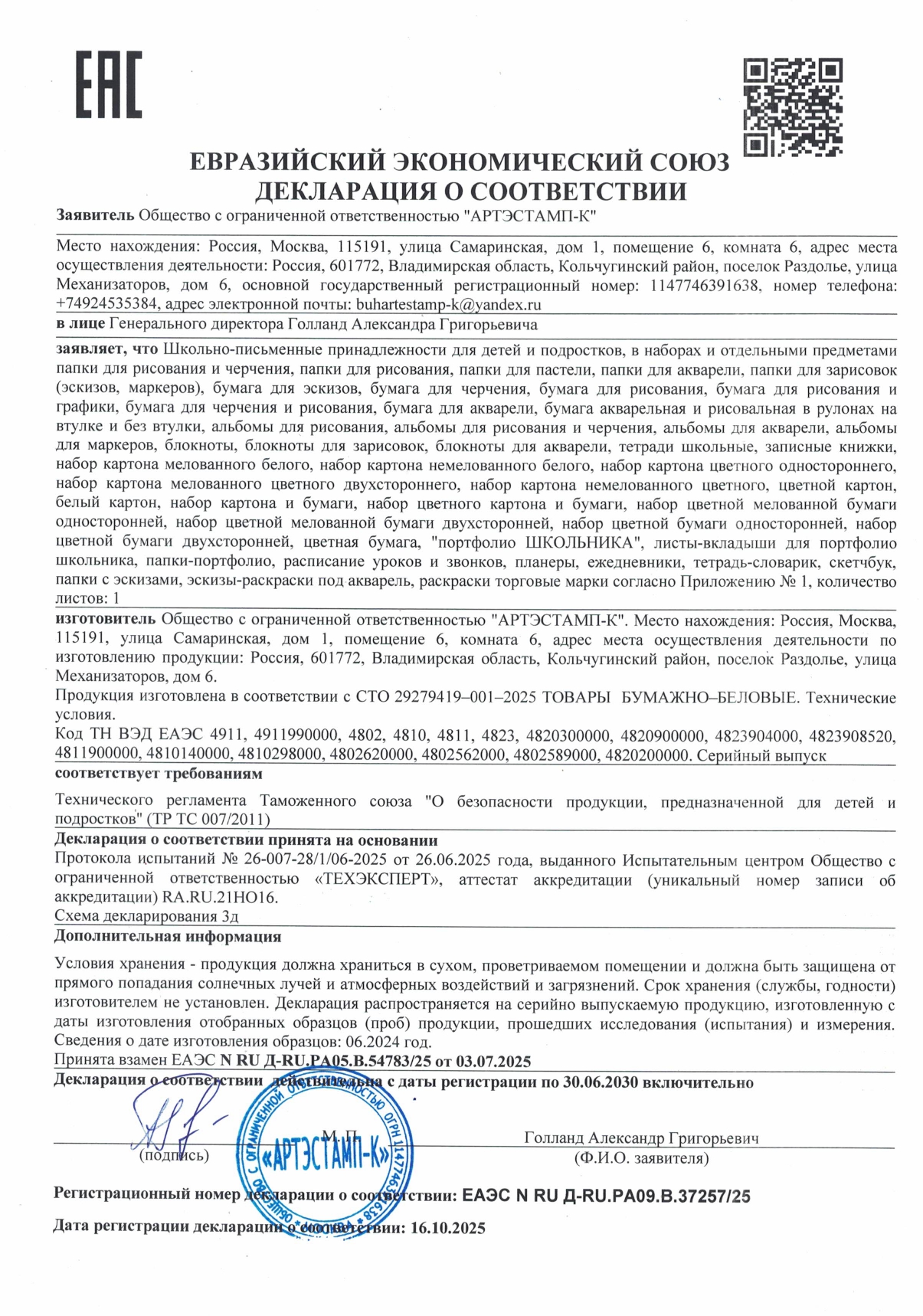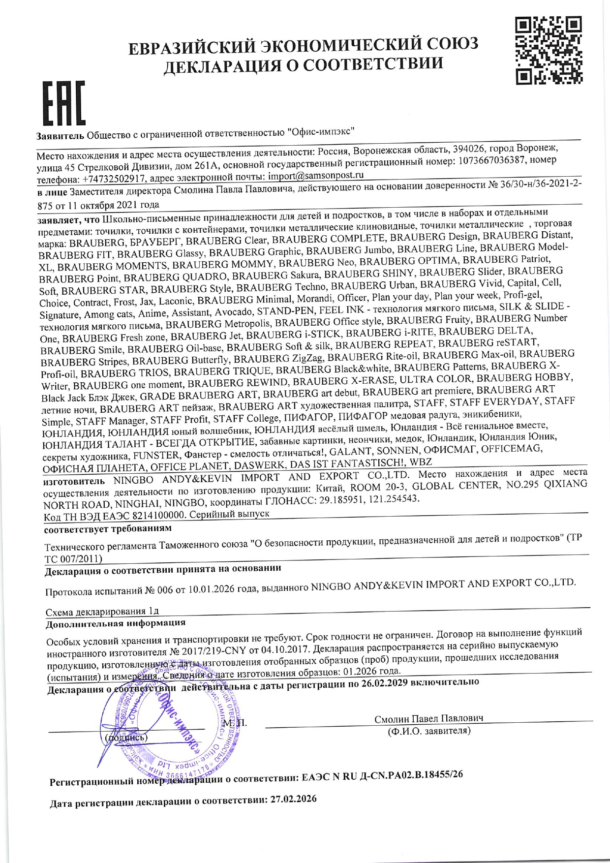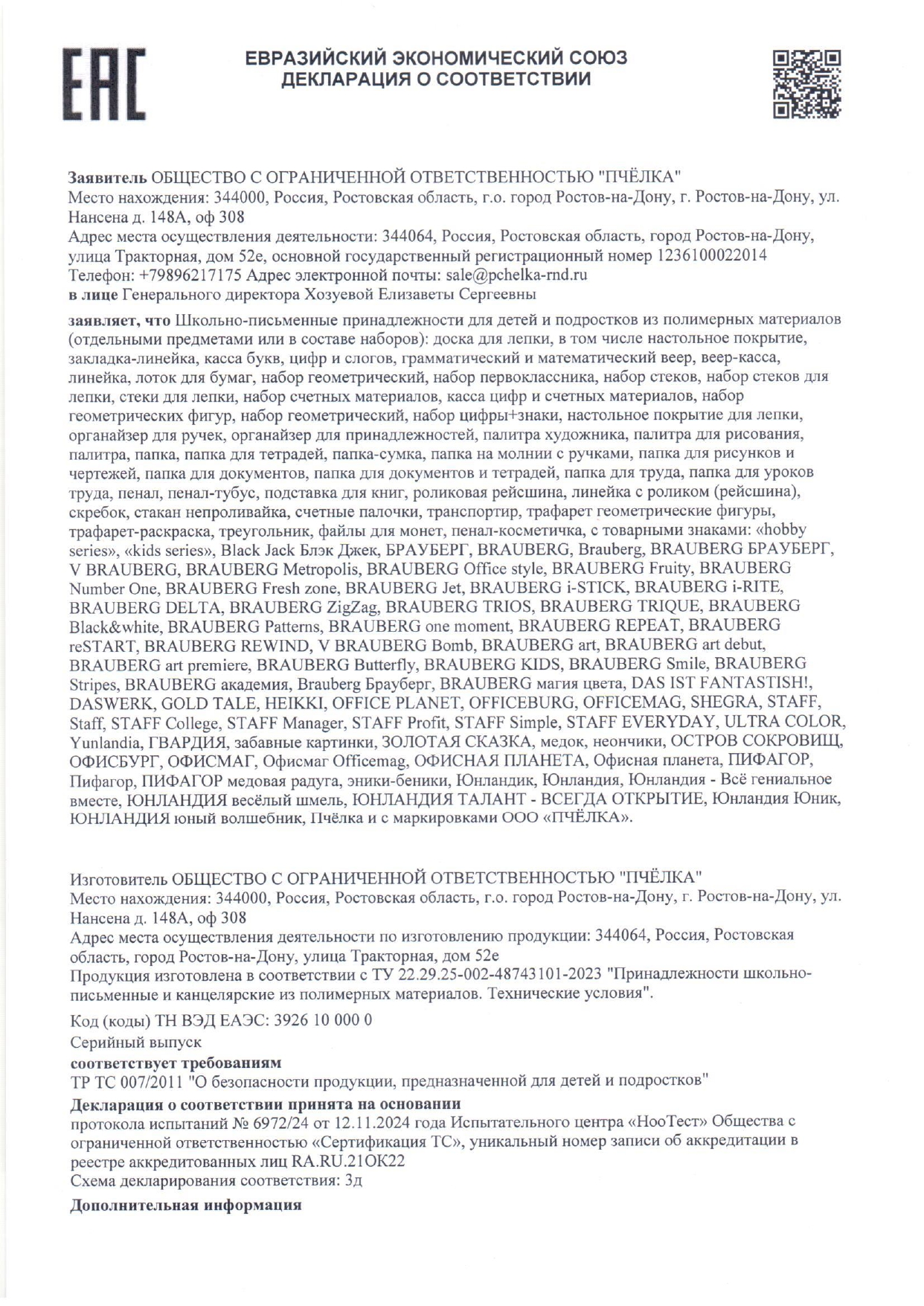 Набор школьных принадлежностей в подарочной коробке ЮНЛАНДИЯ "НАБОР ПЕРВОКЛАССНИКА", 42 предмета Код товара: 880118 1 351,46 ₽ Купить Производитель:ЮНЛАНДИЯ Набор канцелярских принадлежностей ЮНЛАНДИЯ "ПЕРВОКЛАССНИК" для выпускников детского сада и первоклассников в красочной упаковке. Скомплектован на основе рекомендаций учителей начальных классов. Все самые необходимые школьные принадлежности упакованы в удобный чемоданчик с ручкой. Состав набора: - краски акварельные 12 цветов – 1 шт.; - гуашь – 1 шт.; - бумага для рисования 10 л., А4 – 1 шт.; - набор цветного картона и бумаги 8+8 цветов – 1 шт.; - доска для лепки – 1 шт.; - карандаши чернографитные – 2 шт.; - карандаши цветные 12 цветов – 1 шт.; - клей-карандаш – 1 шт.; - ластик – 2 шт.; - линейка 15 см – 1 шт.; - ножницы – 1 шт.; - пластилин 12 цветов – 1 шт.; - ручки шариковые синие – 2 шт.; - тетрадь в клетку 12 л. – 5 шт.; - тетрадь в косую линию 12 л. – 5 шт.; - точилка – 1 шт.; - фломастеры 6 цветов – 1 шт.; - набор кистей из 3 шт. – 1 шт.; - стакан-непроливайка – 1 шт.; - обложки для тетрадей и дневников – 10 шт.; - папка-конверт с кнопкой А4 – 1 шт.; - расписание уроков – 1 шт; - короб подарочный – 1 шт. Набор представляет собой подарочную коробку-чемоданчик из плотного картона с красочным дизайном и наполнением. Короб дополнительно упакован в термоусадку. Состав набора разработан на основе рекомендаций учителей и пожеланий родителей таким образом, чтобы обеспечить юного ученика всем необходимым. В состав набора входят только высококачественные сертифицированные отечественные и импортные школьные принадлежности, соответствующие требованиям безопасности детских товаров законодательства РФ.Производство: РоссияТип товара: набор первоклассникаКоличество предметов: 42 шт.Пол ребенка: универсальныйДлина: 33.7 смШирина: 25.7 смГлубина: 7.9 смМатериал упаковки: микрогофрокартонПодарочная упаковка: даСрок годности: 36 месВес: 2,23 кгРазмер упаковки: 10.2 × 34.7 × 29 смОбъём: 0.0121 м3Промежуточная упаковка: 4 штТранспортная упаковка: 4 штШтрих-код: 4606224320472 Файлы Сертификат-1.jpg Сертификат-2.jpg Сертификат-3.jpg Сертификат-4.jpg Сертификат-5.jpg Сертификат-6.jpg Сертификат-7.jpg Сертификат-8.jpg Сертификат-9.jpg Сертификат-10.jpg Сертификат-11.jpg Сертификат-12.jpg Сертификат-13.jpg Сертификат-14.jpg Сертификат-15.jpg Сертификат-16.jpg Сертификат-17.jpg Сертификат-18.jpg Сертификат-19.jpg Сертификат-20.jpg Сертификат-21.jpg Сертификат-22.jpg Сертификат-23.jpg Сертификат-24.jpg Сертификат-25.jpg Сертификат-26.jpg Сертификат-27.jpg Сертификат-28.jpg Сертификат-29.jpg Сертификат-30.jpg Сертификат-31.jpg Сертификат-32.jpg Сертификат-33.jpg Сертификат-34.jpg Сертификат-35.jpg Сертификат-36.jpg Сертификат-37.jpg