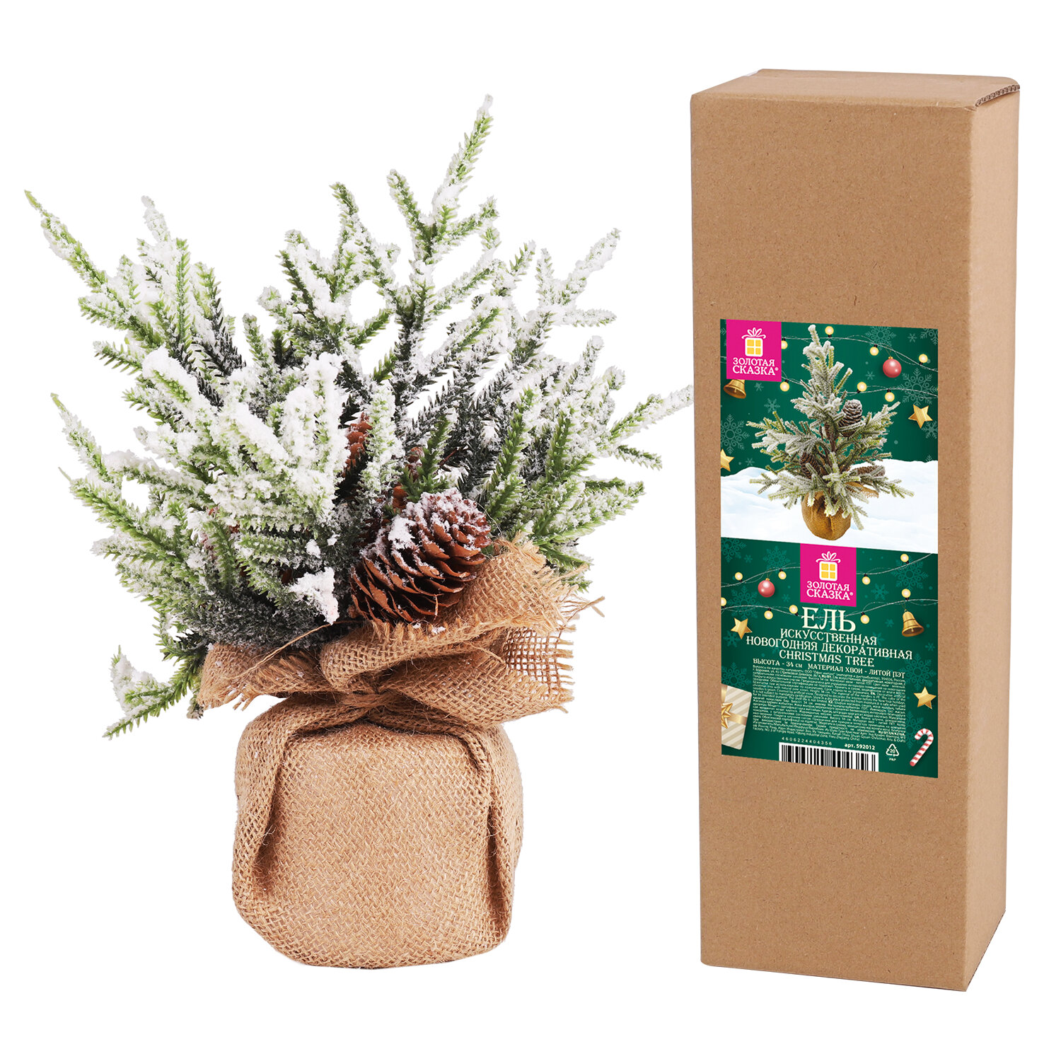 Ель новогодняя искусственная настольная 34 см с шишками, литой ПЭТ, ЗОЛОТАЯ СКАЗКА Код товара: 592012 808,57 ₽ Купить Производитель:ЗОЛОТАЯ СКАЗКА Ель настольная новогодняя ЗОЛОТАЯ СКАЗКА станет прекрасным украшением для дома или офиса, преобразит пространство, а также подарит ощущение праздника и новогоднее настроение. Ель искусственная настольная заснеженная с шишками высотой 34 см представляет собой конструкцию из металлического каркаса и закрепленных к нему ветвей. Материал – 100% литой ПЭТ. Цвет хвои – зелёный. Иголки украшены искусственным белым снегом и декоративными сосновыми шишками размером 3x4 см. Материал подставки – застывший цементный раствор, обёрнутый декоративной холщовой тканью. Высота ели – 34 см. Тип крепления ветвей к стволу – примотка. Такой тип крепления подразумевает, что ветви уже прикреплены к стволу и после покупки их необходимо самостоятельно расправить, чтобы ель приобрела нужную форму.Производство: КитайВысота: 0.34 мСерия: литой ПЭТДлина игл: 2 смДиаметр нижнего яруса: 0.3 мЦвет хвои: зеленыйДекор: декоративные сосновые шишки, искусственный белый снегМатериал хвои: литой ПЭТМатериал подставки: цемент + холстинаВес: 265 грРазмер упаковки: 8.3 × 34.1 × 10.7 смОбъём: 0.0034 м3Промежуточная упаковка: 30 штТранспортная упаковка: 30 штШтрих-код: 4606224404356 Файлы Сертификат-1.jpg Сертификат-2.jpg Сертификат-3.jpg Сертификат-4.jpg Сертификат-5.jpg Сертификат-6.jpg Сертификат-7.jpg Сертификат-8.jpg Сертификат-9.jpg Сертификат-10.jpg Сертификат-11.jpg Сертификат-12.jpg Сертификат-13.jpg Сертификат-14.jpg Сертификат-15.jpg Сертификат-16.jpg Сертификат-17.jpg Сертификат-18.jpg Сертификат-19.jpg Сертификат-20.jpg Сертификат-21.jpg Сертификат-22.jpg Сертификат-23.jpg Сертификат-24.jpg Сертификат-25.jpg Сертификат-26.jpg