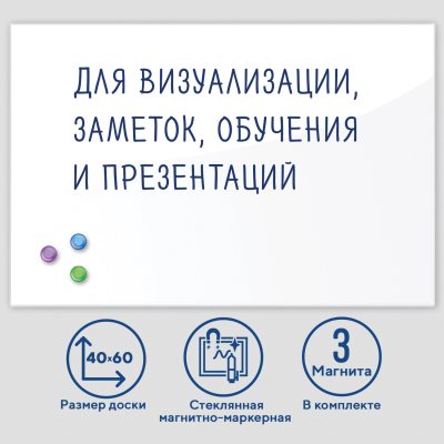 Стеклянные доски Популярное Новинки По размеру скидки Дешевле Дороже По названию А-Я По названию Я-А ЛиквидацияКод: 236735Доска магнитно-маркерная стеклянная 45х45 см, 3 магнита, БЕЛАЯ, BRAUBERG 3 290,07 ₽Купить ЛиквидацияКод: 236737Доска магнитно-маркерная стеклянная 45х45 см, 3 магнита, КРАСНАЯ, BRAUBERG 2 688,11 ₽Купить ЛиквидацияКод: 236741Доска магнитно-маркерная стеклянная 45х45 см, 3 магнита, СИНЯЯ, BRAUBERG 2 688,11 ₽Купить ЛиквидацияКод: 236742Доска магнитно-маркерная стеклянная 45х45 см, 3 магнита, РОЗОВАЯ, BRAUBERG 1 462,14 ₽Купить ЛиквидацияКод: 236746Доска магнитно-маркерная стеклянная 40х60 см, 3 магнита, КРАСНАЯ, BRAUBERG 1 997,79 ₽Купить Код: 236744Доска магнитно-маркерная стеклянная 40х60 см, 3 магнита, БЕЛАЯ, BRAUBERG 6 126,41 ₽Купить Код: 236745Доска магнитно-маркерная стеклянная 40х60 см, 3 магнита, ЧЕРНАЯ, BRAUBERG 6 126,41 ₽Купить Код: 236747Доска магнитно-маркерная стеклянная 60х90 см, 3 магнита, БЕЛАЯ, BRAUBERG 12 448,07 ₽Купить Код: 236748Доска магнитно-маркерная стеклянная 60х90 см, 3 магнита, ЧЕРНАЯ, BRAUBERG 12 448,07 ₽Купить Ничего не найдено Показать ещё Показано 9 из 9 товаров.