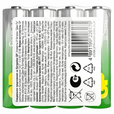 Батарейки Популярное Новинки По размеру скидки Дешевле Дороже По названию А-Я По названию Я-А Код: 455596Батарейки алкалиновые "мизинчиковые" КОМПЛЕКТ 40 шт., CROMEX (КРОМЕКС) Alkaline, ААА (LR03, 24А), в коробке 574,19 ₽Купить Код: 453559Батарейки КОМПЛЕКТ 18 шт., DURACELL Basic ОРИГИНАЛ, AAA (LR03, 24А), алкалиновые, мизинчиковые 2 500 ₽Купить Код: 450613Батарейка GP Alkaline, A76 (G13, LR44), алкалиновая, 1 шт., в блистере (отрывной блок), A76-С10 35,9 ₽Купить Код: 450625Батарейка 1 шт., GP Super G-Tech, Крона (6LR61, 6LF22, 1604A), алкалиновая, блистер, 1604A-5CR1 359,27 ₽Купить Код: 454659Батарейки литиевые DURACELL Lithium ОРИГИНАЛ CR2032 "таблетки, дисковые, кнопочные" КОМПЛЕКТ 2 шт. 408,94 ₽Купить Код: 457378Батарейки алкалиновые "мизинчиковые" КОМПЛЕКТ 4 шт., KODAK Max Super Alkaline, ААА (LR03,15А), блистер 337,63 ₽Купить Код: 457404Батарейки алкалиновые "пальчиковые" КОМПЛЕКТ 10 шт., VARTA ENERGY, АА (LR6, 24А), блистер 678,81 ₽Купить Код: 457405Батарейки алкалиновые "пальчиковые" КОМПЛЕКТ 4 шт., VARTA ENERGY, АА (LR6, 24А), блистер 243,52 ₽Купить Код: 457379Батарейки алкалиновые "мизинчиковые" КОМПЛЕКТ 4 шт., KODAK Xtralife Alkaline, ААА (LR03,15А), блистер 241,16 ₽Купить Код: 452222Батарейка GP Alkaline 192 (G3, LR41), алкалиновая, 1 шт., в блистере (отрывной блок), 192-2CY 35,9 ₽Купить Код: 452223Батарейка GP Alkaline 177 (G4, LR626), алкалиновая, 1 шт., в блистере (отрывной блок), 177-2CY 23,9 ₽Купить Код: 457380Батарейки алкалиновые КОМПЛЕКТ 2 шт., KODAK Max Super Alkaline, C (LR14, 14А), блистер 516,43 ₽Купить Код: 456256Батарейки солевые "пальчиковые" КОМПЛЕКТ 10+1 шт., CROMEX (КРОМЕКС) Super Heavy Duty, AA (R6,15A), блистер 115,69 ₽Купить Код: 457406Батарейки алкалиновые "пальчиковые" КОМПЛЕКТ 24 шт., VARTA ENERGY, АА (LR6, 24А), пластиковый бокс 1 657,94 ₽Купить Код: 457407Батарейки алкалиновые "мизинчиковые" КОМПЛЕКТ 4 шт., VARTA LONGLIFE MAX POWER, ААА (LR03,15А), блистер 566,33 ₽Купить Код: 456257Батарейки солевые "мизинчиковые" КОМПЛЕКТ 10+1 шт., CROMEX (КРОМЕКС) Super Heavy Duty, AAA (R03, 24A), блистер 115,69 ₽Купить Код: 457381Батарейки алкалиновые КОМПЛЕКТ 2 шт., KODAK Max Super Alkaline, D (LR20, 13А), блистер 719,11 ₽Купить Код: 450402Батарейки КОМПЛЕКТ 4 шт., DURACELL Basic ОРИГИНАЛ, AA (LR6, 15А), алкалиновые, пальчиковые 564,58 ₽Купить Код: 454089Батарейки КОМПЛЕКТ 4 шт., GP Super G-Tech, AAA (LR03, 24А), алкалиновые, мизинчиковые, в пленке, 24AR 201,26 ₽Купить Код: 454090Батарейки КОМПЛЕКТ 4 шт., GP Super G-Tech, AA (LR06, 15 А), алкалиновые, пальчиковые, в пленке, 15AA21 201,28 ₽Купить Ничего не найдено Показать ещё Показано 40 из 192 товаров.