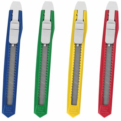 Ножи канцелярские универсальные Популярное Новинки По размеру скидки Дешевле Дороже По названию А-Я По названию Я-А ЛиквидацияКод: 237086Нож канцелярский 9 мм BRAUBERG "Delta", автофиксатор, цвет корпуса голубой, блистер 147,02 ₽Купить Код: 238346Нож канцелярский "Лапки", Cat Paw, 9 мм, автофиксатор, BRAUBERG HOBBY, в дисплее 49,35 ₽Купить Код: 273987Нож канцелярский "Kuromi", 9 мм, фиксатор, цвет корпуса черный, CNT 156,56 ₽Купить Код: 273988Нож канцелярский "Капибара", 9 мм, фиксатор, CNT 156,56 ₽Купить Код: 235472Нож канцелярский 18 мм MAPED (Франция) "Start", фиксатор, корпус черно-красный, европодвес, 0 106,28 ₽Купить Код: 235474Нож канцелярский 9 мм MAPED (Франция) "Start", фиксатор, корпус черно-красный, европодвес 49,43 ₽Купить Код: 231613Нож канцелярский 18 мм ERICH KRAUSE "Standard", автофиксатор, корпус ассорти, подвес 140,5 ₽Купить Код: 238729Нож канцелярский 9 мм ERICH KRAUSE "EasyCut", автофиксатор, корпус ассорти, подвес 94,48 ₽Купить Код: 238226Нож канцелярский 18 мм ОФИСМАГ "Classic", фиксатор, корпус красный, упаковка с европодвесом 98,33 ₽Купить Код: 230484Нож канцелярский 9 мм STAFF "Basic", фиксатор, цвет корпуса ассорти, упаковка с европодвесом 35,78 ₽Купить Код: 230485Нож канцелярский 18 мм STAFF "Basic" фиксатор, цвет корпуса ассорти, упаковка с европодвесом 23,95 ₽Купить Код: 237080Нож канцелярский 9 мм STAFF "Basic Economy", фиксатор, клип, корпус ассорти 10,98 ₽Купить Код: 237081Нож канцелярский 9 мм STAFF "Manager", усиленный, металлический корпус, автофиксатор, клип 58,88 ₽Купить Код: 237082Нож канцелярский 9 мм STAFF "Profit", усиленный, металлические направляющие, автофиксатор, ассорти 92,54 ₽Купить Код: 237083Нож канцелярский 18 мм STAFF "Profit", усиленный, металлические направляющие, автофиксатор, ассорти 59,24 ₽Купить Код: 238179Нож канцелярский 18 мм STAFF EVERYDAY, фиксатор, матовый корпус ассорти, упаковка с подвесом 19,77 ₽Купить Код: 238733Нож универсальный мощный STAFF PRO, автофиксатор с 3 положениями, ABS-пластик 136,49 ₽Купить Код: 238734Нож универсальный мощный STAFF PRO, автофиксатор, ABS-пластик 108,67 ₽Купить Код: 238768Нож канцелярский 18 мм STAFF EVERYDAY, фиксатор, красный матовый корпус, упаковка с подвесом 32,25 ₽Купить Код: 238769Нож канцелярский 18 мм КОМПЛЕКТ "2 шт. + 1 шт. В ПОДАРОК", фиксатор, блистер, STAFF EVERYDAY 124,34 ₽Купить Ничего не найдено Показать ещё Показано 20 из 54 товаров.