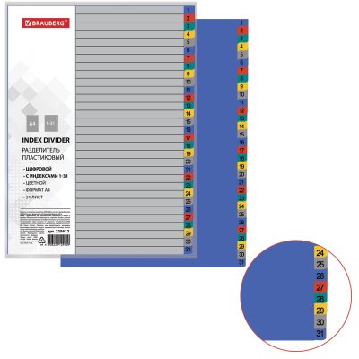 Разделители Популярное Новинки По размеру скидки Дешевле Дороже По названию А-Я По названию Я-А Код: 225611Разделитель пластиковый BRAUBERG, А4, 20 листов, цифровой 1-20, оглавление, цветной, РОССИЯ 509,01 ₽Купить Код: 225612Разделитель пластиковый BRAUBERG, А4, 31 лист, цифровой 1-31, оглавление, цветной, РОССИЯ 759,48 ₽Купить Код: 225613Разделитель пластиковый BRAUBERG, А4, 12 листов, Январь-Декабрь, оглавление, цветной, РОССИЯ 327,83 ₽Купить Код: 225615Разделитель пластиковый BRAUBERG, А4, 20 листов, алфавитный А-Я, оглавление, цветной, РОССИЯ 499,66 ₽Купить Код: 225624Разделитель пластиковый широкий BRAUBERG А4+, 31 лист, цифровой 1-31, оглавление, цветной 780,65 ₽Купить Код: 225625Разделитель пластиковый широкий BRAUBERG, А4+, 12 листов, Январь-Декабрь, оглавление, цветной 346 ₽Купить Код: 225627Разделитель пластиковый широкий BRAUBERG А4+, 20 листов, алфавитный А-Я, оглавление, цветной 451,1 ₽Купить Код: 225628Разделитель пластиковый МАЛЫЙ ФОРМАТ (210x162мм), А5, 5 листов, цифровой 1-5, оглавление, BRAUBERG 69,26 ₽Купить Код: 225632Разделитель пластиковый (полосы 100х240 мм), 12 листов, без индексации, по цветам, BRAUBERG 190,62 ₽Купить Код: 225967Разделители листов (полосы 240х105 мм) картонные, КОМПЛЕКТ 100 штук, ассорти, BRAUBERG 336,6 ₽Купить Код: 225972Разделители листов (трапеция 230х120х60 мм) картонные, КОМПЛЕКТ 100 штук, ассорти, BRAUBERG 336,6 ₽Купить Ничего не найдено Показать ещё Показано 31 из 31 товаров.