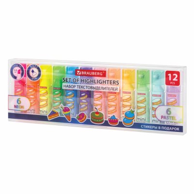 Текстовыделители Популярное Новинки По размеру скидки Дешевле Дороже По названию А-Я По названию Я-А Код: 152510Набор текстовыделителей СТИРАЕМЫХ 4 ЦВЕТА, BRAUBERG "REWIND", двусторонние со стирателем, линия письма 1-4 мм 228,78 ₽Купить Код: 152533Набор текстовыделителей двусторонних (скошенный/кисть) 6 ПАСТЕЛЬНЫХ ЦВЕТОВ, АССОРТИ, BRAUBERG TIP-D, трехгранный корпус 213,69 ₽Купить Код: 152535Текстовыделитель мини с принтами BRAUBERG "NEON", АССОРТИ В ПЛАСТИКОВОЙ БАНКЕ, 1-5 мм 30,91 ₽Купить Код: 152537Набор текстовыделителей мини с принтами, 12 ЦВЕТОВ, BRAUBERG, 6 неоновых цветов + 6 пастельных цветов, линия 1-5 мм 348,48 ₽Купить Код: 152536Текстовыделитель мини с принтами BRAUBERG "PASTEL", АССОРТИ В ПЛАСТИКОВОЙ БАНКЕ, 1-5 мм, 152536 30,91 ₽Купить Код: 152538Набор текстовыделителей мини, 12 ЦВЕТОВ, BRAUBERG "ULTRA", 6 неоновых цветов + 6 пастельных цветов, линия 1-5 мм, 152538 301,44 ₽Купить Код: 152539Набор текстовыделителей 30 ЦВЕТОВ BRAUBERG "SUPER MIX", линия 1-5 мм, мягкий скошенный наконечник 719,36 ₽Купить Код: 152619Набор текстовыделителей 6 ПАСТЕЛЬНЫХ ЦВЕТОВ, кросс-серия МИЛЫЕ КОТЫ, линия 1-5 мм, BRAUBERG 300,43 ₽Купить Код: 152621Набор текстовыделителей 6 НЕОНОВЫХ ЦВЕТОВ, кросс-серия МОНСТРИКИ, линия 1-5 мм, BRAUBERG 300,43 ₽Купить Ничего не найдено Показать ещё Показано 149 из 149 товаров.