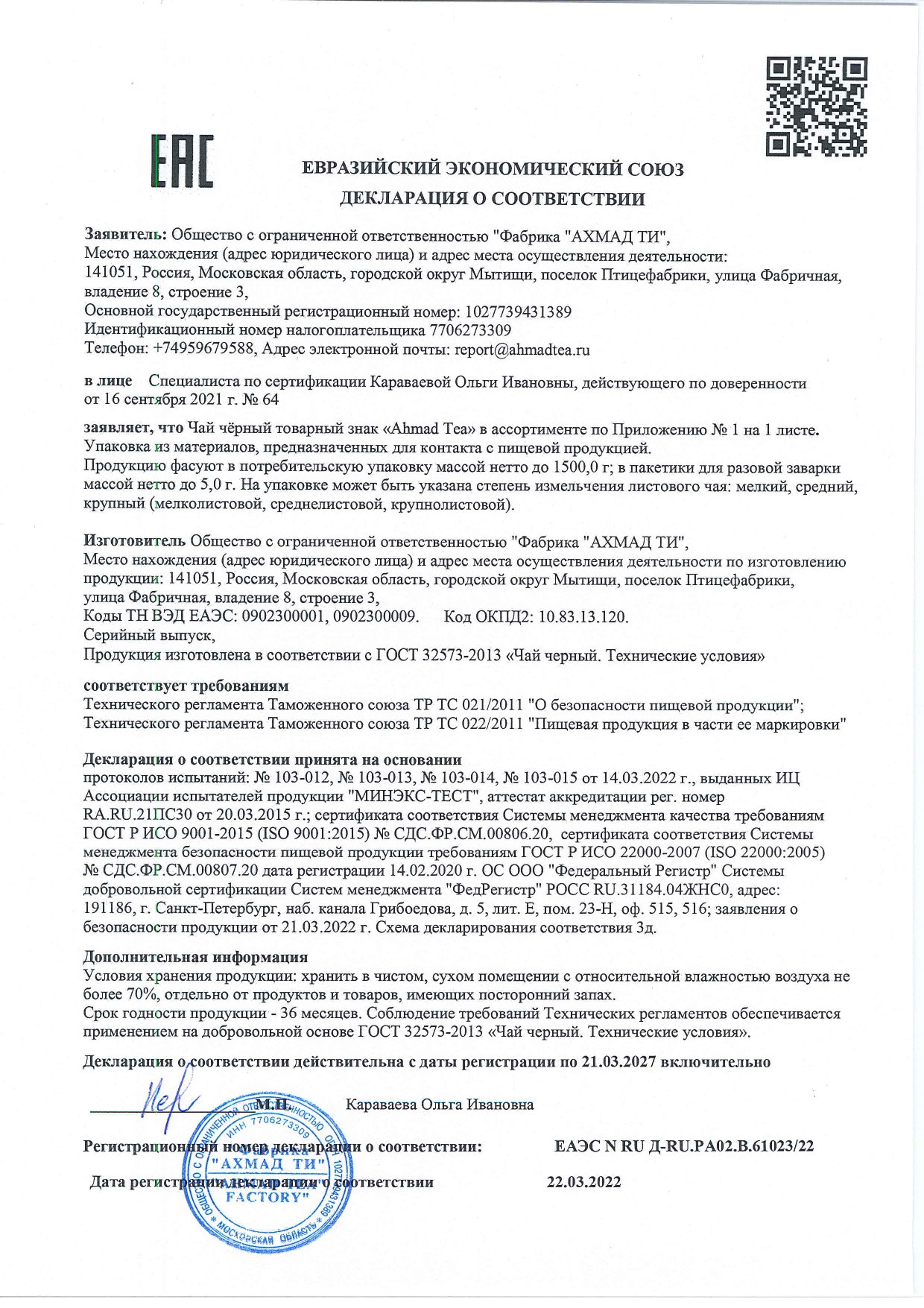 Чай листовой AHMAD "Ceylon Tea OP" черный цейлонский крупнолистовой 200 г Код товара: 620211 559,39 ₽ Купить Производитель:AHMAD Крупнолистовой цейлонский чай, обладает насыщенным, мягким вкусом, ярким оранжевым цветом, богатым чайным ароматом. Хорошо сочетается с лимоном. Стандарт Orange Pekoe характеризуется крупным, однородным листом с высоким содержанием ароматических масел. Производство: РоссияВид чая: черныйСерия: Ceylon TeaАромат: классическийМасса нетто: 200 гУпаковка: картонная упаковкаСрок годности: 24 мес.Фирма-производитель: Ahmad Tea Ltd.Срок годности: 36 месВес: 241 грРазмер упаковки: 6.5 × 14.7 × 10.2 смОбъём: 0.0011 м3Промежуточная упаковка: 12 штТранспортная упаковка: 12 штШтрих-код: 054881012898 Файлы Сертификат-1.jpg Сертификат-2.jpg Сертификат-3.jpg Сертификат-4.jpg