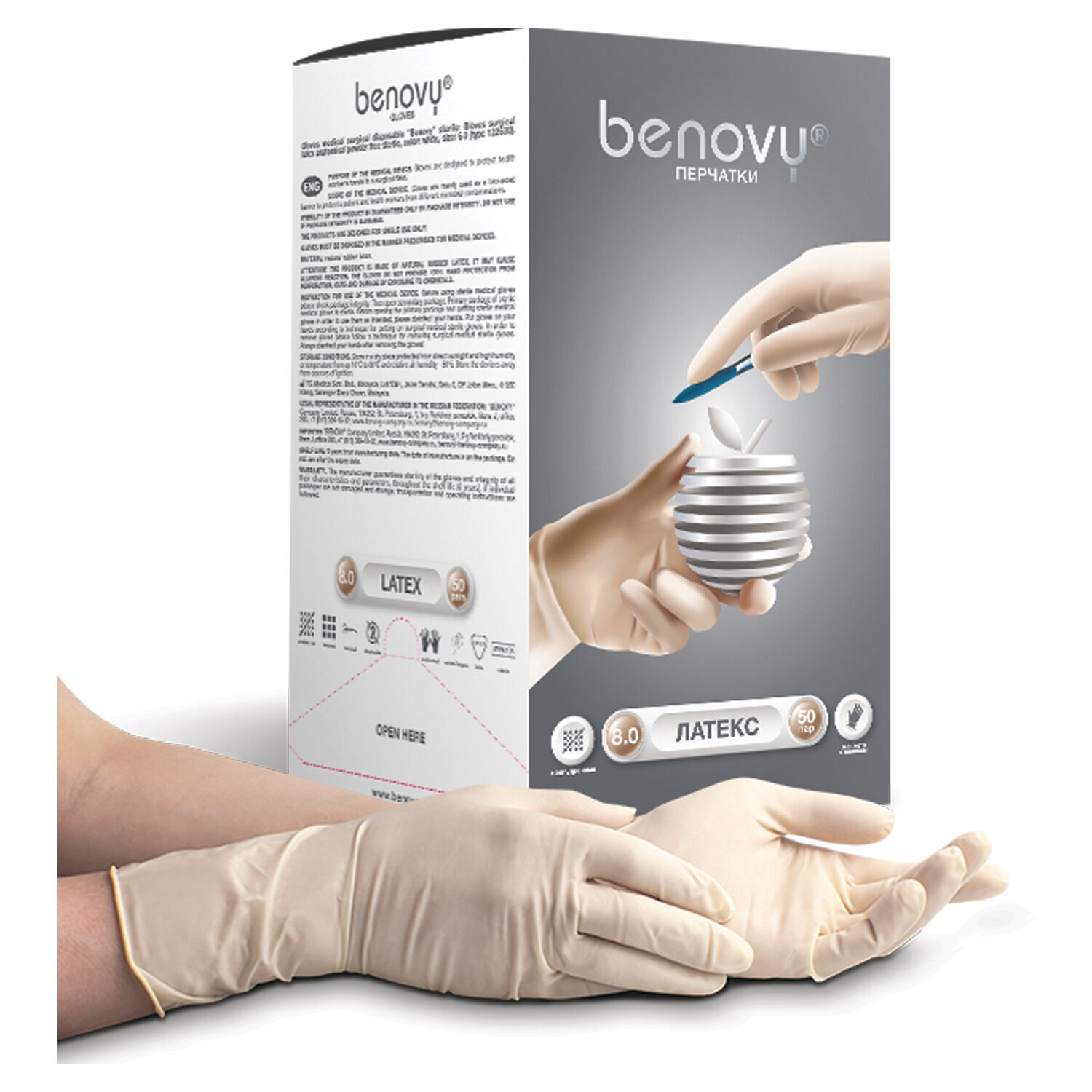Перчатки латексные стерильные хирургические, КОМПЛЕКТ 50 пар (100 шт.) неопудренные BENOVY, ЧЗ, размер L (8) Код товара: 631641 1 687,68 ₽ Купить Производитель:BENOVY Перчатки BENOVY хирургические стерильные используются в качестве защитного барьера на руках медицинского работника в хирургическом поле. Используются как двусторонний барьер для защиты пациента и медперсонала от различных загрязнений микроорганизмами. Перчатки хирургические стерильные предназначены для продолжительных оперативных хирургических вмешательств. Полностью повторяют анатомическое строение кисти и не создают дополнительное напряжение при работе. Мягкая, но прочная основа и форма, повторяющая строение руки, делают перчатку удобной и обеспечивают превосходную чувствительность в области пальцев и ладони. Микротекстурированная поверхность перчаток обеспечивает надёжный захват медицинских инструментов. Прочная манжета с закатанным вовнутрь валиком обеспечивает отличное облегание, при этом не сдавливая запястье. Внутреннее покрытие полимерное. Внимание! Изделие сделано из латекса натурального каучука, который может вызвать аллергическую реакцию. Только для одноразового использования. Стерильность гарантирована при целостности упаковки. Не применять при нарушении целостности упаковки. ИНСТРУКЦИЯ ПО ПРИМЕНЕНИЮ Перед применением перчаток медицинских стерильных необходимо убедиться в целостности упаковки, затем вскрыть внешнюю упаковку. Внутренняя упаковка перчаток медицинских является стерильной. Для того, чтобы открыть внутреннюю упаковку, достать перчатки и использовать их по назначению, необходимо предварительно обработать руки. Наденьте перчатки в соответствии с техникой надевания перчаток медицинских стерильных. Снятие перчаток следует выполнять согласно алгоритму снятия перчаток медицинских хирургических стерильных. Обязательно обработайте руки после снятия перчаток! Производитель гарантирует сохранность всех параметров и характеристик перчаток в течение всего срока годности при условии целостности упаковки, соблюдении условий хранения и эксплуатации в соответствии с инструкцией. ОБЛАСТЬ ПРИМЕНЕНИЯ Хирургия, акушерство и гинекология. Длина – 280 мм. ХРАНЕНИЕ И УТИЛИЗАЦИЯ Хранить в сухом месте, защищенном от воздействия прямых солнечных лучей и высокой влажности, при температуре от +10 до +30 °С. Изделие необходимо хранить вдали от источников возгорания. Сбор, временное хранение и вывоз отходов следует выполнять в соответствии со схемой обращения с медицинскими отходами, принятой в данной организации, осуществляющей медицинскую и/или фармацевтическую деятельность.Производство: КитайСтерильные: даМатериал: латексРазмер перчаток: 8-9 (L)Серия: ХирургическиеТип: хирургическиеНеопудренные: даТип поверхности: текстурированныеПовышенная чувствительность: даФорма: анатомическаяОсобенности: удлиненная манжетаСоответствует требованиям ГОСТа: Р 52238-2004Количество в комплекте: 50 парШирина ладони: 95 ммЦвет: белыйВид упаковки: картонная коробкаВес: 1,47 кгРазмер упаковки: 24.5 × 13.1 × 13.5 смОбъём: 0.005 м3Промежуточная упаковка: 8 штТранспортная упаковка: 8 штШтрих-код: 4660286033787 Файлы Сертификат-1.jpg Сертификат-2.jpg Сертификат-3.jpg Сертификат-4.jpg Сертификат-5.jpg Сертификат-6.jpg Сертификат-7.jpg Сертификат-8.jpg Сертификат-9.jpg Сертификат-10.jpg Сертификат-11.jpg Сертифи