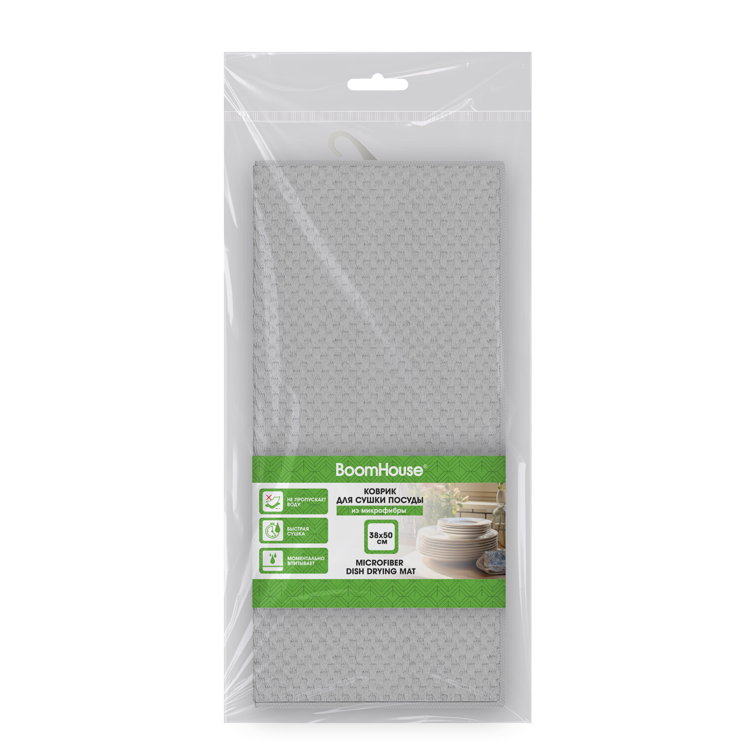 Коврик для сушки посуды из микрофибры, 38х50 см, "КЛЕТКА", сетка, СЕРЫЙ, 300 г/м2, BOOMHOUSE (БУМХАУС) Код товара: 701145 156,3 ₽ Купить Производитель:BoomHouse Коврик для сушки посуды BOOMHOUSE из микрофибры эффективно впитывает влагу и быстро сохнет, обеспечивая чистоту и порядок на кухне. Стильный и гигиеничный аксессуар идеально подойдёт для тех, кто заботится о собственном комфорте! Коврик для сушки посуды BOOMHOUSE – это современное гигиеничное решение для быстрой сушки любой посуды. Благодаря микрофибре и наличию внутренней прослойки из поролона коврик для сушки посуды BOOMHOUSE моментально впитывает всю влагу, гарантируя, что поверхность под ним и вокруг раковины останется идеально сухой, что предотвращает появление луж и размножение бактерий. Коврик быстро сохнет и прост в уходе. Внешние стороны коврика изготовлены из микрофибры с суммарной плотностью 300 г/м2. Одна из сторон имеет плетение в виде клетки, а другая представляет собой сетку для ускоренной сушки. Края обработаны оверлоком, что гарантирует долговечность и отсутствие распускания даже после многократных стирок. Толщина – 5 мм. Размер коврика (38x50 см) оптимален для размещения на ограниченном пространстве, но при этом позволяет сушить сразу несколько тарелок или крупную кухонную утварь. Форма коврика – прямоугольная. Каждый коврик BOOMHOUSE поставляется в индивидуальном пакете, а также имеет удобный пластиковый крючок для вывешивания на стойку.Производство: КитайТип коврика: ВлаговпитывающийНазначение: Для сушки посудыМатериал: Микрофибра, поролонРазмер: 38х50 смТолщина: 5 ммТип рисунка: плетение "Клетка"Цвет: серыйВес: 114 грРазмер упаковки: 2.1 × 39 × 17.4 смОбъём: 0.0016 м3Промежуточная упаковка: 48 штТранспортная упаковка: 48 штШтрих-код: 4606224506814 Файлы Сертификат-1.jpg Сертификат-2.jpg