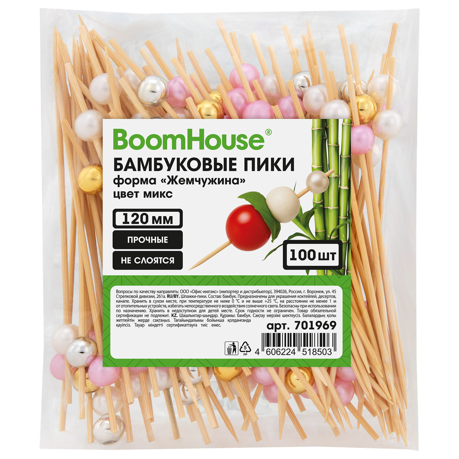 Шпажки-пики для канапе бамбуковые форма "Жемчужина" цвет микс 12 см, 100 шт., BOOMHOUSE (БУМХАУС) Код товара: 701969 201,88 ₽ Купить Производитель:BoomHouse Шпажки-пики форма "Жемчужина цвет микс" BOOMHOUSE отлично подходят для украшения закусок, создания мини-бутербродов и канапе на банкетах и фуршетах. Шпажки-пики изготовлены из бамбука. Безопасны при использовании, так как не выделяют вредных веществ и не меняют вкус продуктов. Изделия имеют наконечник в форме жемчужины. Длина - 12 см. В комплекте 100 шт. Упакованы в пакет.Производство: КитайТип товара: пики для канапеДлина: 120 ммДиаметр: 3 ммМатериал: бамбукКоличество в упаковке: 100 шт.Серия: Жемчужина цвет миксВес: 90 грРазмер упаковки: 3.4 × 13.8 × 12 смОбъём: 0.0005 м3Промежуточная упаковка: 100 штТранспортная упаковка: 100 штШтрих-код: 4606224518503 Файлы