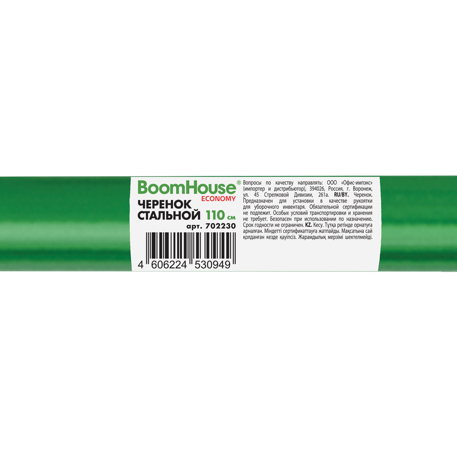Черенок рукоятка для инвентаря 110 см, еврорезьба, металлопластик 0,25 мм, зеленый, BOOMHOUSE (БУМХАУС) ECONOMY Код товара: 702230 174,9 ₽ Купить Производитель:BoomHouse Черенок-рукоятка для швабры BOOMHOUSE ECONOMY предназначена для крепления к флаундерам, щеткам и другим инструментам для проведения уборки. Используется в комплекте с держателем и насадкой. Подходит к техническим щеткам, а также к любым другим типам профессионального инвентаря с еврорезьбой (щеткам для пола, швабрам, держателями, метлам). Черенок имеет отверстие для подвешивания на пластиковом колпачке сверху для удобного хранения. Длина черенка из металлопластика – 110 см. Диаметр – 2,2 см.Производство: КитайТип товара: черенок с еврорезьбойТип крепления: еврорезьба 1,6 смДлина: 110 смДиаметр черенка: 22 ммМатериал: металлопластикЦвет: зеленыйВес: 135 грРазмер упаковки: 2.5 × 110 × 2.5 смОбъём: 0.0008 м3Промежуточная упаковка: 24 штТранспортная упаковка: 24 штШтрих-код: 4606224530949 Файлы Сертификат-1.jpg Сертификат-2.jpg Сертификат-3.jpg Сертификат-4.jpg Сертификат-5.jpg Сертификат-6.jpg Сертификат-7.jpg Сертификат-8.jpg Сертификат-9.jpg Сертификат-10.jpg Сертификат-11.jpg Сертификат-12.jpg Сертификат-13.jpg Сертификат-14.jpg Сертификат-15.jpg Сертификат-16.jpg Сертификат-17.jpg Сертификат-18.jpg Сертификат-19.jpg Сертификат-20.jpg Сертификат-21.jpg Сертификат-22.jpg Сертификат-23.jpg Сертификат-24.jpg Сертификат-25.jpg Сертификат-26.jpg