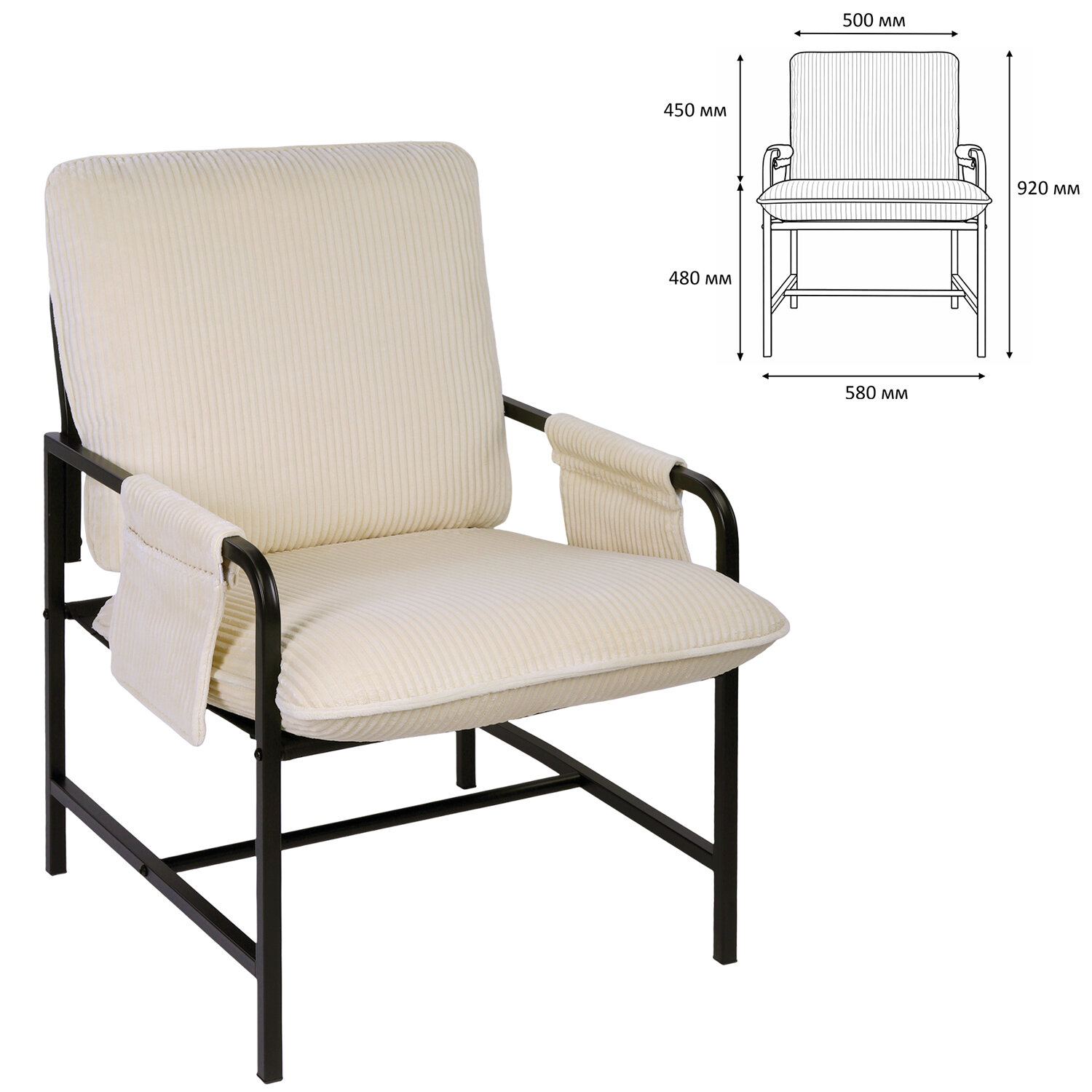 Кресло BRABIX "Gentle LC-300", ЛОФТ, пружинный блок, ткань велсофт (плюш), молочное Код товара: 533144 8 280,39 ₽ Купить Производитель:BRABIX Кресло BRABIX LC-300 идеально подходит для домашней гостиной, зоны ожидания, лаунж-зоны и других помещений. Мягкая ткань добавит особого уюта, а прекрасная эргономика подарит комфорт и чувство расслабленности. Обивка кресла выполнена из мягкой рельефной ткани велсофт, которая не выцветает, с нее легко выводятся пятна. Обивку спинки можно снять и постирать в стиральной машине. Одна из тканевых накладок на подлокотники имеет карман для хранения мелочей. Набивка спинки выполнена из мягкого холлофайбера с добавлением поролона, из-за чего спинка отлично держит форму, но при этом остается мягкой. Набивка сиденья выполнена из поролона. В него также встроен пружинный блок, благодаря которому сиденье не потеряет упругость и долгое время сохранит свою первоначальную форму. Металлический каркас кресла имеет толщину 1,2 мм, что обеспечивает его устойчивость и прочность.Производство: КитайТип товара: домашнее креслоМаксимальная нагрузка: 100 кгМатериал обивки: велсофтЦвет обивки: кремовыйМатериал каркаса: стальЦвет каркаса: черныйНабивка: холлофайбер/поролонПружинный блок: даВысота кресла: 920 ммШирина кресла: 580 ммГлубина кресла: 710 ммФункциональная высота спинки: 450 ммФункциональная глубина сиденья: 500 ммФункциональная ширина сиденья: 540 ммВысота до сиденья: 480 ммСерия: GentleПоставляется в разобранном виде: даВес: 10,39 кгРазмер упаковки: 16.4 × 62.2 × 57.7 смОбъём: 0.0589 м3Промежуточная упаковка: 1 штТранспортная упаковка: 1 штШтрих-код: 4606224492520 Сертификат-1.jpg Сертификат-2.jpg