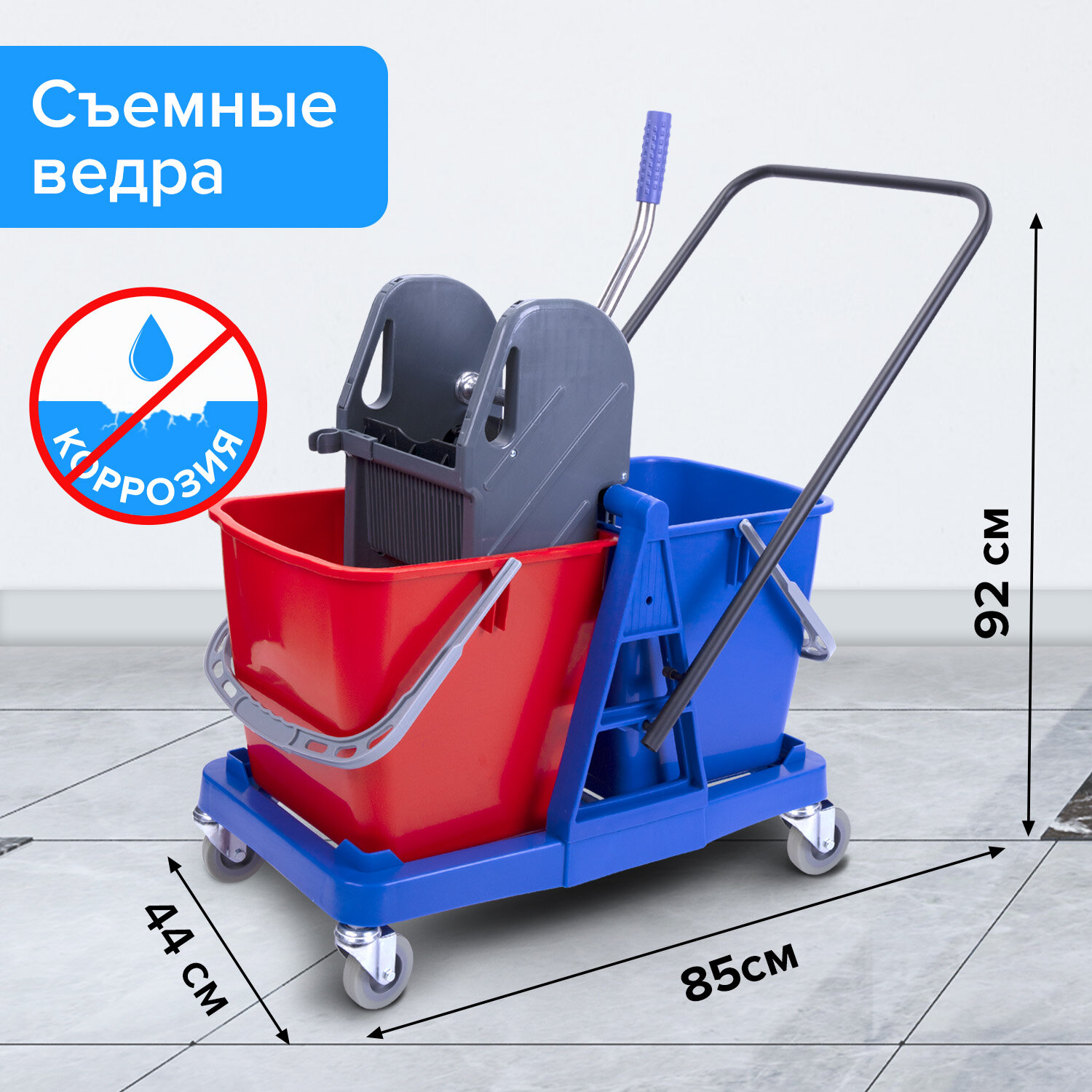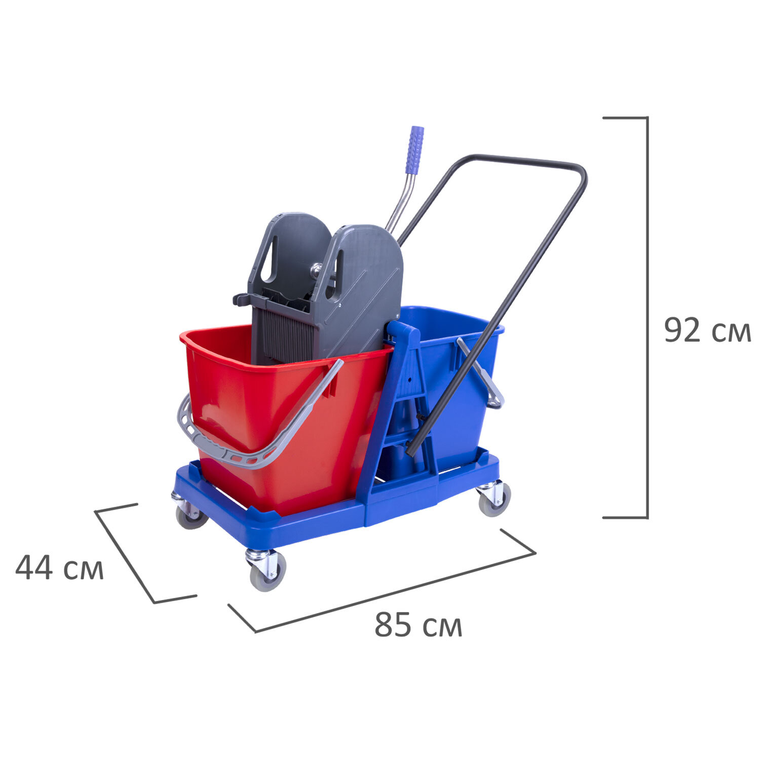 Тележка уборочная BRABIX, 2 съемных ведра 23 л, механический отжим, пластиковый каркас Код товара: 606659 13 263,43 ₽ Купить Производитель:BRABIX Уборочная тележка BRABIX предназначена для проведения влажной уборки в офисных и производственных помещениях с большой площадью. Представляет собой пластиковый каркас с установленными на него механическим отжимом для петельных тряпок и МОПов и 2 съемными ведрами с пластиковыми ручками по 23 л (рекомендованный объем каждого ведра - 20 л). База и инвентарь изготовлена из качественного пластика. Тележка выполнена в трехцветном исполнении: красный, синий и серый. Колеса позволяют перемещаться в произвольном направлении. Габариты - 92х44х85 см. Вес - 8 кг. Комплектация: отжим, 2 лотка, транспортная ручка, каркас.Производство: КитайКоличество ведер: 2 шт.Объем ведер: 23Тип системы отжима: механическийКомплектация: 1 поддон, 2 лотка, транспортная ручкаЦвет: красный, серый, синийМатериал базы: пластикТип товара: тележка уборочнаяДлина базы: 85 смШирина базы: 44 смВысота базы: 92 смМатериал инвентаря: металл, пластикВес: 8 кгРазмер упаковки: 45.1 × 73.7 × 44.7 смОбъём: 0.1486 м3Промежуточная упаковка: 1 штТранспортная упаковка: 1 штШтрих-код: 4606224275741 Файлы Сертификат-1.jpg Сертификат-2.jpg Сертификат-3.jpg Сертификат-4.jpg