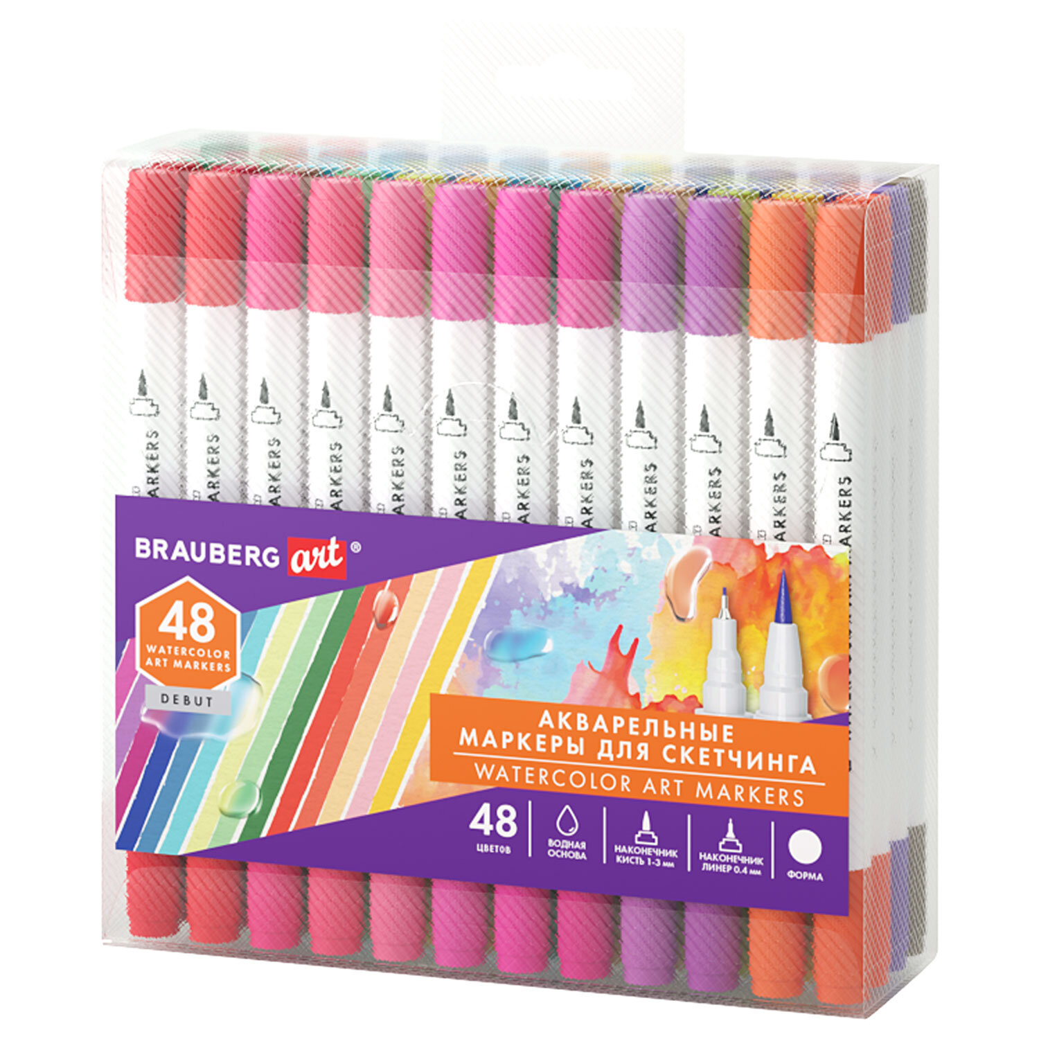 Маркеры акварельные для скетчинга двусторонние (кисть и линер) 48 цветов, BRAUBERG ART Код товара: 152667 697,28 ₽ Купить Производитель:BRAUBERG ART Набор акварельных маркеров для скетчинга BRAUBERG ART "DEBUT" – это возможность создавать шедевры каждый день. Набор двусторонних акварельных маркеров для скетчинга с круглой формой корпуса из пластика. Форма наконечника – кисть и линер. Толщина линии письма – 1-3 мм у наконечника кисти, 0,4 мм у наконечника линера. Благодаря водной основе чернила быстро размываются водой и создают эффект акварели. Износостойкий фетровый наконечник устойчив к повреждениям и обеспечивает экономный расход чернил. Изделие не перезаправляется. Плотно закрывается колпачком, что предотвращает высыхание наконечника и чернил. В наборе 48 цветов. Цвет колпачка соответствует цвету чернил. Маркеры акварельные для скетчинга пригодятся школьникам, студентам, участникам мастер-классов, ученикам художественных школ, студий и училищ, живописных мастерских. Эти маркеры используют любители для хобби и профессионалы, которые стремятся достичь такой же славы как Пабло Пикассо (Pablo Picasso), Казимир Малевич, Марк Шагал, Клод Моне (Claude Monet), Рембрандт (Rembrandt), Сальвадор Дали (Salvador Dali), Энди Уорхол (Andy Warhol), Андрей Рублев, Фрида Кало (Frida Kahlo), Винсент Ван Гог (Vincent van Gogh), Тициан (Tician), Анри Матисс (Henri Matisse), Леонардо да Винчи (Leonardo da Vinci) и другие популярные художники.Производство: КитайЦвет чернил: ассортиСерия: DEBUT Watercolor MarkerКоличество в наборе: 48 шт.Минимальная толщина линии письма: 0.4 ммМаксимальная толщина линии письма: 3 ммДвусторонний: даФорма корпуса: круглаяДиаметр корпуса: 12 ммМатериал корпуса: пластикОснова чернил: воднаяУпаковка: ПВХ-бокс с европодвесомСрок годности: 48 месВес: 596 грРазмер упаковки: 5.2 × 16.7 × 16.1 смОбъём: 0.0019 м3Промежуточная упаковка: 10 штТранспортная упаковка: 40 штШтрих-код: 4606224519159 Файлы