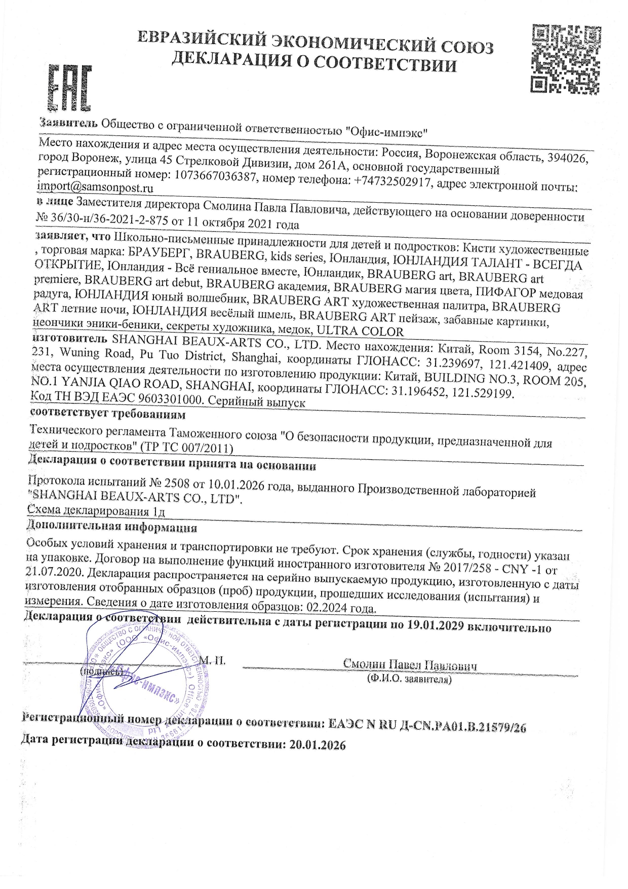 Кисть художественная проф. BRAUBERG ART CLASSIC, синтетика жесткая, плоская, № 4, длинная ручка Код товара: 200664 88,99 ₽ Купить Производитель:BRAUBERG ART Художественная профессиональная синтетическая кисть BRAUBERG ART "CLASSIC" № 4 предназначена для работ густыми красками: гуашь, акрил, масло, темпера. Идеальна для водорастворимых масляных красок. Изготовлена с применением высококачественной южно-корейской синтетики. Синтетика превосходит щетину в легкости очистки и износостойкости, а упругость ворса и прекрасные впитывающие свойства пучка обеспечивают идеальное сохранение формы мазка. Длинная ручка из древесины покрыта лаком, что защищает ее от воздействия красок и влаги. Форма пучка - плоская, номер кисти соотвествует реальной ширине пучка в миллиметрах. Упаковка - пакет с европодвесом и картонной подложкой.Производство: КитайНомер кисти: 4Тип кисти: плоскаяСерия: CLASSIC XРучка: длиннаяМатериал: жесткая синтетикаДиаметр (ширина) кисти: 4 ммВыход волоса: 12 ммУпаковка: пакет с европодвесом и картонной подложкойВес: 15 грРазмер упаковки: 0.6 × 33.3 × 5.3 смОбъём: 0.0001 м3Промежуточная упаковка: 5 штТранспортная упаковка: 500 штШтрих-код: 4606224178950 Сертификат-1.jpg Сертификат-2.jpg Сертификат-3.jpg