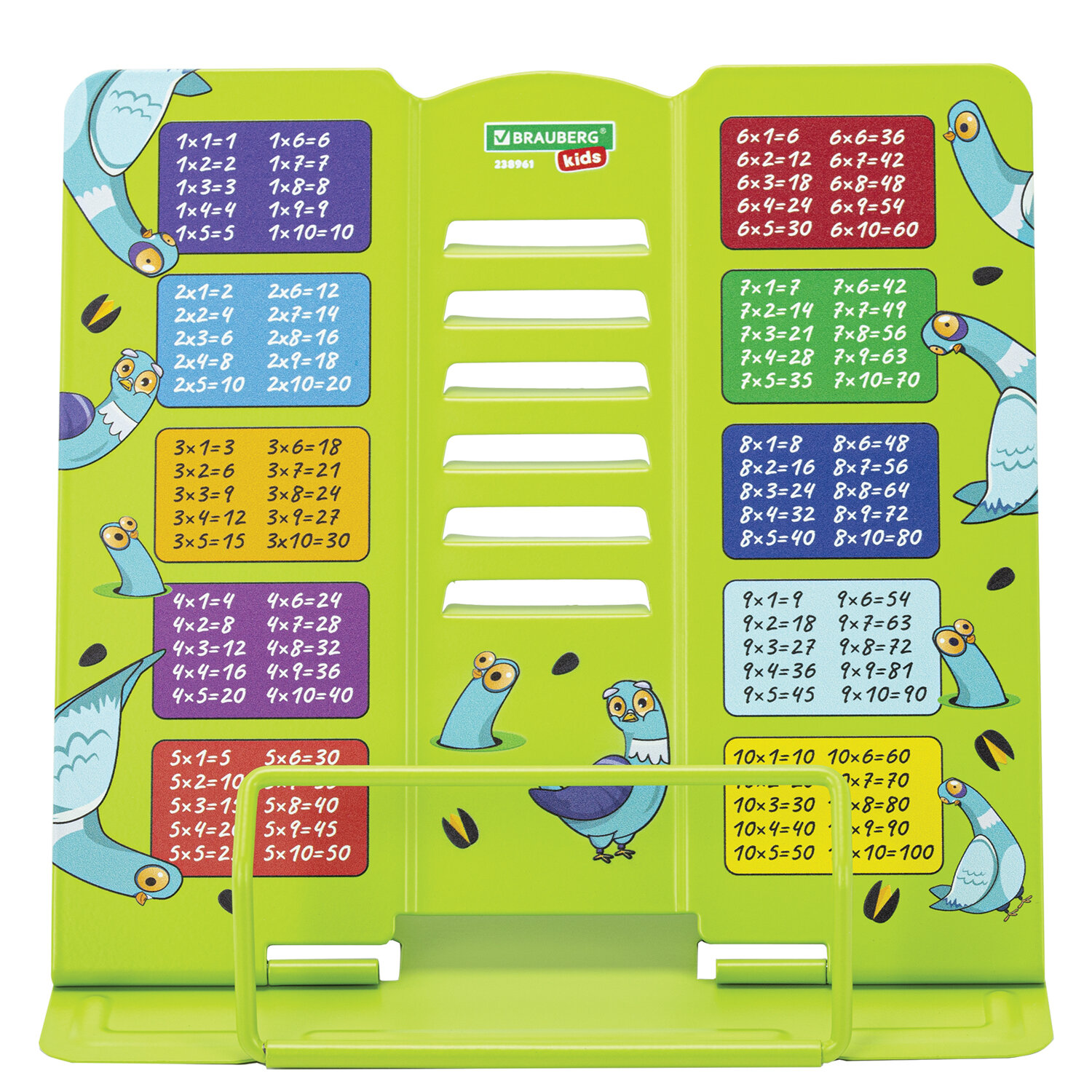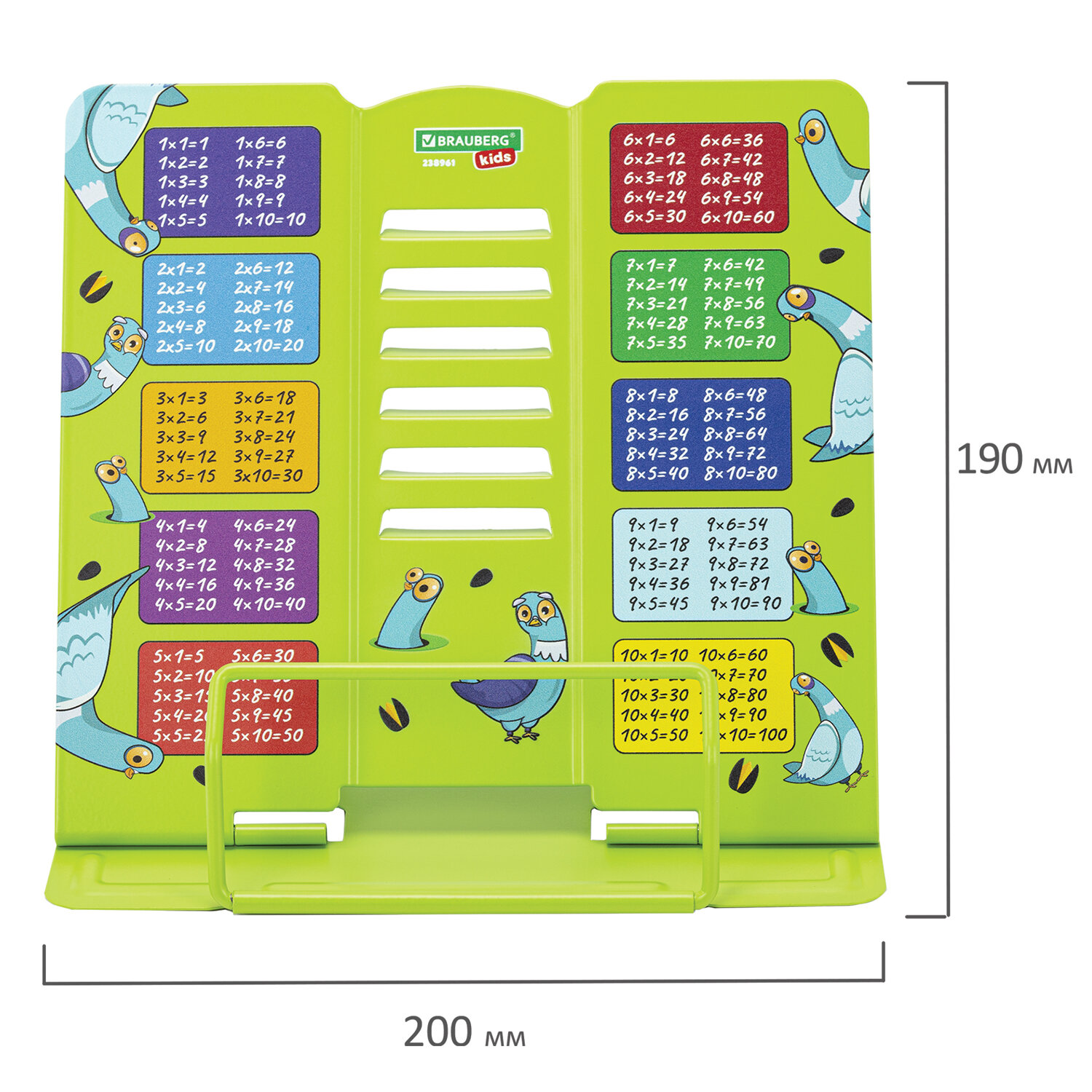 Подставка для книг и учебников большая BRAUBERG KIDS "Funny Pigeons" с таблицей умножения, регулируемый угол наклона, металлическая Код товара: 238961 446,6 ₽ Купить Производитель:BRAUBERG KIDS Подставка для книг и учебников BRAUBERG KIDS станет незаменимым помощником для школьников и любителей чтения. Использование подставки для книг способствует формированию правильной осанки. Яркий дизайн станет изюминкой в любом интерьере. Подставка полностью выполнена из металла, поэтому отлично подойдет для надежной фиксации тяжелых и объемных учебных материалов и книг. Оригинальный дизайн понравится школьнику любого возраста, таблица умножения будет полезна в учебе. Регулируемый угол наклона обеспечивает удобство при работе с текстом, облегчает чтение и выполнение домашней работы. На нижней части подставки предусмотрены противоскользящие элементы. Размер подставки – 200х190х155 мм. Цвет – зеленый. Подставка упакована в прозрачный пакет с картонным европодвесом.Производство: КитайНазначение: для книг и учебниковРегулируемый угол наклона: даДержатель для страниц: нижнийСерия: Smart ShelfМатериал корпуса: металлВысота: 19 смШирина: 20 смЦвет: зеленыйДизайн: Funny PigeonsУпаковка: пакет с картонным европодвесомВес: 467 грРазмер упаковки: 1.7 × 22.5 × 23.6 смОбъём: 0.001 м3Промежуточная упаковка: 24 штТранспортная упаковка: 24 штШтрих-код: 4606224508405 Файлы Сертификат-1.jpg Сертификат-2.jpg Сертификат-3.jpg Сертификат-4.jpg Сертификат-5.jpg Сертификат-6.jpg Сертификат-7.jpg Сертификат-8.jpg Сертификат-9.jpg Сертификат-10.jpg Сертификат-11.jpg Сертификат-12.jpg Сертификат-13.jpg Сертификат-14.jpg Сертификат-15.jpg Сертификат-16.jpg Сертификат-17.jpg Сертификат-18.jpg Сертификат-19.jpg Сертификат-20.jpg Сертификат-21.jpg Сертификат-22.jpg Сертификат-23.jpg Сертификат-24.jpg Сертификат-25.jpg Сертификат-26.jpg