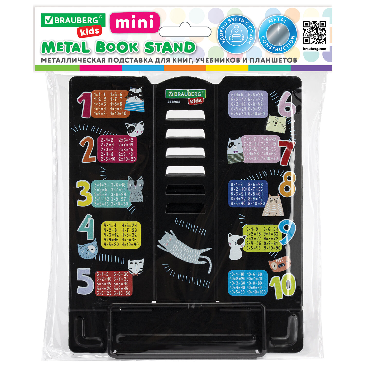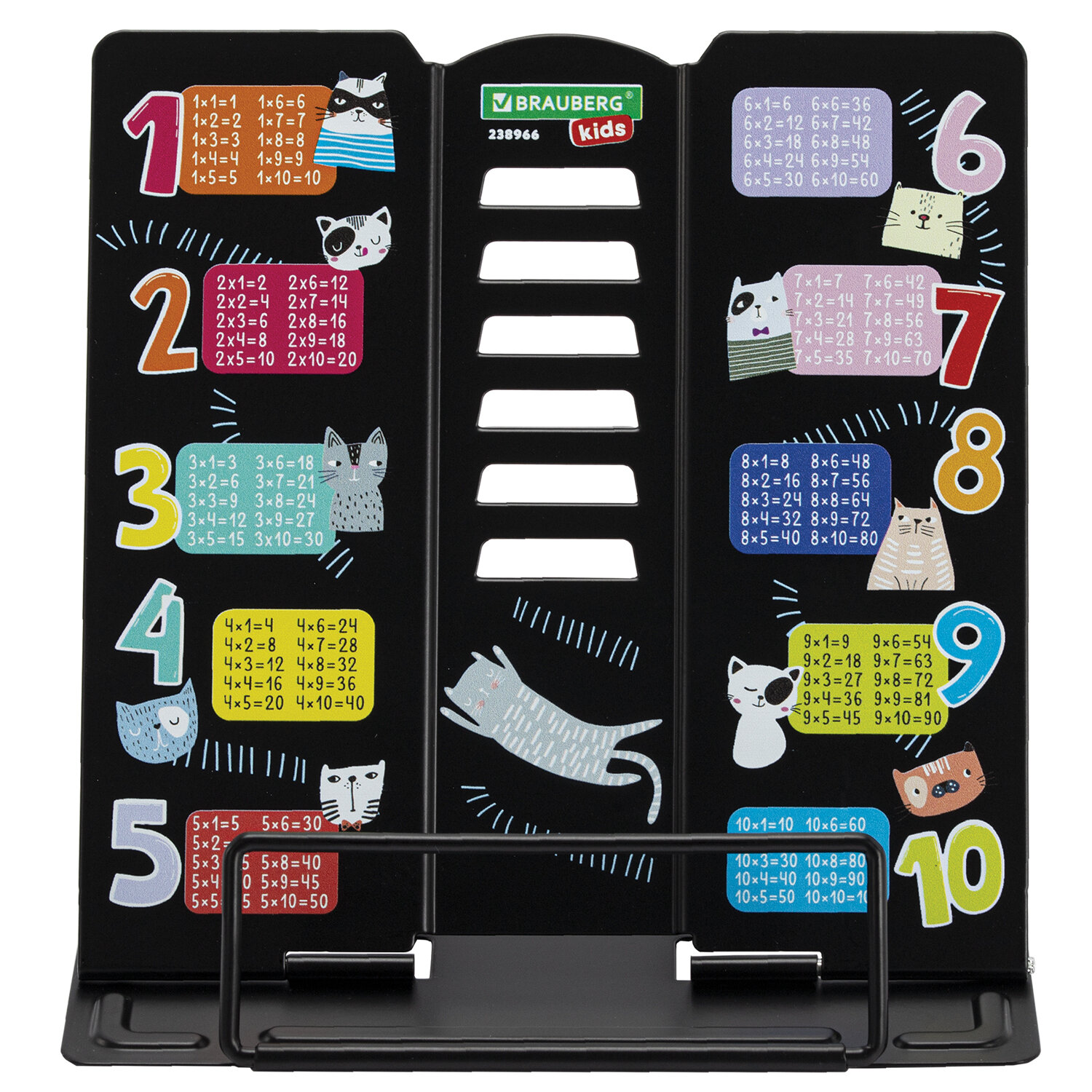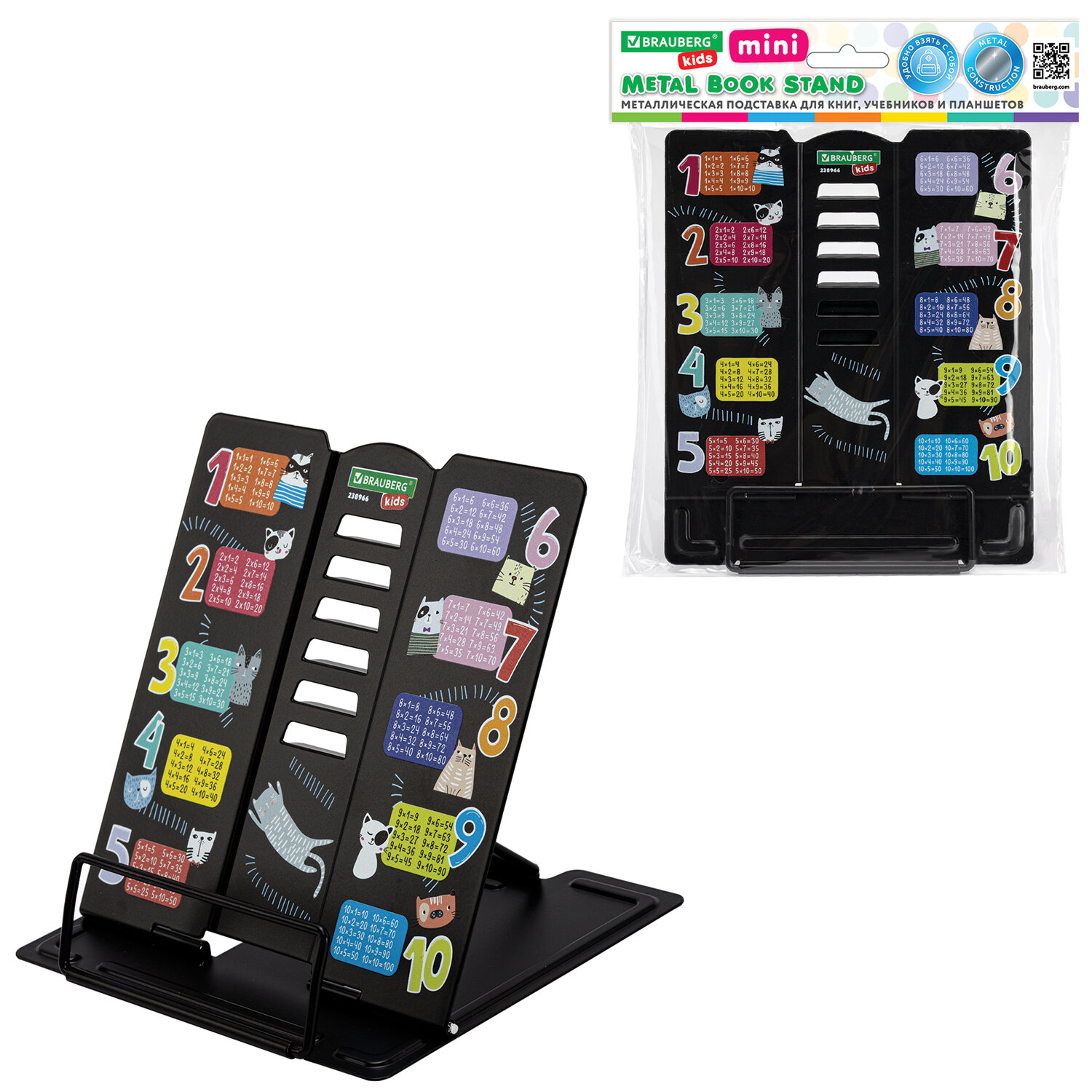 Подставка для книг BRAUBERG KIDS mini, "Cats", с таблицей умножения, регулируемый угол наклона, металлическая Код товара: 238966 396,07 ₽ Купить Производитель:BRAUBERG KIDS Подставка для книг и учебников BRAUBERG KIDS mini станет незаменимым помощником для школьников и любителей чтения. Использование подставки для книг способствует формированию правильной осанки. Яркий дизайн станет изюминкой в любом интерьере. Подставка полностью выполнена из металла, поэтому отлично подойдет для надежной фиксации тяжелых и объемных учебных материалов и книг. Оригинальный дизайн понравится школьнику любого возраста, таблица умножения будет полезна в учебе. Регулируемый угол наклона обеспечивает удобство при работе с текстом, облегчает чтение и выполнение домашней работы. На нижней части подставки предусмотрены противоскользящие элементы. Размер подставки – 150х150х130 мм. Цвет – черный. Подставка упакована в прозрачный пакет с картонным европодвесом.Производство: КитайНазначение: для книг и учебниковРегулируемый угол наклона: даДержатель для страниц: нижнийСерия: Smart Shelf miniМатериал корпуса: металлВысота: 15 смШирина: 15 смЦвет: черныйДизайн: CatsУпаковка: пакет с картонным европодвесомВес: 250 грРазмер упаковки: 1.5 × 18.2 × 17.9 смОбъём: 0.0006 м3Промежуточная упаковка: 48 штТранспортная упаковка: 48 штШтрих-код: 4606224508450 Файлы Сертификат-1.jpg Сертификат-2.jpg Сертификат-3.jpg Сертификат-4.jpg Сертификат-5.jpg Сертификат-6.jpg Сертификат-7.jpg Сертификат-8.jpg Сертификат-9.jpg Сертификат-10.jpg Сертификат-11.jpg Сертификат-12.jpg Сертификат-13.jpg Сертификат-14.jpg Сертификат-15.jpg Сертификат-16.jpg Сертификат-17.jpg Сертификат-18.jpg Сертификат-19.jpg Сертификат-20.jpg Сертификат-21.jpg Сертификат-22.jpg Сертификат-23.jpg Сертификат-24.jpg Сертификат-25.jpg Сертификат-26.jpg