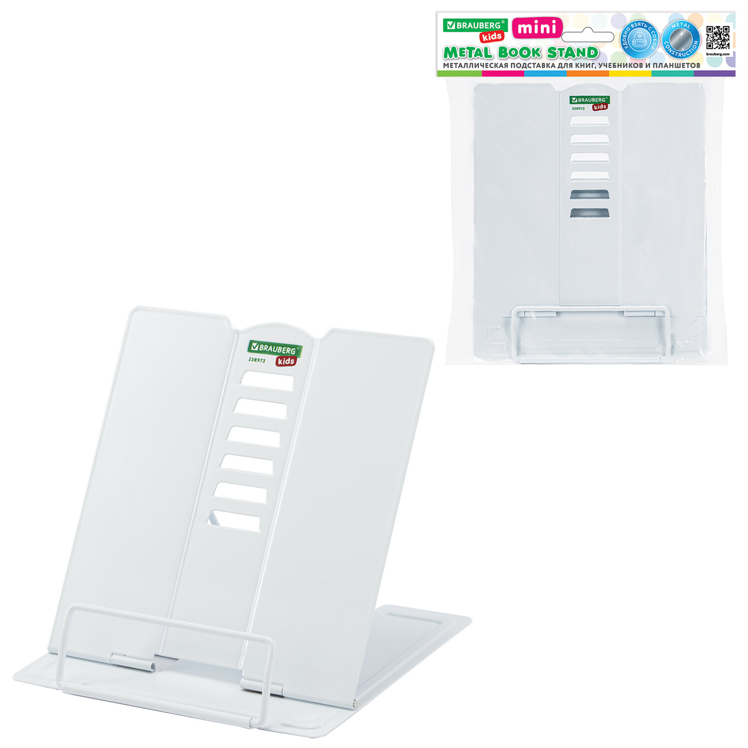 Подставка для книг и учебников BRAUBERG KIDS mini "White", регулируемый угол наклона, металлическая Код товара: 238973 396,07 ₽ Купить Производитель:BRAUBERG KIDS Подставка для книг и учебников BRAUBERG KIDS mini станет незаменимым помощником для школьников и любителей чтения. Использование подставки для книг способствует формированию правильной осанки. Подставка полностью выполнена из металла, поэтому отлично подойдет для надежной фиксации тяжелых и объемных учебных материалов и книг. Лаконичный дизайн органично впишется в любой интерьер. Регулируемый угол наклона обеспечивает удобство при работе с текстом, облегчает чтение и выполнение домашней работы. На нижней части подставки предусмотрены противоскользящие элементы. Размер подставки – 150х150х130 мм. Цвет – белый. Подставка упакована в полиэтиленовый пакет с картонным европодвесом.Производство: КитайНазначение: для книг и учебниковРегулируемый угол наклона: даДержатель для страниц: нижнийСерия: Smart Shelf miniМатериал корпуса: металлВысота: 15 смШирина: 15 смЦвет: белыйДизайн: WhiteУпаковка: пакет с картонным европодвесомВес: 252 грРазмер упаковки: 1.7 × 18.2 × 18.4 смОбъём: 0.0006 м3Промежуточная упаковка: 48 штТранспортная упаковка: 48 штШтрих-код: 4606224508528 Файлы Сертификат-1.jpg Сертификат-2.jpg Сертификат-3.jpg Сертификат-4.jpg Сертификат-5.jpg Сертификат-6.jpg Сертификат-7.jpg Сертификат-8.jpg Сертификат-9.jpg Сертификат-10.jpg Сертификат-11.jpg Сертификат-12.jpg Сертификат-13.jpg Сертификат-14.jpg Сертификат-15.jpg Сертификат-16.jpg Сертификат-17.jpg Сертификат-18.jpg Сертификат-19.jpg Сертификат-20.jpg Сертификат-21.jpg Сертификат-22.jpg Сертификат-23.jpg Сертификат-24.jpg Сертификат-25.jpg Сертификат-26.jpg