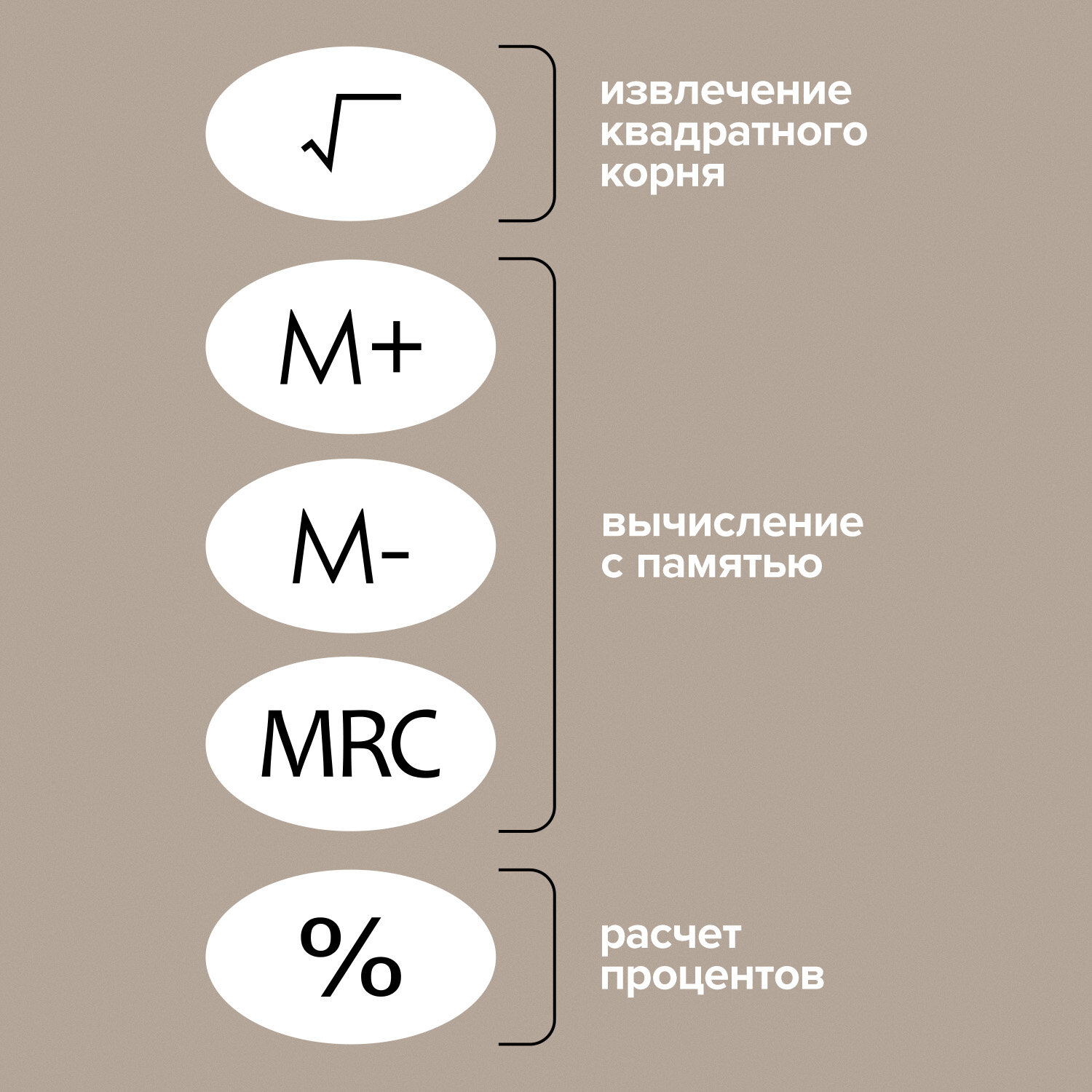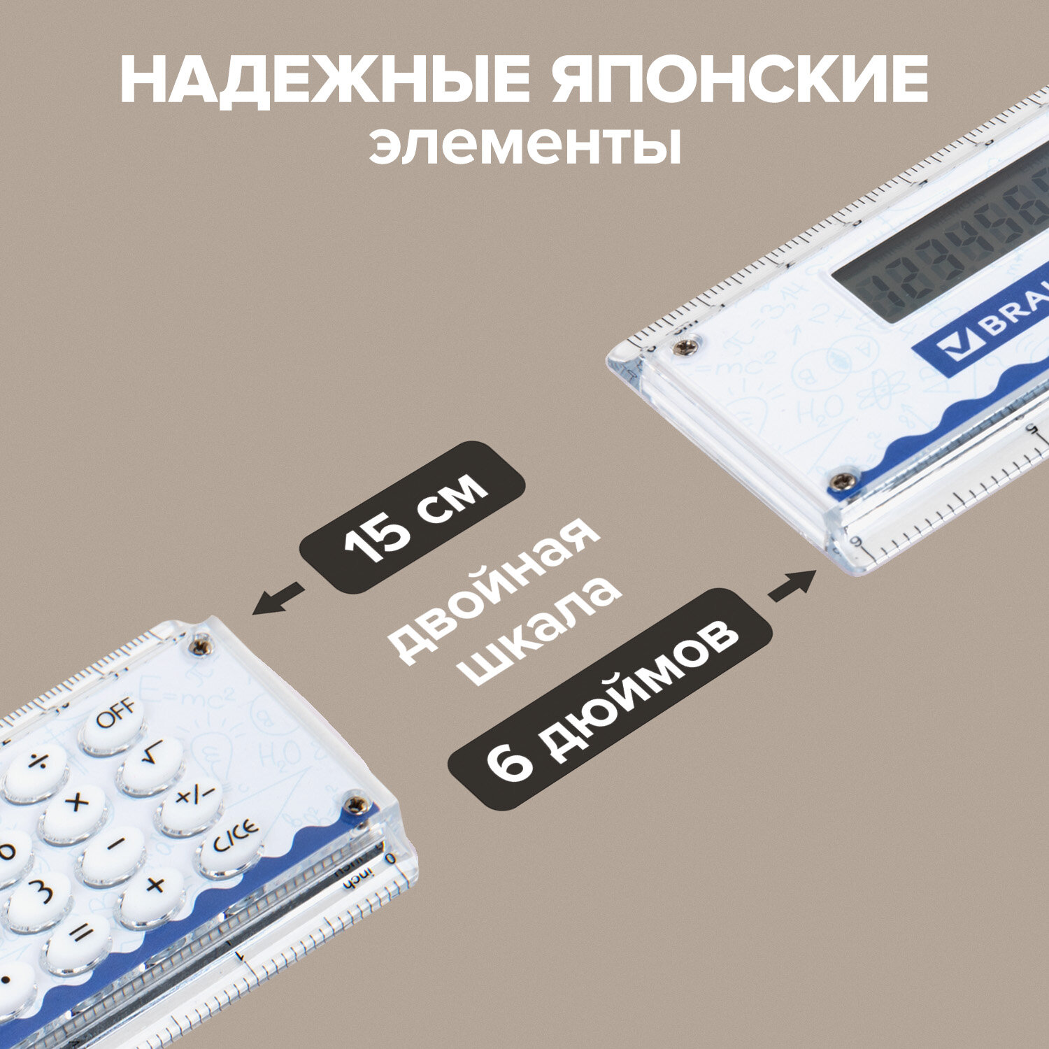 Калькулятор с линейкой 15 см, BRAUBERG DC-107 (53x158 мм), 8 разрядов, 271727 Код товара: 271727 348,81 ₽ Купить Производитель:BRAUBERG Линейка с калькулятором BRAUBERG DC-107 – это компактный и удобный инструмент, предназначенный для выполнения вычислительных, чертежных и измерительных работ в школе, дома и в офисе. Стильный минималистичный дизайн отлично впишется в любой интерьер. Современный и незаменимый девайс 2 в 1: линейка со шкалой 15 см и калькулятор. Размер – 53х158х9 мм. Упаковка – блистер с европодвесом. Гарантия – 10 лет. 8-разрядный калькулятор производит все основные арифметические действия, в том числе вычисление с памятью, вычисление с процентами, возведение в степень и извлечение квадратного корня. Вводимые данные и результаты вычислений хорошо видны на жидкокристаллическом дисплее благодаря надежному японскому коннектору. Прорезиненные антискользящие кнопки гарантируют комфортное использование и долгий срок службы изделия. Работает от сменной батарейки L1131F (AG10). Размер дисплея – 40х19 мм. Цвет – серый. Имеет двойную градацию (сантиметр и дюйм). Линейка обладает четкой разметкой, что делает ее удобной в использовании. Цвет – прозрачный.Производство: КитайРазрядность дисплея: 8Серия: DC-107Тип размера: компактныйТип применения: универсальныйСтиль: классическийФункционал: возведение в степень, вычисление с памятью, извлечение квадратного корня, расчет процентов, сложение, вычитание, деление, умножениеИсполнение: карманныйЧисло строк дисплея: 1Материал кнопок: резинаТип питания: 1 батарейка L1131F (AG10)Цвет панели: белыйДлина корпуса: 53 ммШирина корпуса: 158 ммВысота корпуса: 9 ммВес: 67 грРазмер упаковки: 1.2 × 22.8 × 8.7 смОбъём: 0.0003 м3Промежуточная упаковка: 40 штТранспортная упаковка: 240 штШтрих-код: 4606224399157 Сертификат-1.jpg Сертификат-2.jpg Сертификат-3.jpg