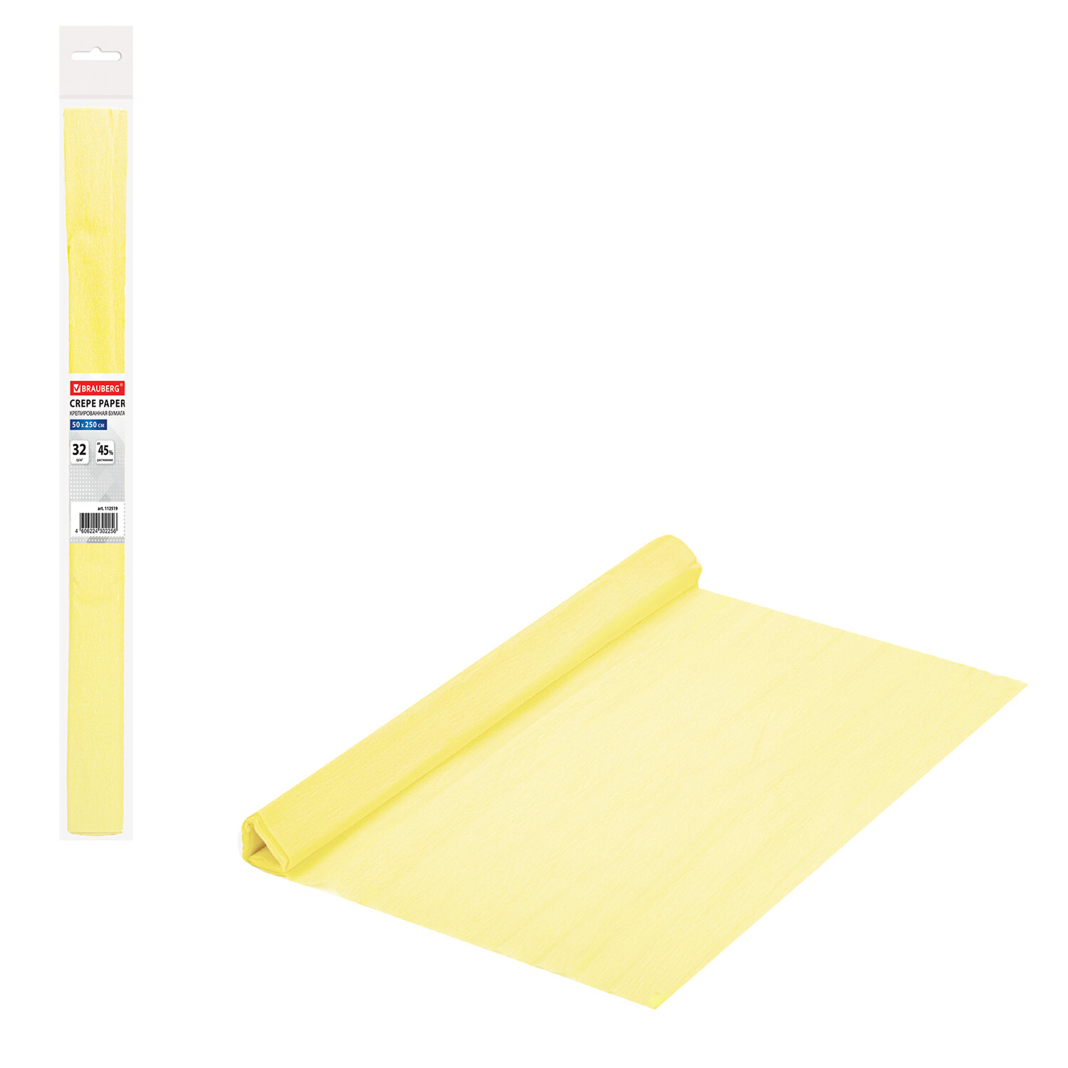 Бумага гофрированная/креповая, 32 г/м2, 50х250 см, молочная, в рулоне, BRAUBERG Ликвидация Код товара: 112519 20,97 ₽ Купить Производитель:BRAUBERG Гофрированная (креповая) бумага BRAUBERG применяется для оформления букетов, подарочной упаковки, изготовления поделок и праздничного оформления залов. Гофрированная (креповая) бумага представляет собой бумажную продукцию с неровной, складчатой поверхностью. Размер бумаги - 50х250 см, плотность – 32 г/м2, удлинение при натяжении – 45%. Цвет - Молочный. Бумага BRAUBERG достаточно прочная, хорошо крепится и прекрасно держит форму. Используется в основном для творчества, хенд-мейда, во флористике, свит-дизайне (изготовление букетов из конфет), скрапбукинге (техника оформления блокнотов, альбомов, коллажей и пр.), квиллинге, декупаже, при изготовлении декоративных деревьев, топиарий в технике «торцевания», и т. п. Из гофрированной бумаги делают бумажные цветы, объемные шары и другие 3D-изделия. С помощью таких элементов можно украсить квартиру, зал для утренника или выпускного, офис для корпоратива, кафе для проведения торжественного мероприятия.Производство: КитайЦвет: светло-желтыйКоличество цветов: 1Ширина: 50 смДлина: 250 смСерия: Креп для творчества 32 г/м2Плотность: 32 г/м2Удлинение при натяжении: 45 %В рулоне: даУпаковка: полипропиленовый пакетВес: 38 грРазмер упаковки: 3.3 × 50.7 × 1.7 смОбъём: 0.0004 м3Промежуточная упаковка: 10 штТранспортная упаковка: 200 штШтрих-код: 4606224302256 Файлы Сертификат-1.jpg Сертификат-2.jpg Сертификат-3.jpg Сертификат-4.jpg Сертификат-5.jpg Сертификат-6.jpg Сертификат-7.jpg Сертификат-8.jpg Сертификат-9.jpg Сертификат-10.jpg Сертификат-11.jpg Сертификат-12.jpg Сертификат-13.jpg Сертификат-14.jpg Сертификат-15.jpg Сертификат-16.jpg Сертификат-17.jpg Сертификат-18.jpg Сертификат-19.jpg Сертификат-20.jpg