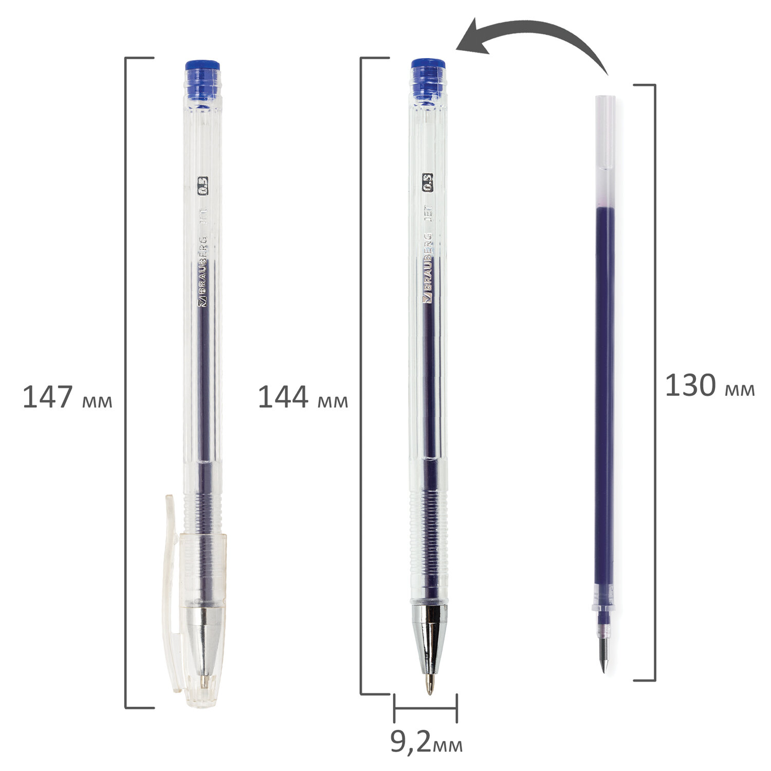 Ручки гелевые BRAUBERG "Jet", НАБОР 4 ЦВЕТА, узел 0,5 мм, линия письма 0,35 мм Код товара: 141023 189,68 ₽ Купить Производитель:BRAUBERG Гелевые ручки BRAUBERG "Jet" – набор ярких и насыщенных цветов на каждый день для работы в офисе и учебы. Ручка имеет круглый прозрачный корпус и рифление в зоне захвата для удобства письма. Сменный стержень длиной 130 мм со стандартным наконечником позволит использовать ручку максимально долго. Диаметр пишущего узла, равный 0,5 мм, создает линию письма, равную 0,35 мм. Набор включает гелевые ручки из 4 различных цветов чернил: синий, черный, красный, зеленый.Производство: КитайКоличество в упаковке: 4 шт.Цвет чернил: ассортиЭффект чернил: классическийТолщина линии письма: 0.35 ммДиаметр пишущего узла: 0.5 ммСерия: JetДлина сменного стержня: 130 ммФорма наконечника: стандартныйФорма корпуса: круглаяУпаковка: пластиковый футляр с подвесомСрок годности: 60 месВес: 37 грРазмер упаковки: 1.8 × 15 × 4.6 смОбъём: 0.0002 м3Промежуточная упаковка: 12 штТранспортная упаковка: 288 штШтрих-код: 4606224051680 Файлы Сертификат-1.jpg Сертификат-2.jpg Сертификат-3.jpg