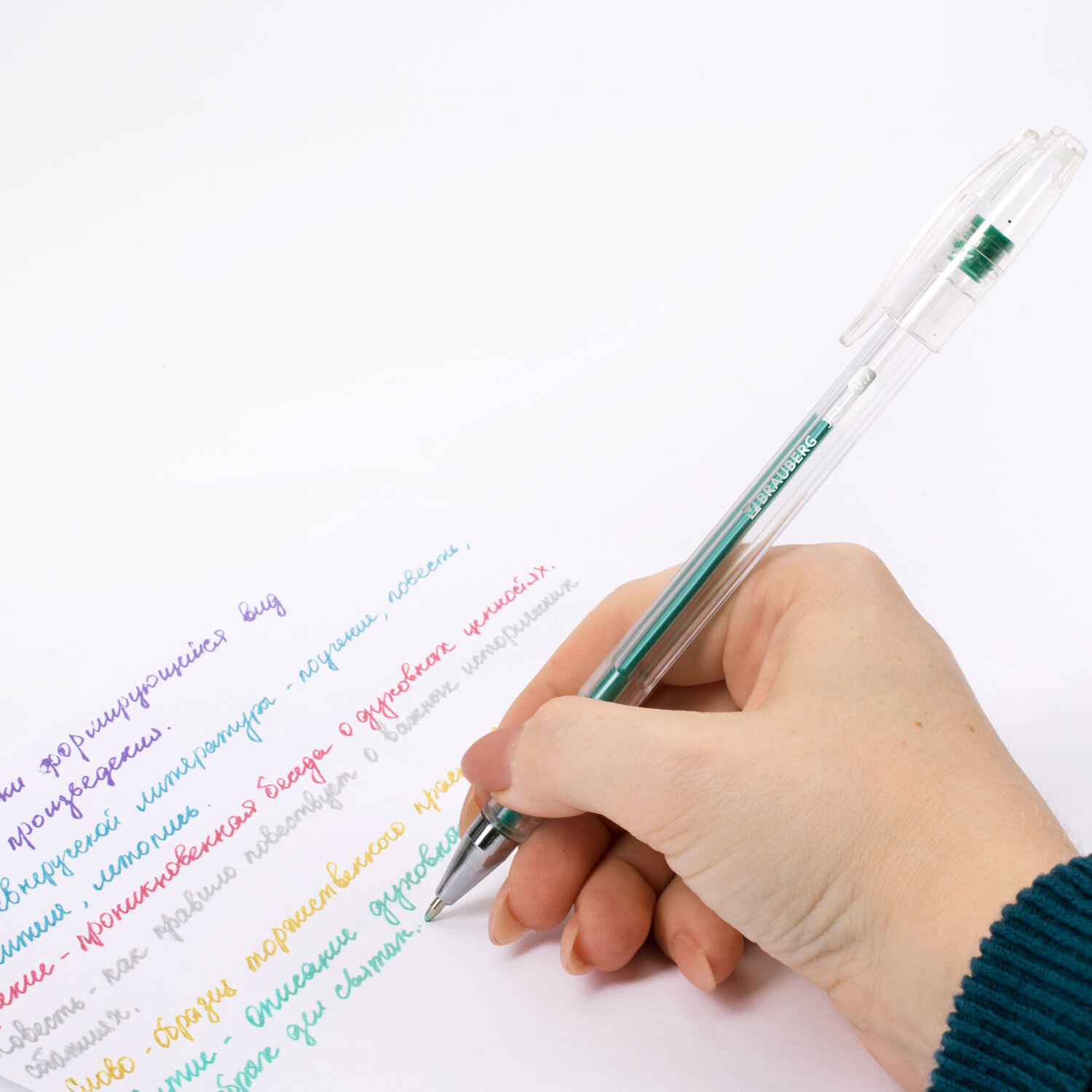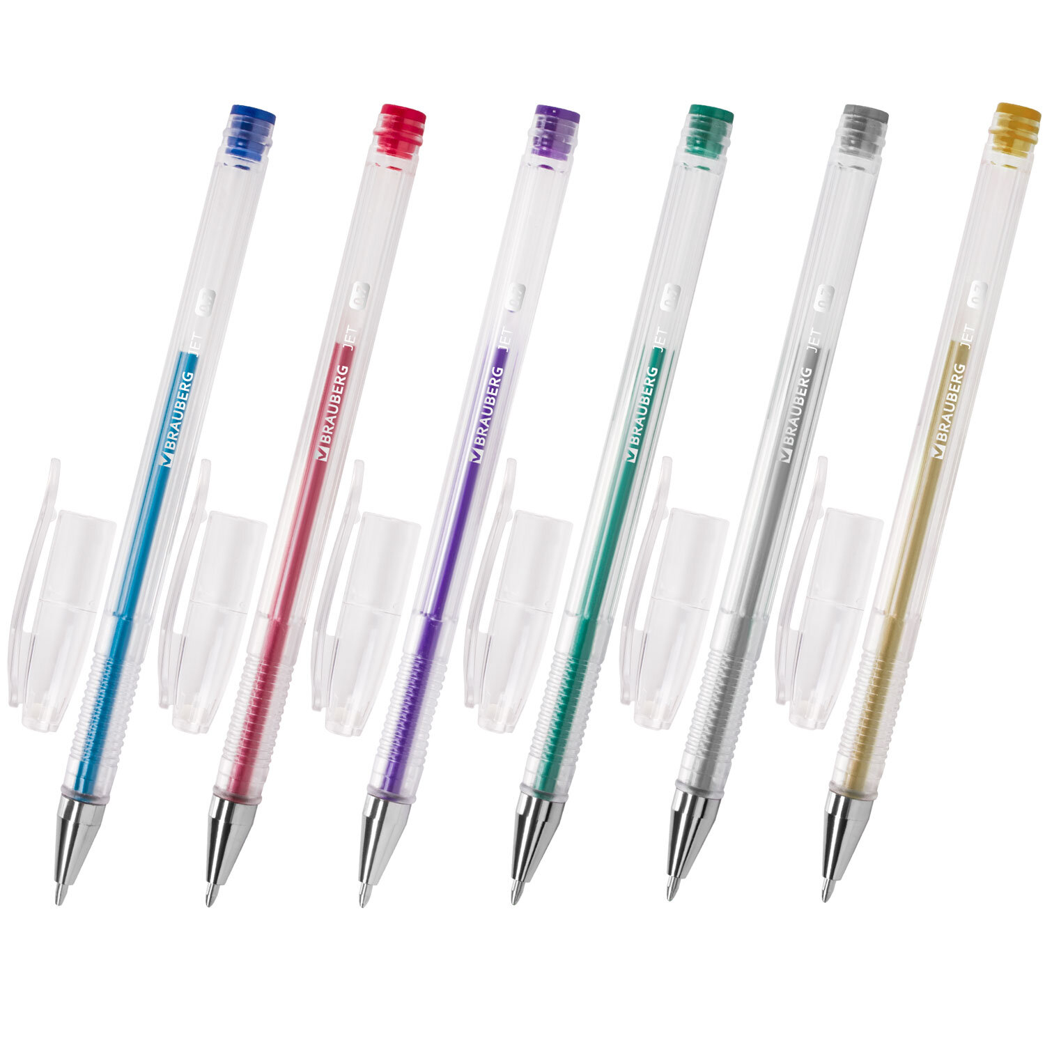 Ручки гелевые BRAUBERG "Jet", НАБОР 6 ЦВЕТОВ, МЕТАЛЛИК, узел 0,7 мм, линия письма 0,5 мм Код товара: 141029 366,81 ₽ Купить Производитель:BRAUBERG Гелевые ручки BRAUBERG "Jet" - набор ярких, запоминающихся и необычных цветов на каждый день для работы в офисе и учебы. Ручка имеет круглый прозрачный корпус и рифление в зоне захвата для удобства письма. Сменный стержень длиной 130 мм со стандартным наконечником позволит использовать ручку максимально долго. Диаметр пишущего узла, равный 0,7 мм, создает линию письма, равную 0,5 мм. Набор включает гелевые ручки из 6 различных цветов чернил с эффектом "металлик": синий, красный, фиолетовый, зеленый, серебристый, желтый. Рекомендован для детского творчества.Производство: КитайКоличество в упаковке: 6 шт.Цвет чернил: ассортиЭффект чернил: металликТолщина линии письма: 0.5 ммДиаметр пишущего узла: 0.7 ммСерия: JetДлина сменного стержня: 130 ммФорма наконечника: стандартныйФорма корпуса: круглаяУпаковка: пластиковый футляр с подвесомСрок годности: 60 месВес: 56 грРазмер упаковки: 1.5 × 15.3 × 7.3 смОбъём: 0.0002 м3Промежуточная упаковка: 12 штТранспортная упаковка: 144 штШтрих-код: 4606224051741 Сертификат-1.jpg Сертификат-2.jpg Сертификат-3.jpg