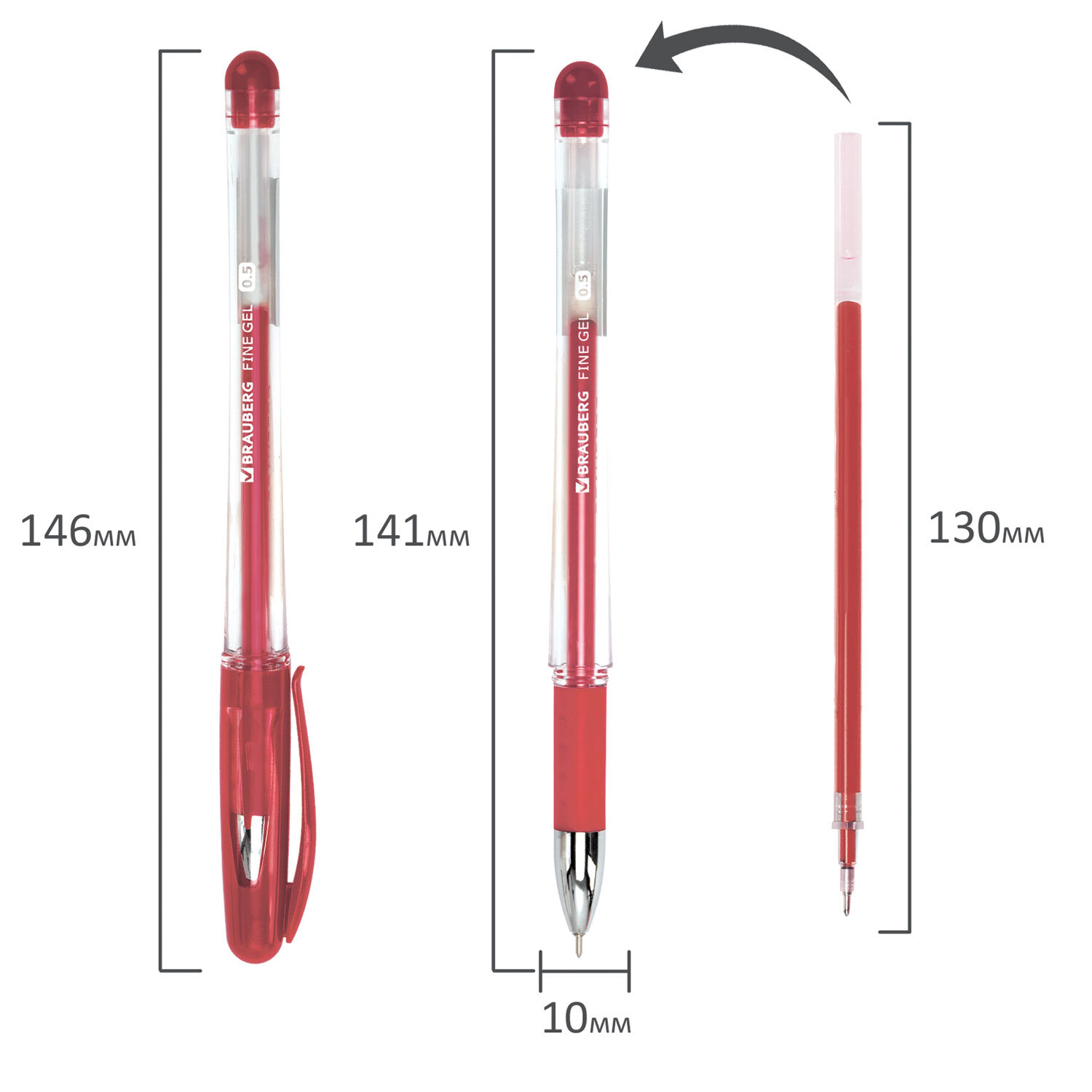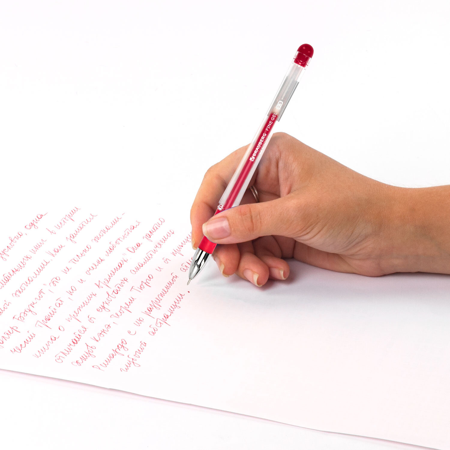 Ручка гелевая с грипом BRAUBERG "Fine Gel", КРАСНАЯ, игольчатый узел 0,5 мм, линия письма 0,35 мм Код товара: 141181 70,7 ₽ Купить Производитель:BRAUBERG Гелевая ручка BRAUBERG "Fine Gel" с резиновым держателем обеспечивает комфортное и качественное письмо. Имеет круглый прозрачный корпус с эргономичным резиновым держателем. Детали ручки выполнены в цвет красных чернил. Сменный стержень длиной 130 мм с игольчатым наконечником позволит использовать ручку максимально долго. Диаметр пишущего узла, равный 0,5 мм, создает линию письма, равную 0,35 мм.Производство: КитайЦвет чернил: красныйТолщина линии письма: 0.35 ммДиаметр пишущего узла: 0.5 ммФорма наконечника: игольчатыйКоличество в комплекте: 1 шт.Серия: Fine GelДлина сменного стержня: 130 ммЭргономичная зона захвата: резиновый держательЦвет корпуса: прозрачныйФорма корпуса: круглаяПокрытие корпуса: -Упаковка: картонная коробкаСрок годности: 60 месВес: 10 грРазмер упаковки: 1.2 × 14.5 × 1.5 смПромежуточная упаковка: 12 штТранспортная упаковка: 1728 штШтрих-код: 4606224031361 Сертификат-1.jpg Сертификат-2.jpg