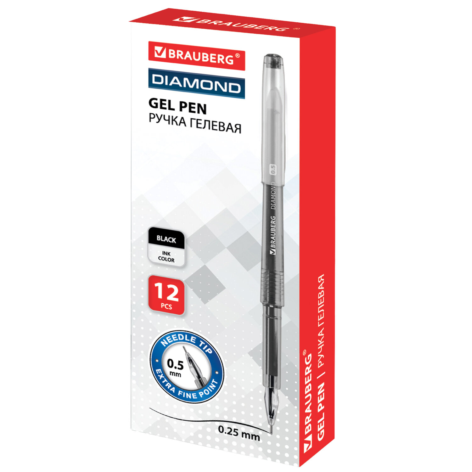 Ручка гелевая BRAUBERG DIAMOND, ЧЕРНАЯ, игольчатый узел 0,5 мм, линия письма 0,25 мм Код товара: 143379 46,15 ₽ Купить Производитель:BRAUBERG Гелевая ручка BRAUBERG "Diamond" с наконечник в виде бриллианта и ярким корпусом сразу обращает на себя внимание. Гелевая ручка с круглым корпусом черного цвета и уточнённым наконечником в виде бриллианта. Необычный игольчатый пишущий узел с диаметром наконечника 0,5 мм создает тонкую линию письма, равную 0,25 мм. Цвет чернил – черный.Производство: КитайЦвет чернил: черныйТолщина линии письма: 0.25 ммДиаметр пишущего узла: 0.5 ммФорма наконечника: игольчатыйОдноразовая: даКоличество в комплекте: 1 шт.Подходит для ЕГЭ/ОГЭ: даСерия: DiamondЦвет корпуса: черныйФорма корпуса: круглаяПокрытие корпуса: без дополнительного покрытияУпаковка: картонная коробкаСрок годности: 60 месВес: 8 грРазмер упаковки: 0.9 × 13.9 × 0.9 смПромежуточная упаковка: 12 штТранспортная упаковка: 1728 штШтрих-код: 4606224259413 Сертификат-1.jpg Сертификат-2.jpg Сертификат-3.jpg