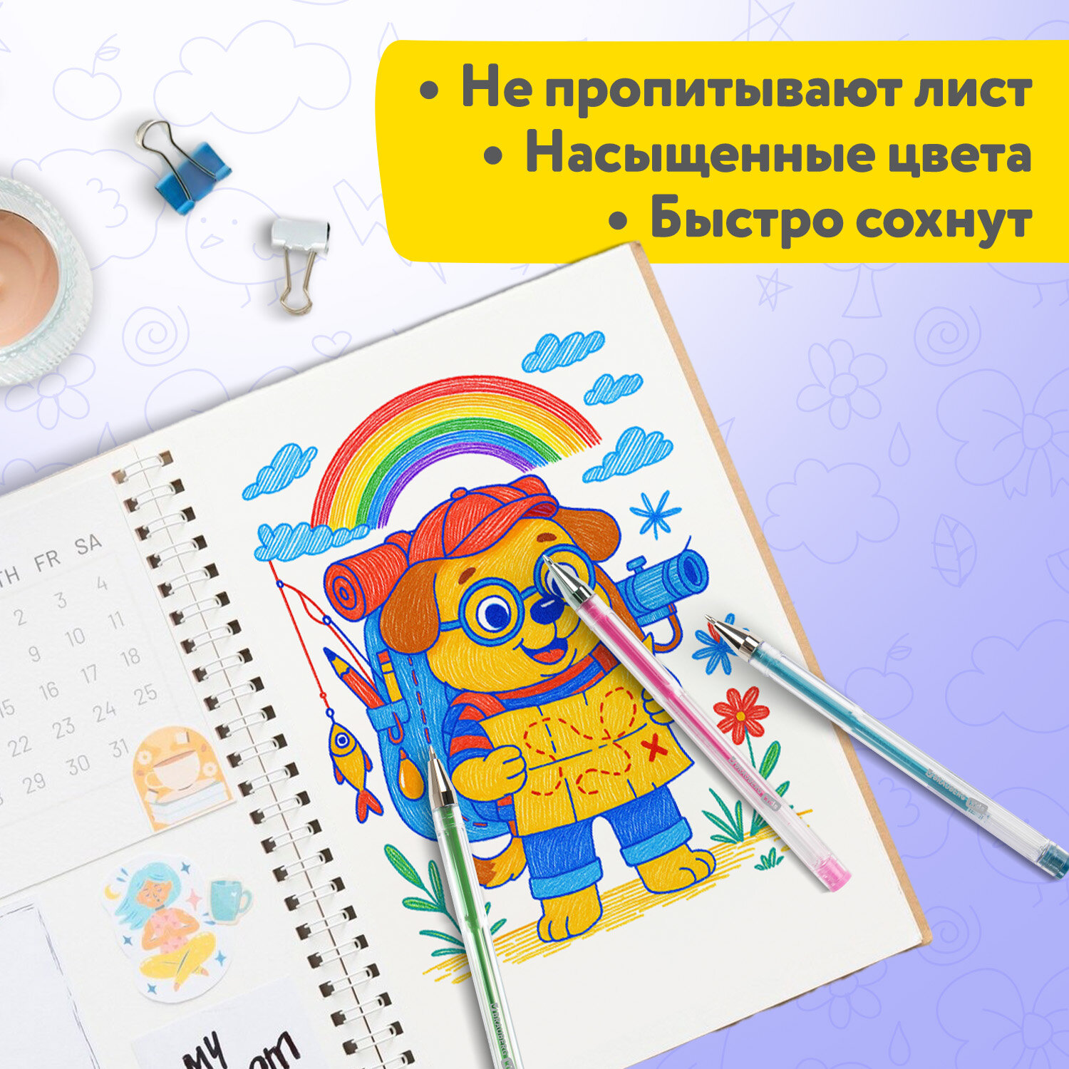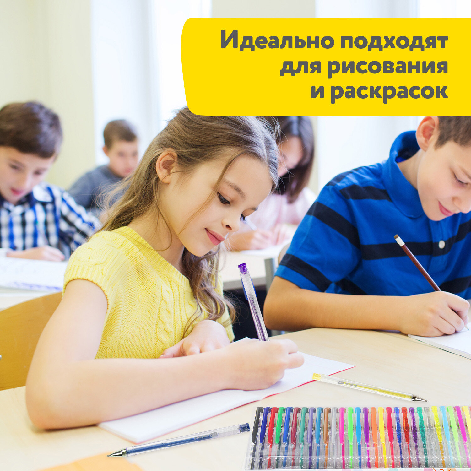 Набор включает 30 гелевых ручек: 4 ручки с классическими чернилами, 6 с блестками, 7 с эффектом металлик, 6 пастельных и 7 неоновых.