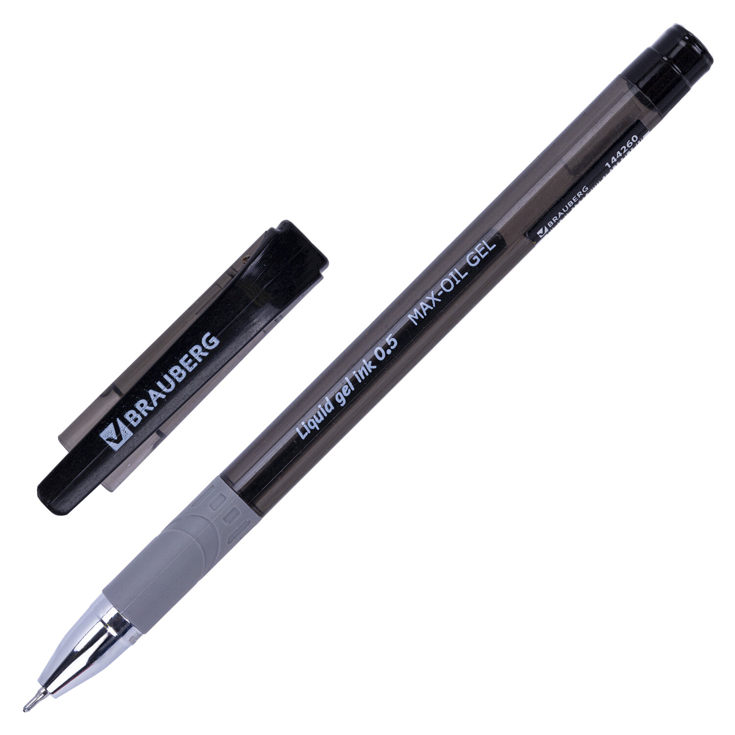 Ручка гелевая с грипом BRAUBERG "Max-Oil Gel", ЧЕРНАЯ, игольчатый узел 0,5 мм, линия письма 0,3 мм