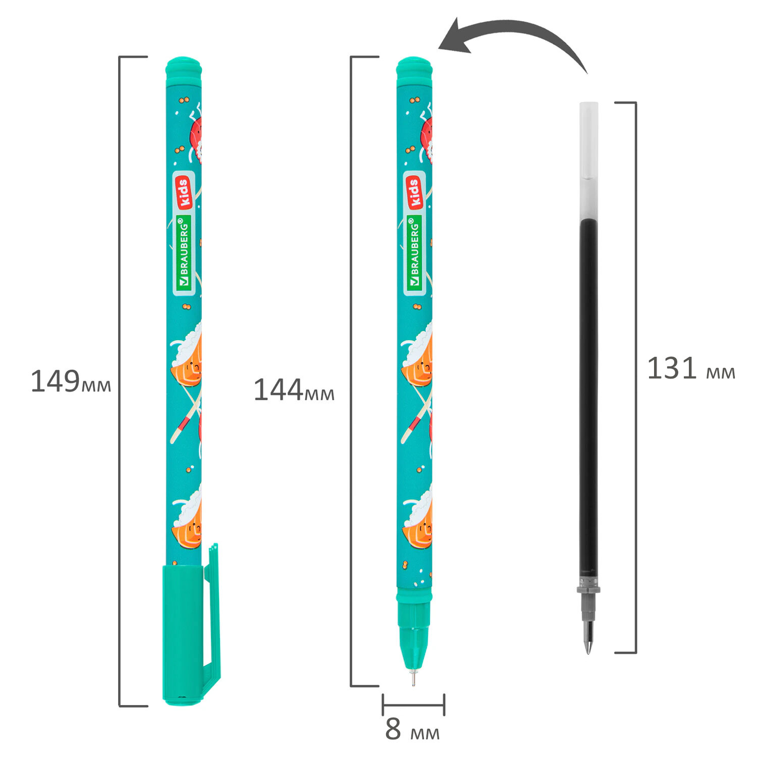 Ручка гелевая BRAUBERG KIDS MIX, СИНЯЯ, корпус ассорти, игольчатый узел 0,5 мм, линия письма 0,3 мм Код товара: 144286 53,47 ₽ Купить Производитель:BRAUBERG Ручка гелевая BRAUBERG KIDS MIX в забавном дизайне с покрытием soft-touch обеспечивает комфортное и качественное письмо. Гелевая ручка представлена в четырех дизайнах с изображением популярных блюд. Благодаря покрытию soft-touch удобно ложится в руке и не скользит при письме. Диаметр пишущего узла 0,5 мм создает тонкую линию толщиной 0,3 мм. Гелевые чернила плавно и мягко ложатся на бумагу, обеспечивая комфортное письмо. Синий цвет чернил делает ручку подходящей для ведения записей во время учебы.Производство: КитайЦвет чернил: синийТолщина линии письма: 0.3 ммДиаметр пишущего узла: 0.5 ммФорма наконечника: игольчатыйКоличество в комплекте: 1 шт.Эффект чернил: гелевыеСерия: KIDS MIXДлина сменного стержня: 131 ммЭргономичная зона захвата: нетЦвет корпуса: ассортиФорма корпуса: круглаяПокрытие корпуса: Soft-touchДлина письма: 700 мУпаковка: пластиковая тубаСрок годности: 60 месВес: 10 грРазмер упаковки: 1 × 14.7 × 1.4 смПромежуточная упаковка: 30 штТранспортная упаковка: 1080 штШтрих-код: 4606224447124 Сертификат-1.jpg Сертификат-2.jpg Сертификат-3.jpg