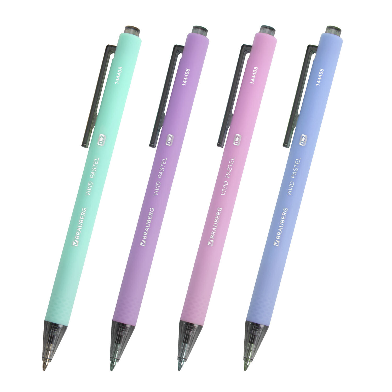 Ручки шариковые автоматические BRAUBERG "VIVID PASTEL", СИНИЕ, НАБОР 4 ШТУКИ, soft-touch, пишущий узел 0,7 мм, линия письма 0,35 мм Код товара: 144408 175,83 ₽ Купить Производитель:BRAUBERG Автоматическая шариковая ручка BRAUBERG "VIVID PASTEL" обладает soft-touch покрытием и стильным дизайном корпуса в нежных пастельных оттенках. Стандартный пишущий узел, диаметр которого составляет 0,7 мм, создает линию письма, равную 0,35 мм. Ручка имеет сменный стержень длиной 107 мм. Качественные чернила обеспечивают мягкое и комфортное письмо. Цвет чернил – синий. Набор включает в себя 4 ручки с разными оттенками корпуса и упакован в удобный флоупак с европодвесом для размещения в розничном магазине.Производство: КитайЦвет чернил: синийТолщина линии письма: 0.35 ммДиаметр пишущего узла: 0.7 ммФорма наконечника: стандартныйДлина сменного стержня: 107 ммКоличество в комплекте: 4 шт.Цвет корпуса: Vivid pastelДлина письма: 1000 мСерия: VIVIDДизайн: Vivid pastelФорма корпуса: круглаяПокрытие корпуса: Soft-TouchУпаковка: пакет с подвесомСрок годности: 60 месВес: 41 грРазмер упаковки: 1.3 × 16.3 × 5.7 смОбъём: 0.0001 м3Промежуточная упаковка: 12 штТранспортная упаковка: 288 штШтрих-код: 4606224469058 Файлы Сертификат-1.jpg Сертификат-2.jpg Сертификат-3.jpg