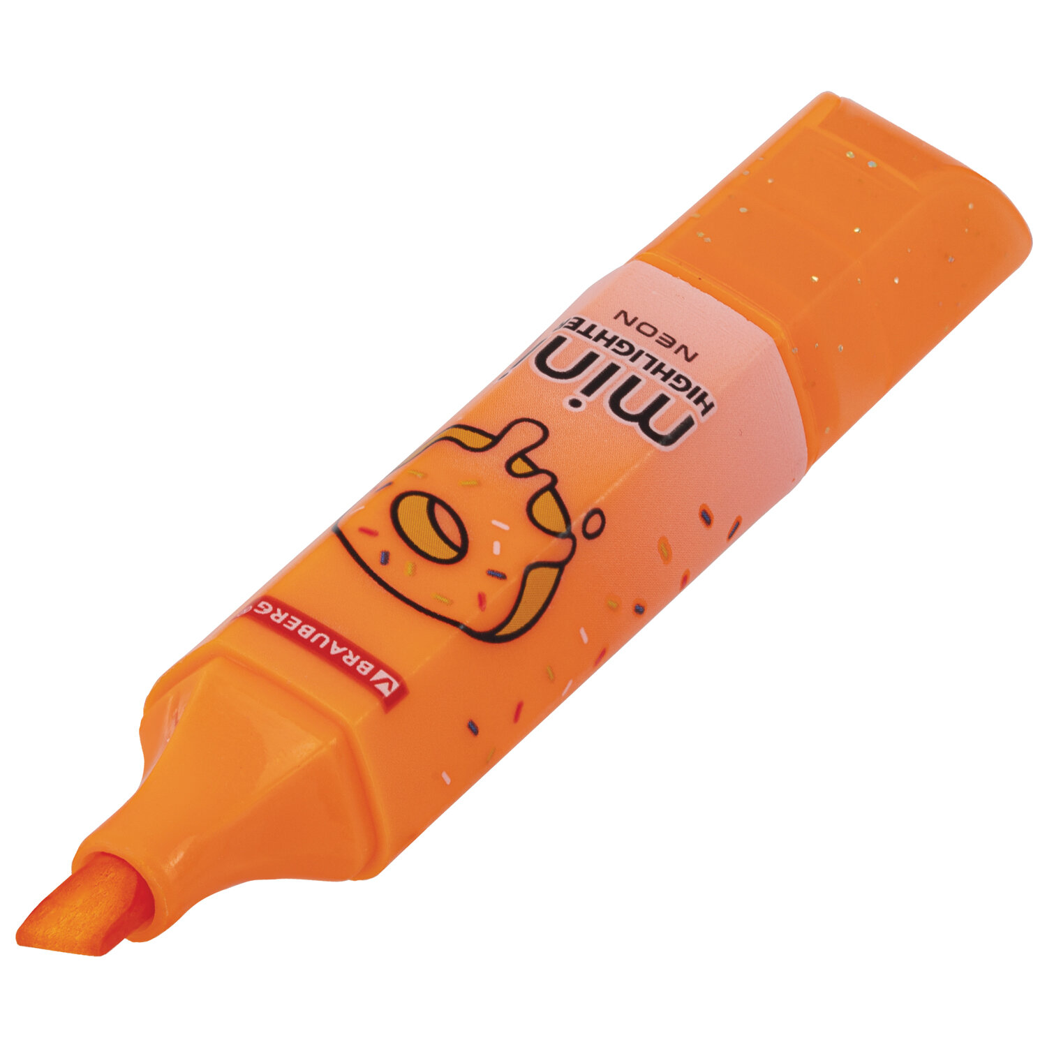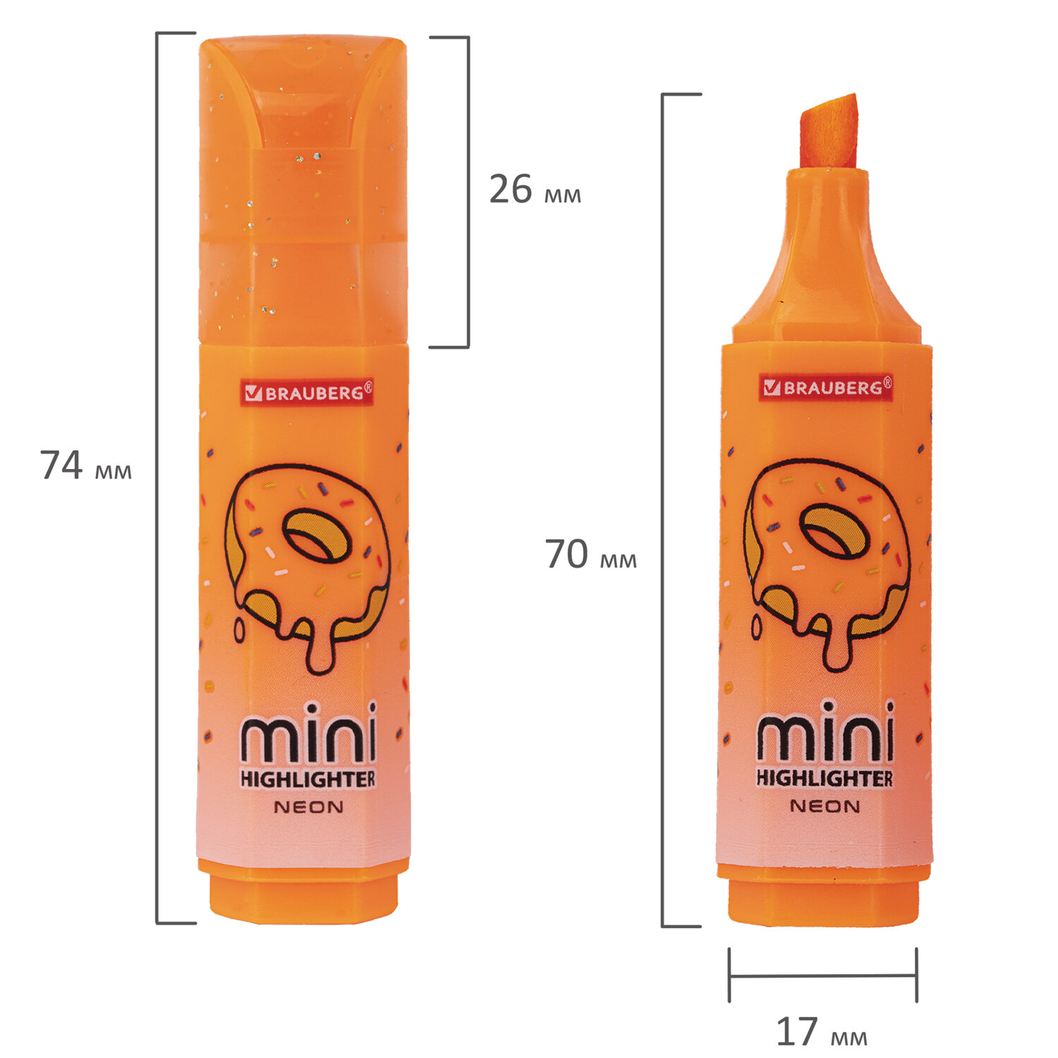 Текстовыделитель мини с принтами BRAUBERG "NEON", АССОРТИ В ПЛАСТИКОВОЙ БАНКЕ, 1-5 мм Код товара: 152535 31,44 ₽ Купить Производитель:BRAUBERG Текстовыделители мини BRAUBERG "NEON" предназначены для выделения текста на бумаге любого типа. Идеально подходят для решения учебных и домашних задач. Текстовыделители неоновых цветов: желтый, зеленый, розовый, оранжевый, голубой и фиолетовый имеют прямоугольную форму корпуса диаметром 20 мм. Мягкий скошенный наконечник имеет толщину линии письма от 1 до 5 мм, что обеспечивает удобство при работе с текстом, напечатанным мелким шрифтом, или таблицами. Благодаря особой водной основе чернил текстовыделитель не высыхает без колпачка в течение 8 часов. Чернила с неоновым эффектом обеспечивают неповторимую яркость выделения текста. Текстовыделитель обладает экономным расходом чернил, при этом длина линии письма достигает 300 метров. Чернила быстро впитываются и тем самым предотвращают размазывание в процессе использования. Цвет колпачка и корпуса текстовыделителя соответствует цвету чернил. Необычный колпак с блестками отлично дополняется принтами в виде ярких пончиков. Поставляются в тубе по 40 штук, отлично подходят для размещения в розничном магазине.Производство: КитайЦвет чернил: неоновый ассортиКоличество в комплекте: 1 шт.Форма наконечника: скошенныйСпецэффект цвета чернил : неоновыйОснова чернил: воднаяСерия: Мини с принтамиМин. толщина линии письма: 1 ммМакс. толщина линии письма: 5 ммФорма корпуса: прямоугольнаяДиаметр корпуса: 20 ммУпаковка: пластиковая банкаСрок годности: 48 месВес: 11 грРазмер упаковки: 1.3 × 7.5 × 1.8 смОбъём: 0.0001 м3Промежуточная упаковка: 40 штТранспортная упаковка: 1280 штШтрих-код: 4606224438788 Сертификат-1.jpg Сертификат-2.jpg Сертификат-3.jpg