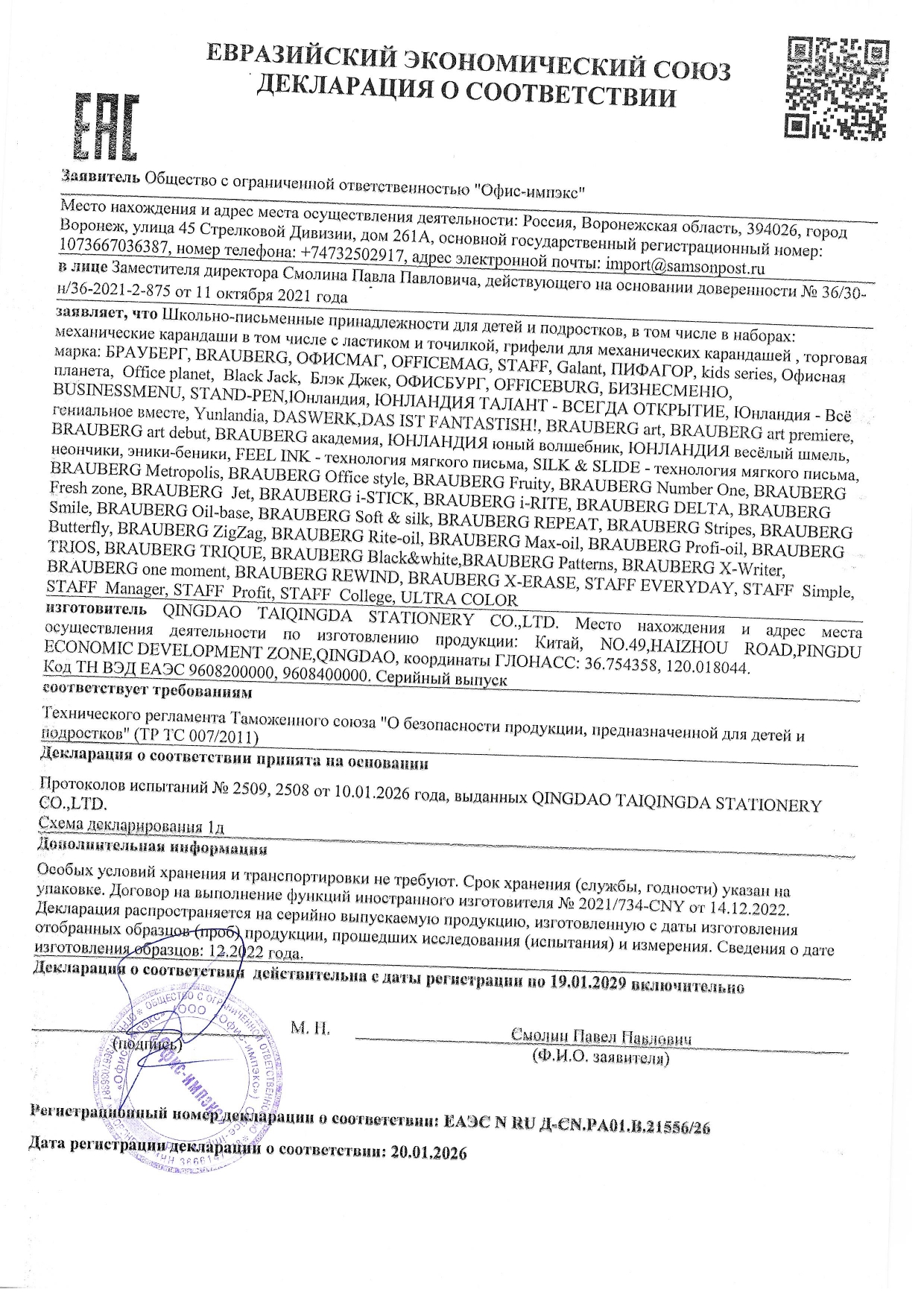 Карандаш механический 0,7 мм, BRAUBERG "Black Jack", металлический корпус, ластик, резиновый грип Код товара: 180467 265,94 ₽ Купить Производитель:BRAUBERG Высококачественный механический карандаш BRAUBERG "Black Jack" с металлическим корпусом черного цвета и удобным резиновым упором, исключающим скольжение пальцев во время письма. Карандаш с нажимным механизмом заправлен грифелем HB, всегда заточен, готов к работе и дает ровную линию 0,7 мм, а встроенный ластик под кнопкой-колпачком исправит ошибку быстро и легко. Стильный дизайн карандаша и эргономичный корпус с комфортной зоной захвата сделает письмо легким и точным.Производство: КитайТип карандаша: механическийДиаметр грифеля: 0,7 ммНаличие ластика: даТвердость грифеля: НВФорма корпуса: круглаяРезиновый грип: даКоличество в комплекте: 1 шт.Серия: Black JackМатериал корпуса: металлМатериал клипа: металлЦвет корпуса: стальнойУпаковка: блистер с европодвесомВес: 31 грРазмер упаковки: 1.1 × 23.8 × 7.3 смОбъём: 0.0003 м3Промежуточная упаковка: 12 штТранспортная упаковка: 144 штШтрих-код: 4606224049939 Сертификат-1.jpg Сертификат-2.jpg Сертификат-3.jpg