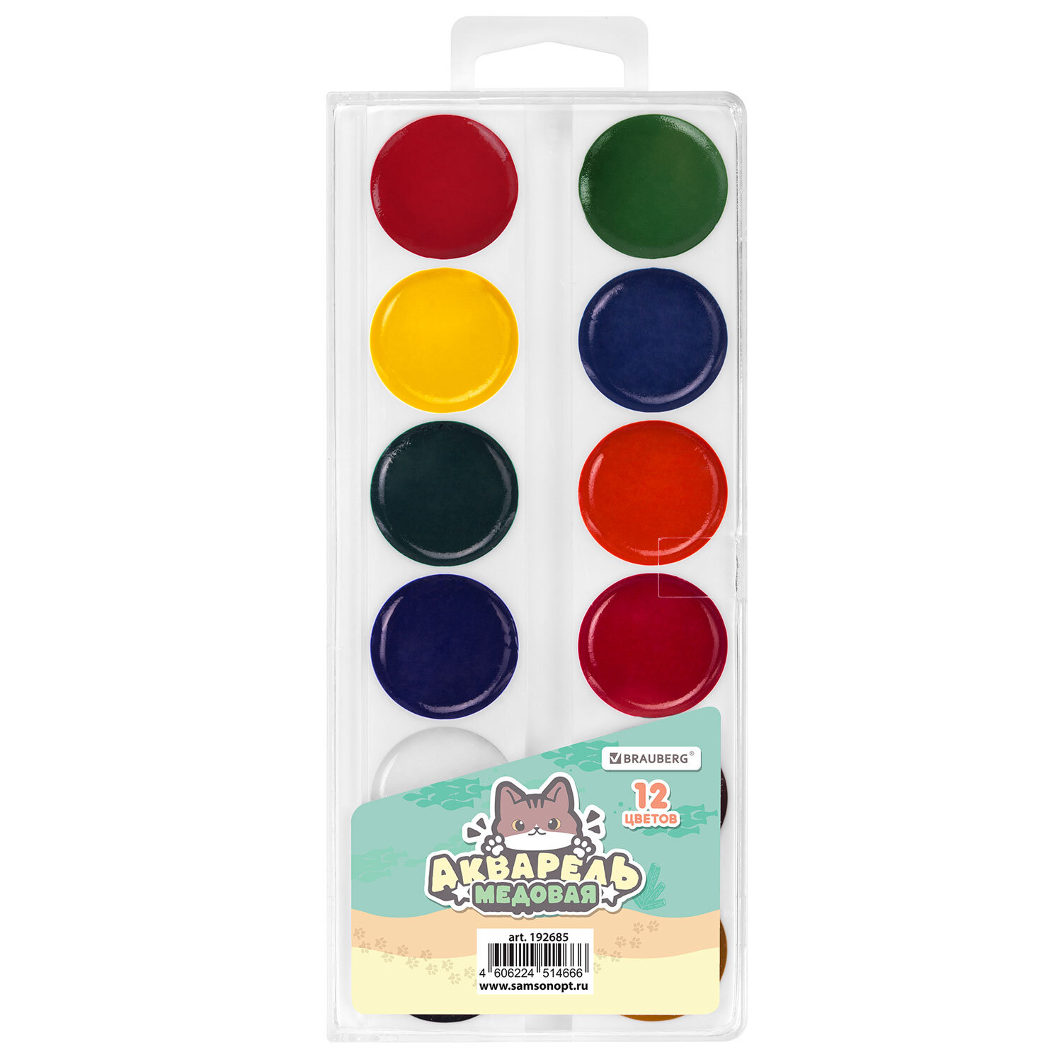 Краски акварельные BRAUBERG "МИЛЫЕ КОТЫ", медовые, 12 цветов, круглые кюветы Код товара: 192685 88,57 ₽ Купить Производитель:BRAUBERG Акварельные краски BRAUBERG идеально подходят для уроков детского творчества. Рисование способствует развитию образного мышления, глазомера, мелкой моторики рук, тонкому восприятию цветовой гаммы. 12 ярких насыщенных цветов отлично смешиваются между собой и позволяют создать множество оттенков, обеспечивают однородное окрашивание. Краски быстро высыхают и не портятся со временем. Безопасны для детей, нетоксичны. Идеально подойдут для детского творчества и художественного изобразительного искусства. Краски выпускаются в пластиковом пенале с европодвесом, прозрачной крышкой, круглой формой кювет и отделением для кисточки. Упаковка обладает компактными размерами и легким весом.Производство: РоссияКоличество цветов в наборе: 12 шт.Добавка в основу: патокаОтделение для кисточки: даФорма кювет: круглаяСпецэффект: классическийСерия: МИЛЫЕ КОТЫДизайн: Милые котыУпаковка: пластиковая коробка с европодвесомВес: 99 грРазмер упаковки: 1.3 × 20.3 × 7.9 смОбъём: 0.0003 м3Промежуточная упаковка: 40 штТранспортная упаковка: 40 штШтрих-код: 4606224514666 Файлы Сертификат-1.jpg Сертификат-2.jpg Сертификат-3.jpg