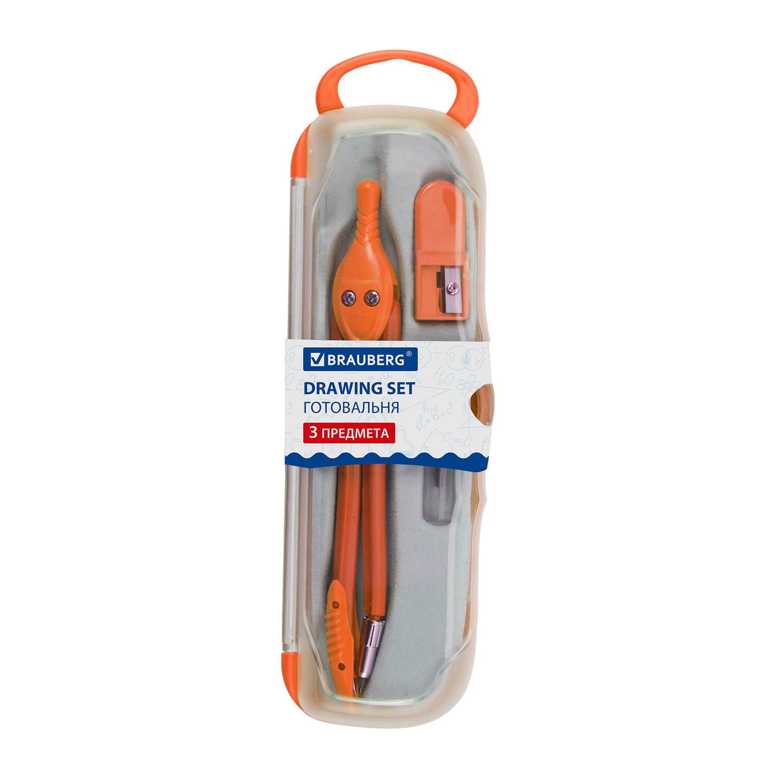 Готовальня BRAUBERG "Modern", 3 предмета: циркуль 135 мм, точилка, грифель, пенал с подвесом Код товара: 210663 323,88 ₽ Купить Производитель:BRAUBERG Металлическая готовальня BRAUBERG "Modern" предназначена для выполнения чертежных работ. Для школьников всех возрастов и студентов. В состав готовальни входят 3 предмета: - циркуль; - точилка; - пенал с запасным грифелем. Циркуль длиной 135 мм имеет несгибаемые штанги и пластиковый защитный колпачок для иглы. Изготовлен из металла. Цвет - ассорти (без возможности выбора цвета). Поставляется в пластиковом пенале с европодвесом.Производство: КитайТип товара: готовальняСерия: ModernКоличество предметов: 3 шт.Длина циркуля: 135 ммТип штанги: несгибаемыеЗащитный колпачок для иглы: даКомплектация: пенал с запасным грифелем, точилка, циркульЦвет корпуса: ассортиМатериал: металлУпаковка: пластиковый пенал с европодвесомВес: 71 грРазмер упаковки: 2 × 17 × 4.8 смОбъём: 0.0003 м3Промежуточная упаковка: 12 штТранспортная упаковка: 144 штШтрих-код: 4606224218144 Сертификат-1.jpg Сертификат-2.jpg Сертификат-3.jpg